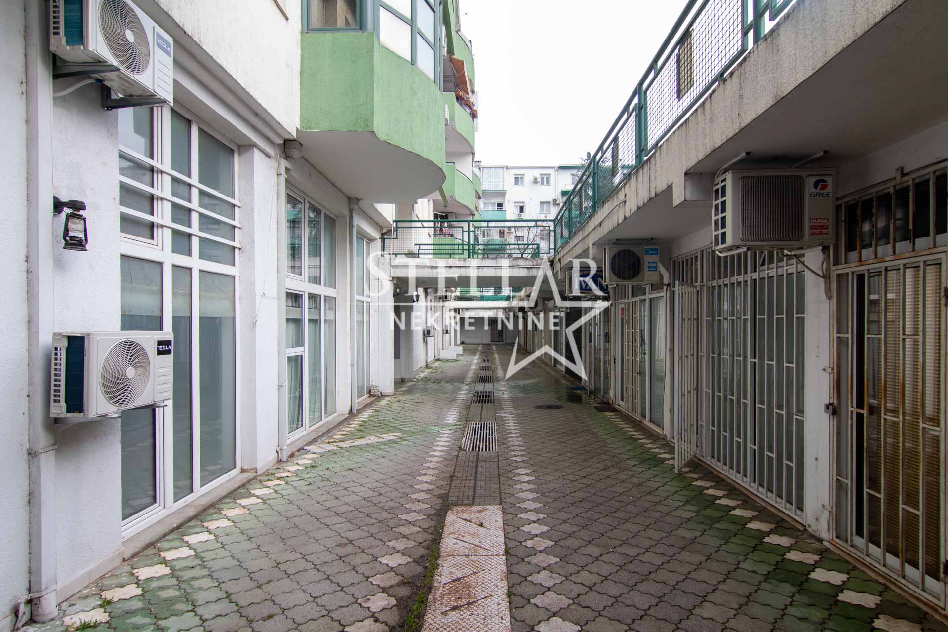 Commercial space for rent in a good location in Preko Morača. The commercial space is located on the lower ground floor and is surrounded by other commercial spaces that are rented out. With an area of 15m2, the space is suitable for an office, shoe or tailor shop, agency or similar. It has one toilet and air conditioning. There are bars at the entrance that provide additional security. There is a large public parking lot around the space, and nearby are secondary technical schools, shops, fast food, cafes.