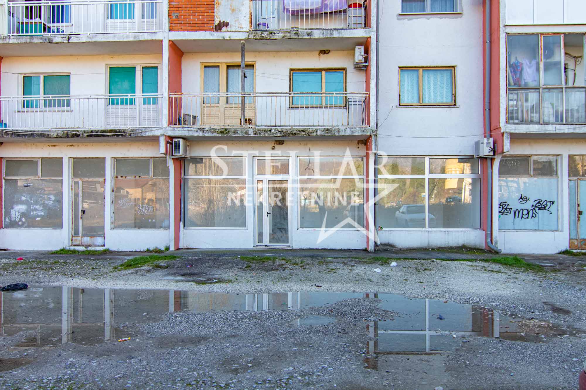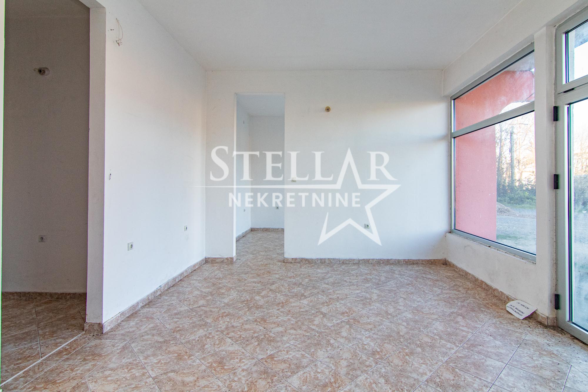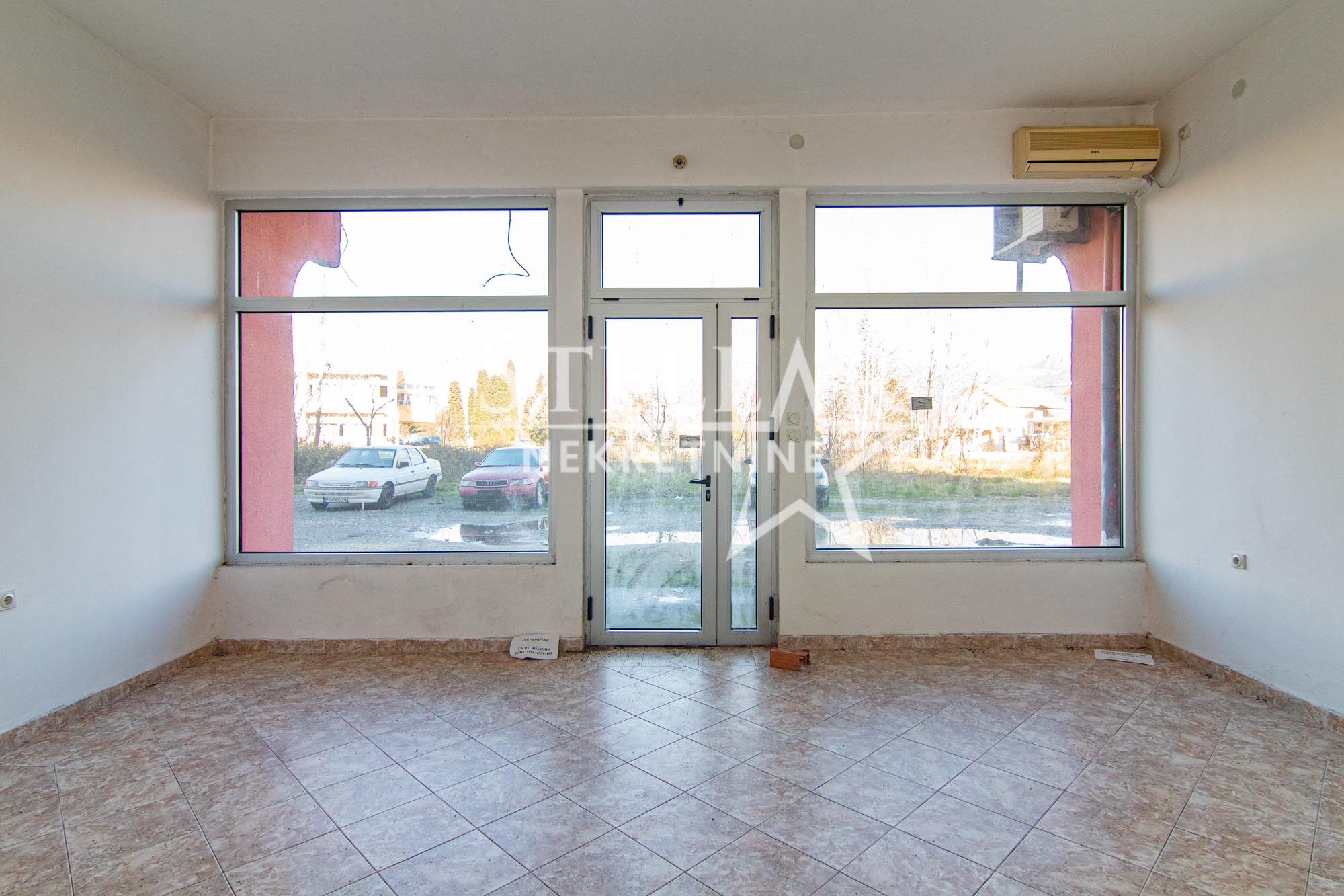 Empty commercial space with a large storefront for rent, near the elementary school in Spuž. The space is on the ground floor of a residential building, has 48m2, two rooms with a storefront, one separate room and a toilet. The ceiling height is about 4 meters, and the space is excellent for various purposes: boutiques, bookstores/copying shops, shops, printing houses, selling various equipment or as a warehouse. There is a large parking lot in front.