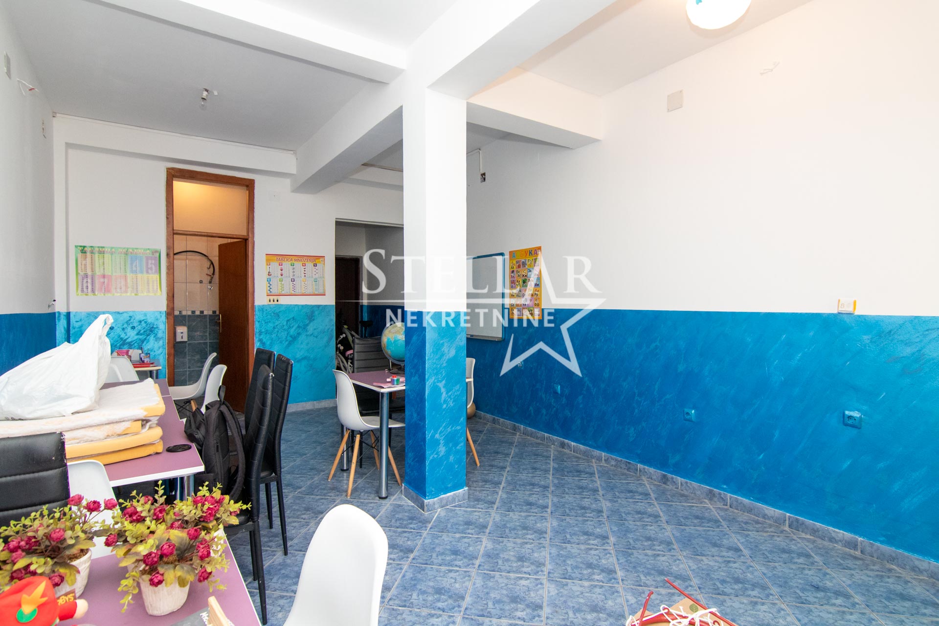 Commercial space for rent on the ground floor of a building in Zabjelo. The space is 33m2, has a separate kitchen and bathroom. It is suitable for various activities, hairdressing or beauty salon, office, storage room and the like.