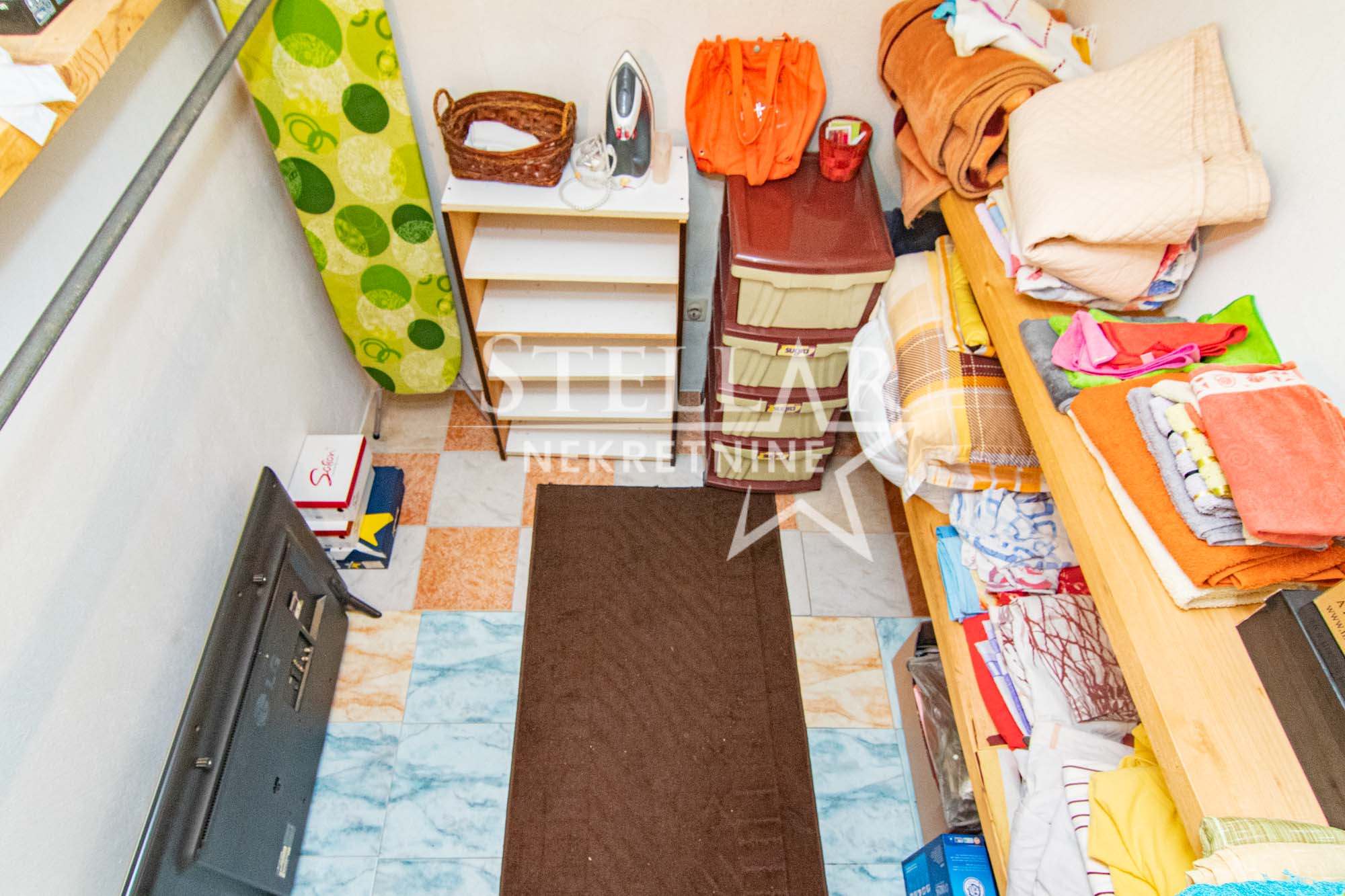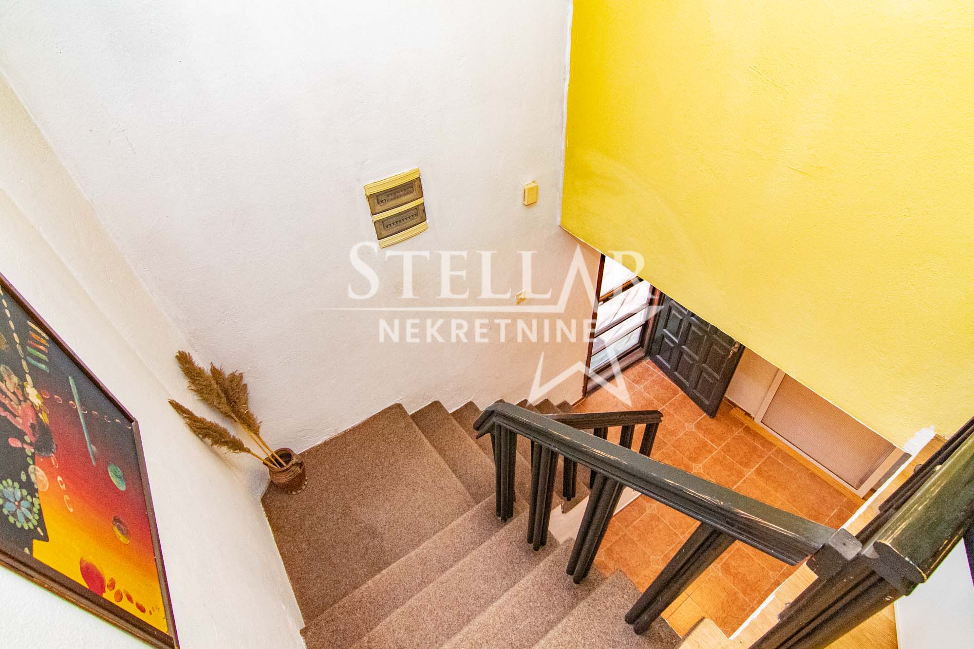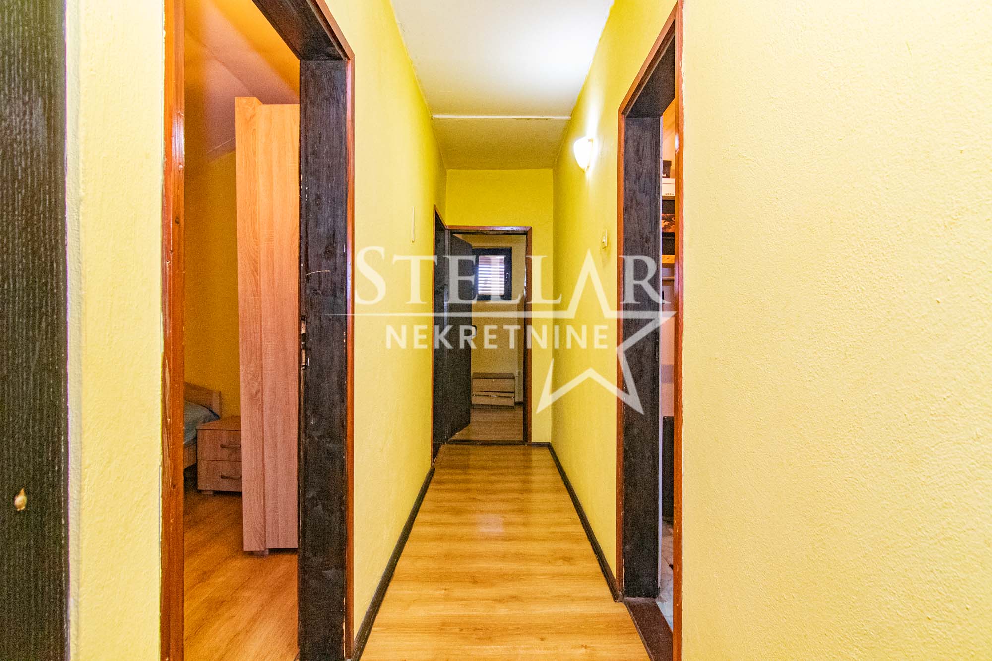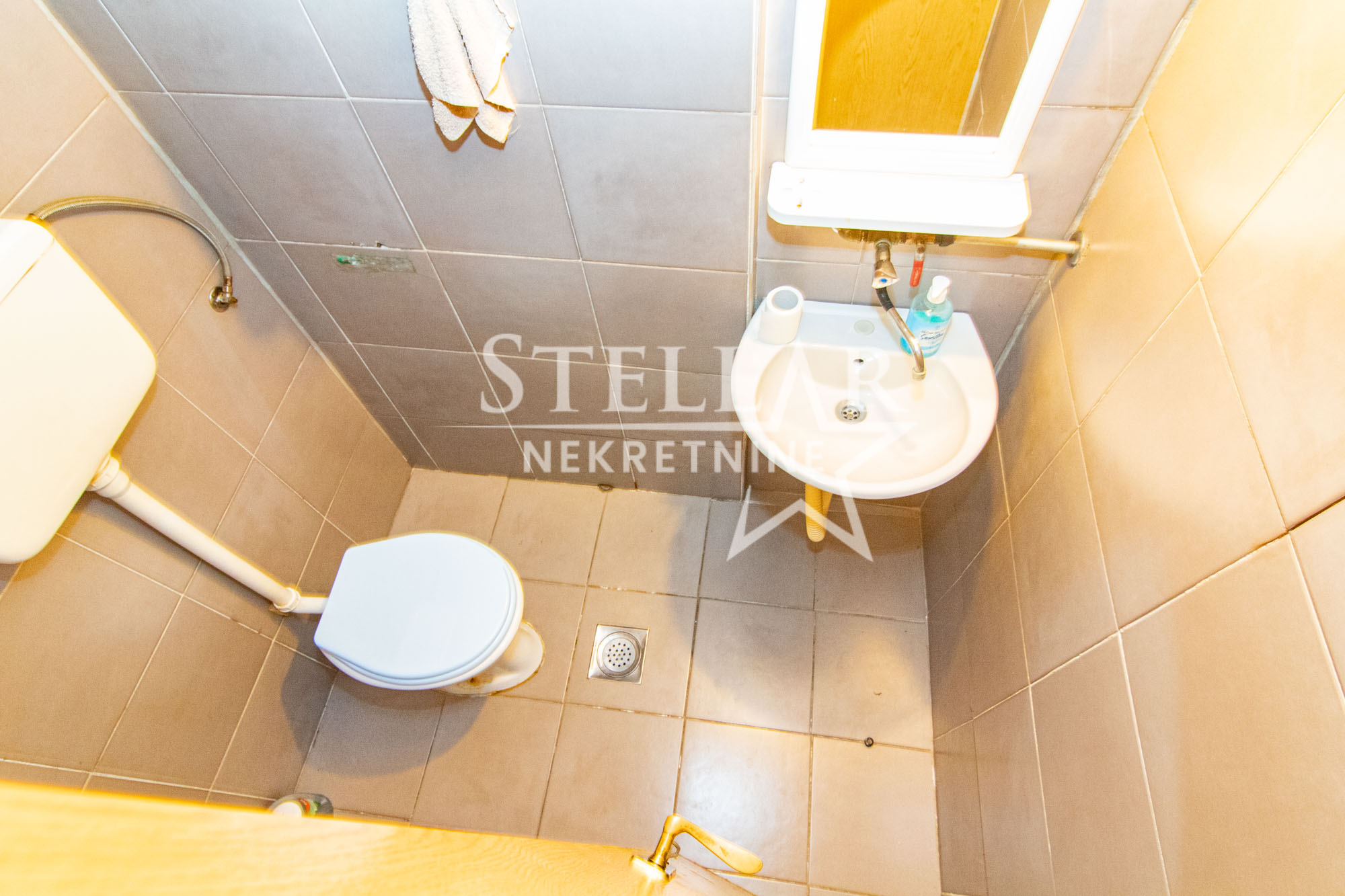 Furnished house for rent in Donja Gorica, 5-7 minutes drive from Siti Kvart. In a very quiet and pleasant neighborhood, in a fenced yard of 545m2, house 100m2, ground floor and first floor. 2 parking spaces in a fenced area with a gate, 2 parking spaces outside the fence. The furniture is older, but of good quality and functional. The ground floor has a large living room, kitchen, dining room, hallway, toilet, air conditioning and a wood stove that heats the entire house, TV. Upstairs there is a hallway, 2 bedrooms with the possibility of a 3rd bedroom. One room has a double bed, the second a single bed, and the third serves as a study and has a pull-out sofa, but the owner would add a bed if necessary. It also has a bathroom with a washing machine and bathtub, a wardrobe, strong air conditioning that can cool the entire floor. There is a TV in one bedroom. Internet is connected. Around the house there is a yard, lawn, storage room, trees.
