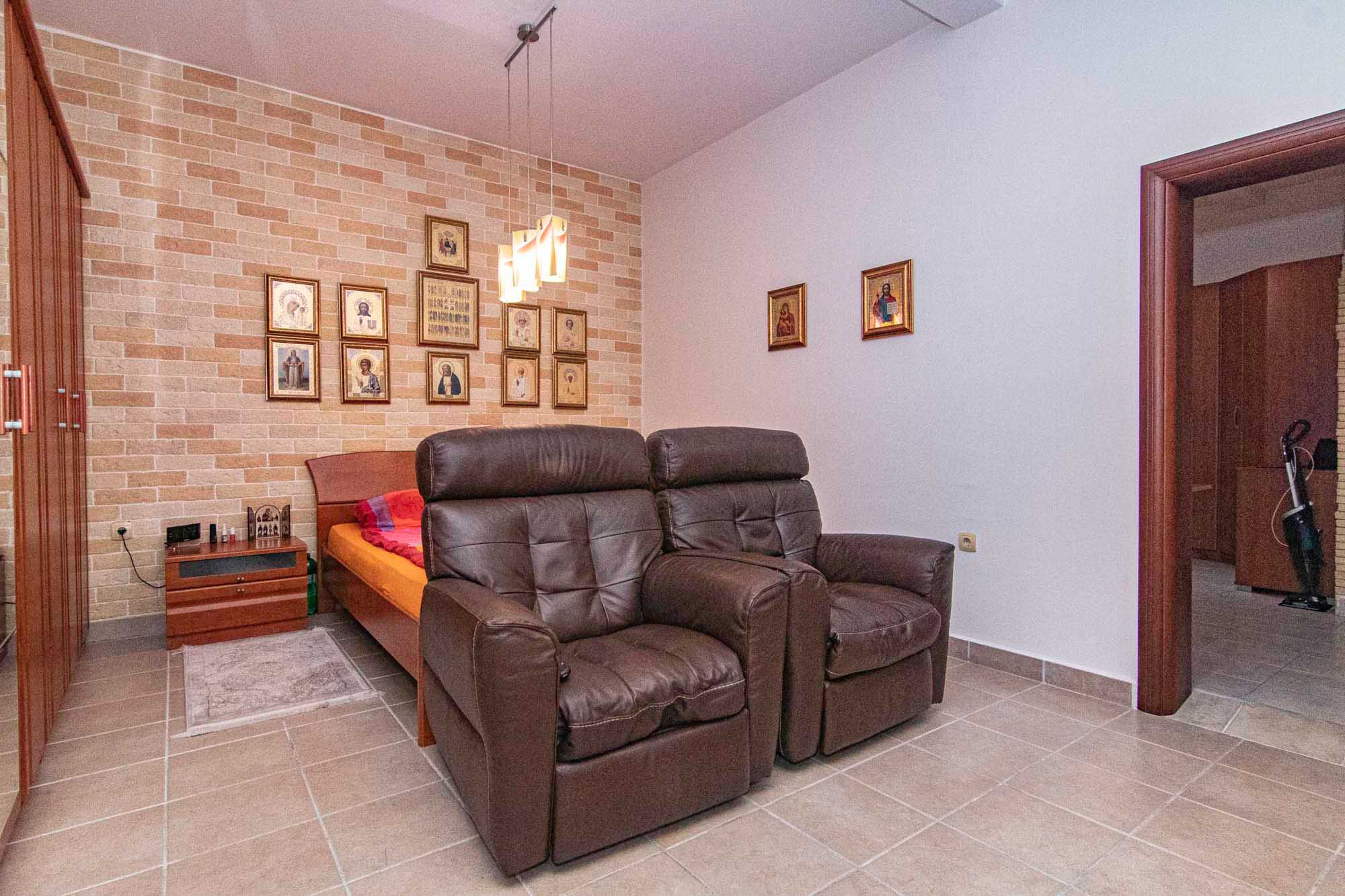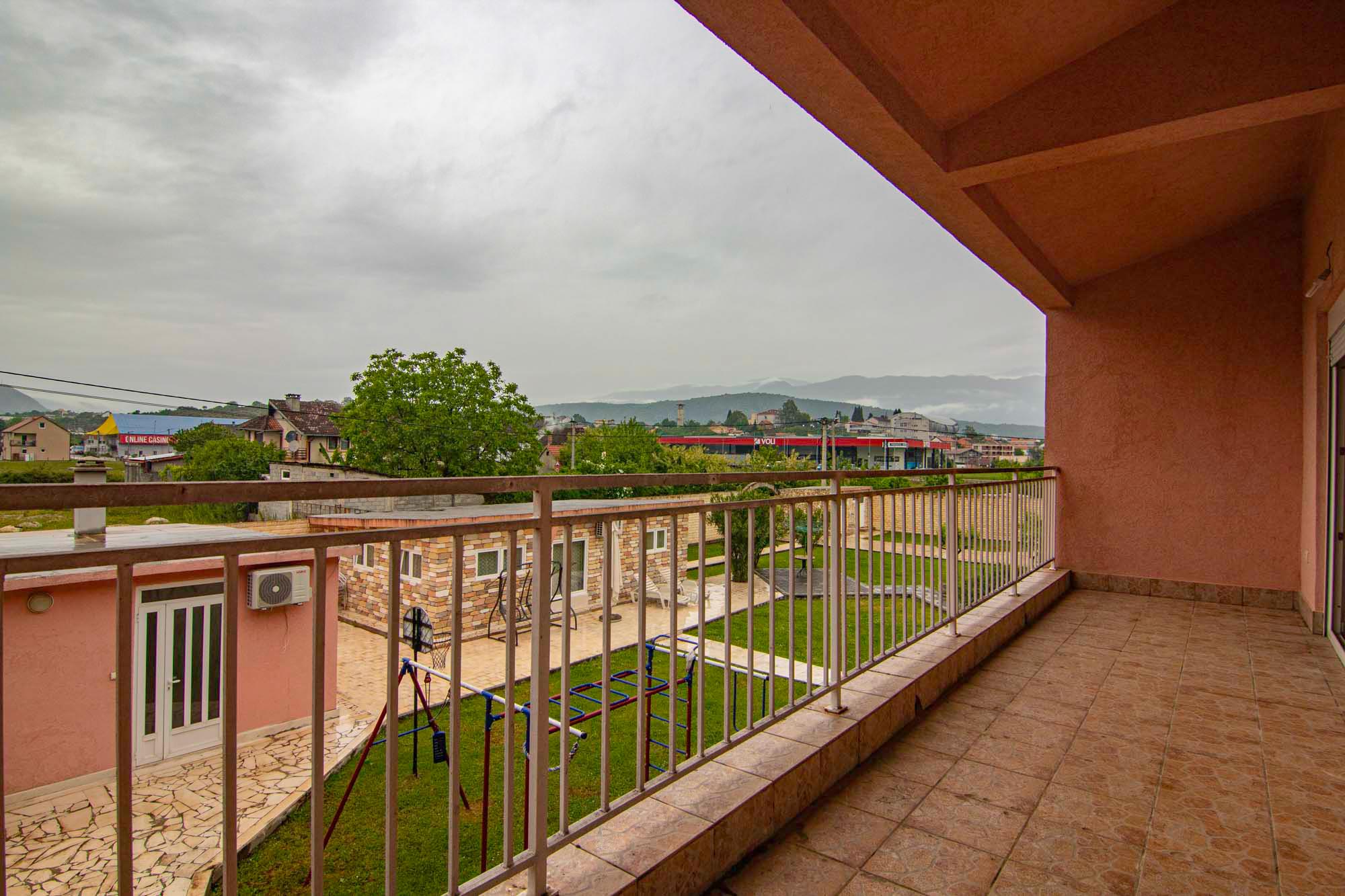The house is surrounded by a 3m high concrete wall with decorative stone. It is located near the center of Danilovgrad, close to the road that connects this town with Nikšić and Podgorica. The “Woli” supermarket can be seen from the balcony of the house. In the neighborhood there is a health center, primary and secondary school, post office and much more.