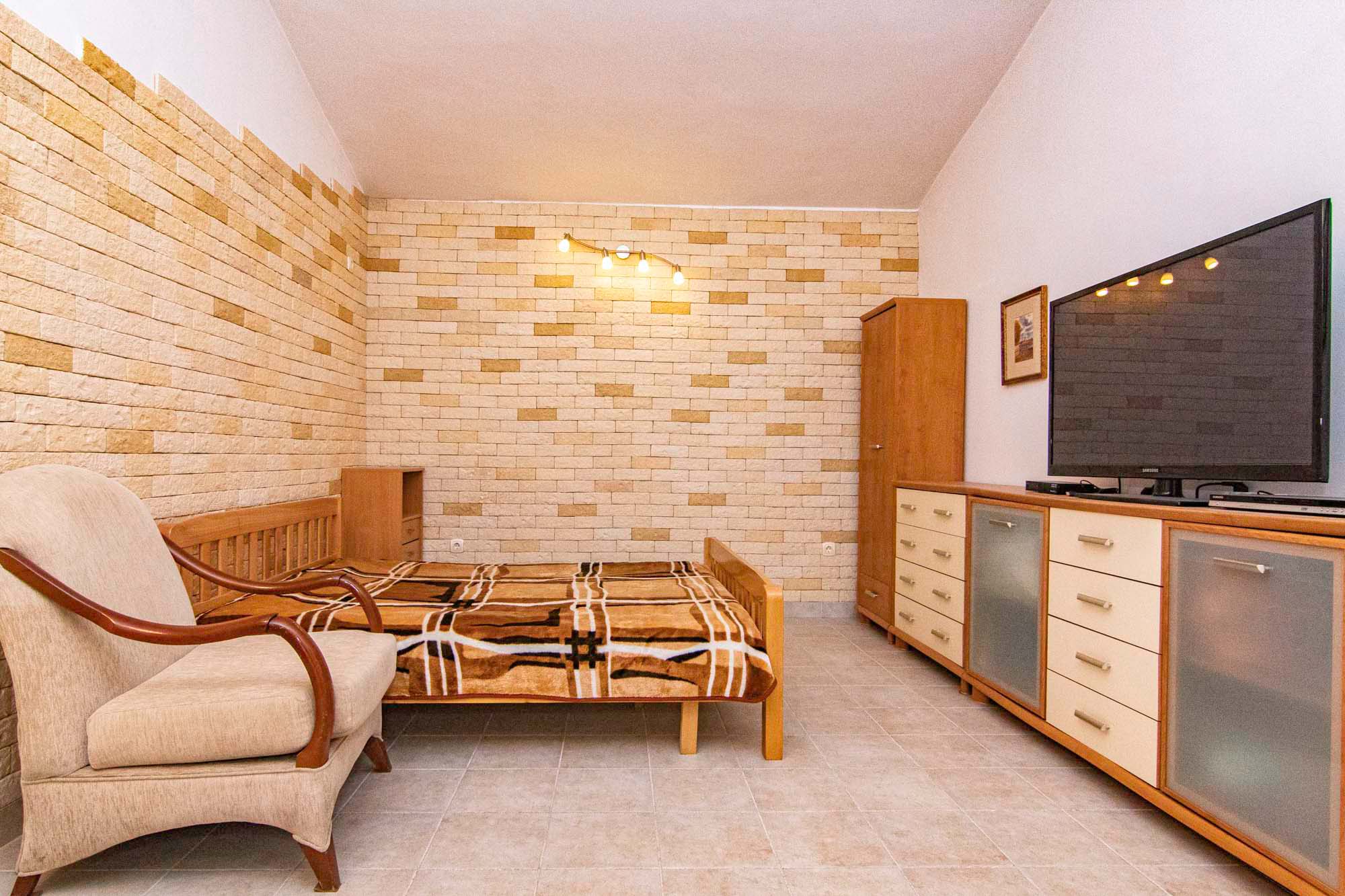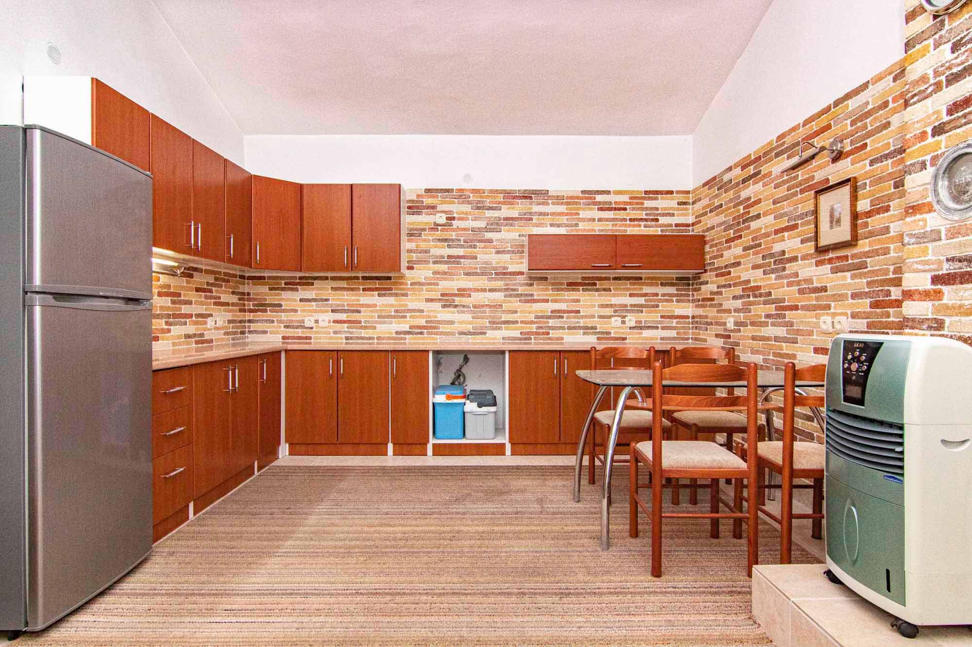 – fully equipped summer kitchen, with dining table, fridge freezer and water heater, TV and other small items