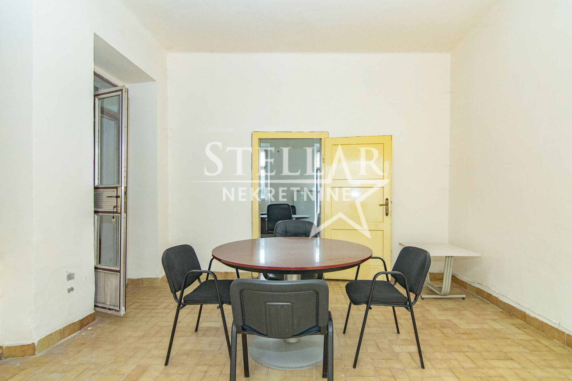 Commercial space for rent on the ground floor of an older building on Božana Vučinić Square. The main part has 100m2, in which there are 4 rooms, with 3 entrances. In addition, there is an additional 100m2 that can be used as a storage room, apartment, office, etc. There is a street in front of the building, and around the building there is a private parking lot with 3-5 parking spaces, with the possibility of parking a small truck.