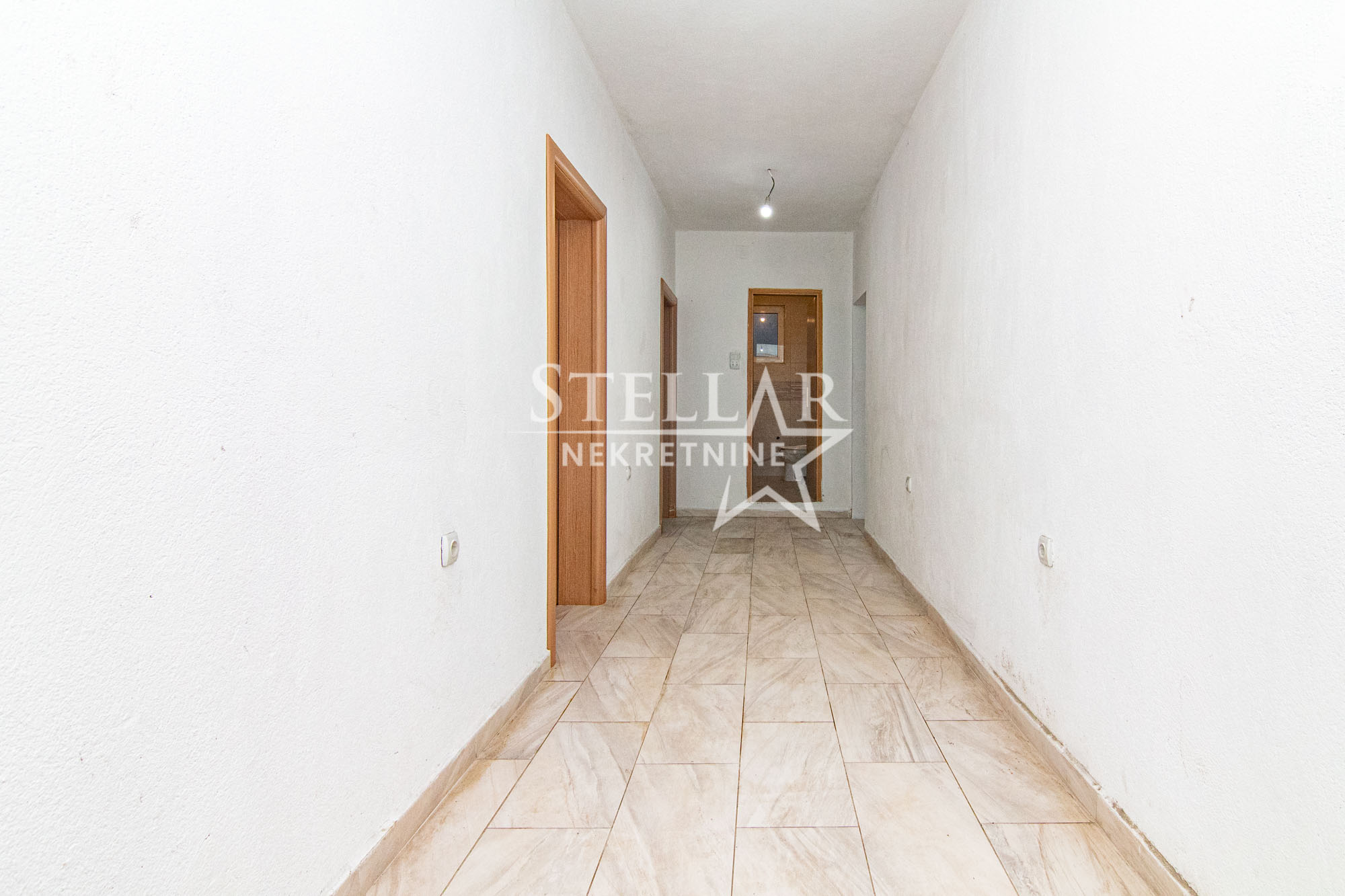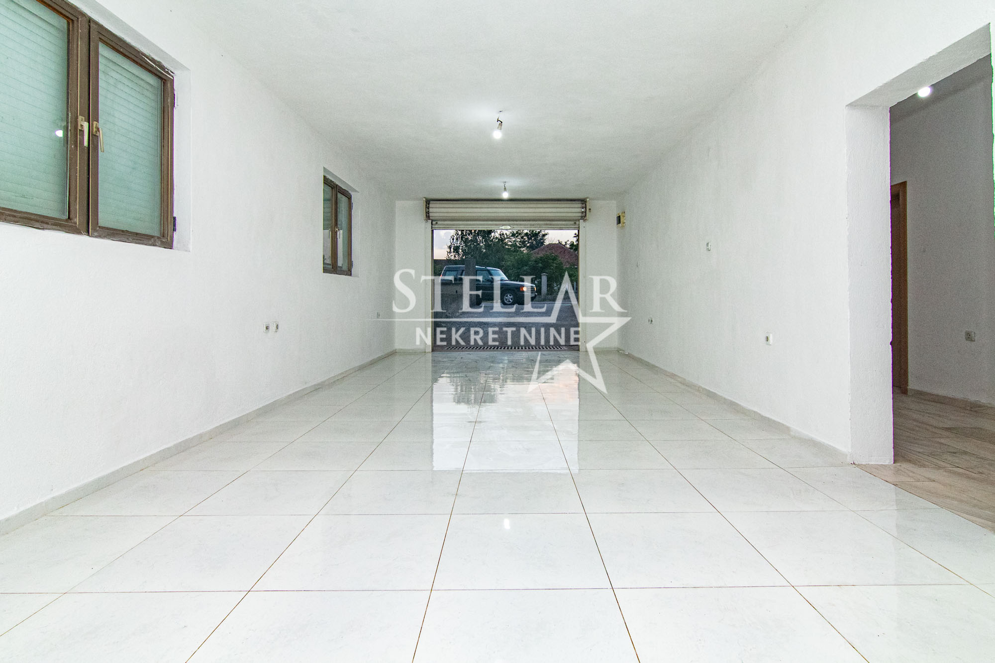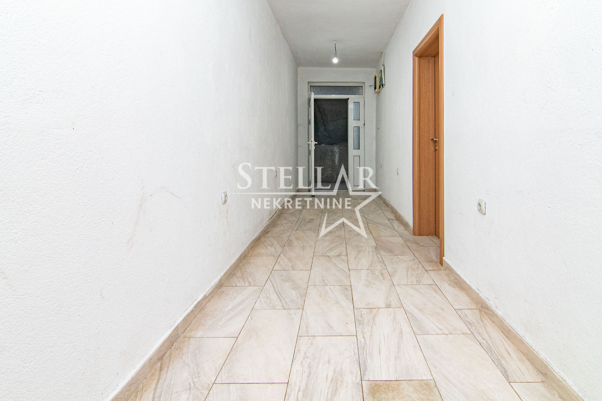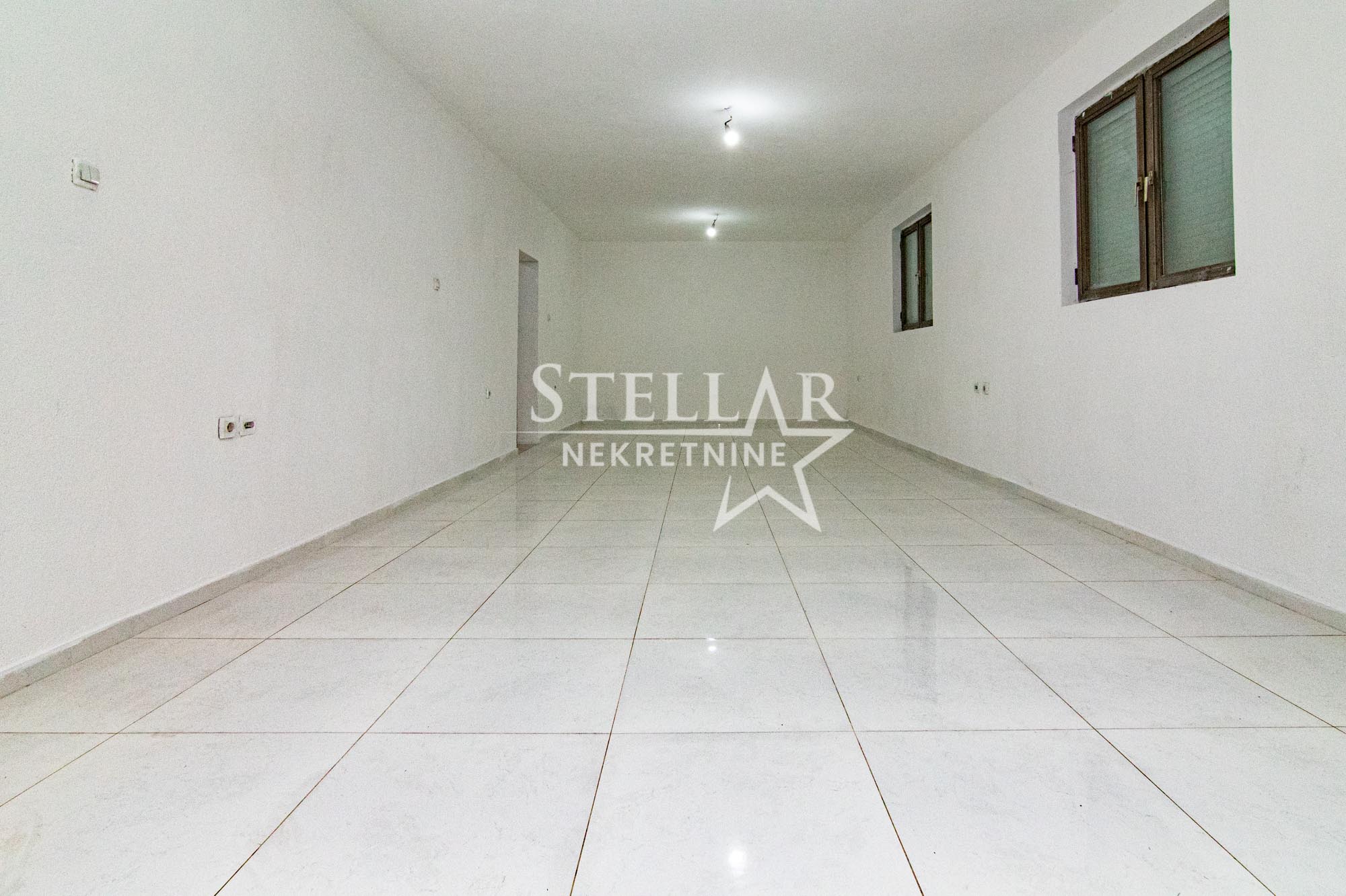 The business premises are located 2.5km from the city centre. It is located on the lower ground floor, and consists of a hallway of about 20 square metres, and two rectangular rooms of 40m2 on both sides of the hallway. At the end of the hallway is a bathroom. The entrance to one of the rooms has a roller door, the owner is willing to change this if the tenant wishes. There is a parking space for 3 cars in front of the building.