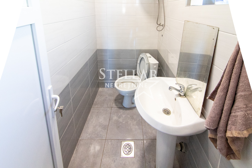 Empty office space for rent on the corner of a private house on Veljko Vlahovića Boulevard near the Football Association. The space has one room, a toilet, and a kitchen area. The area is 31m2, and in front there is a 27m2 space that can be used as additional space, a garden, or similar.