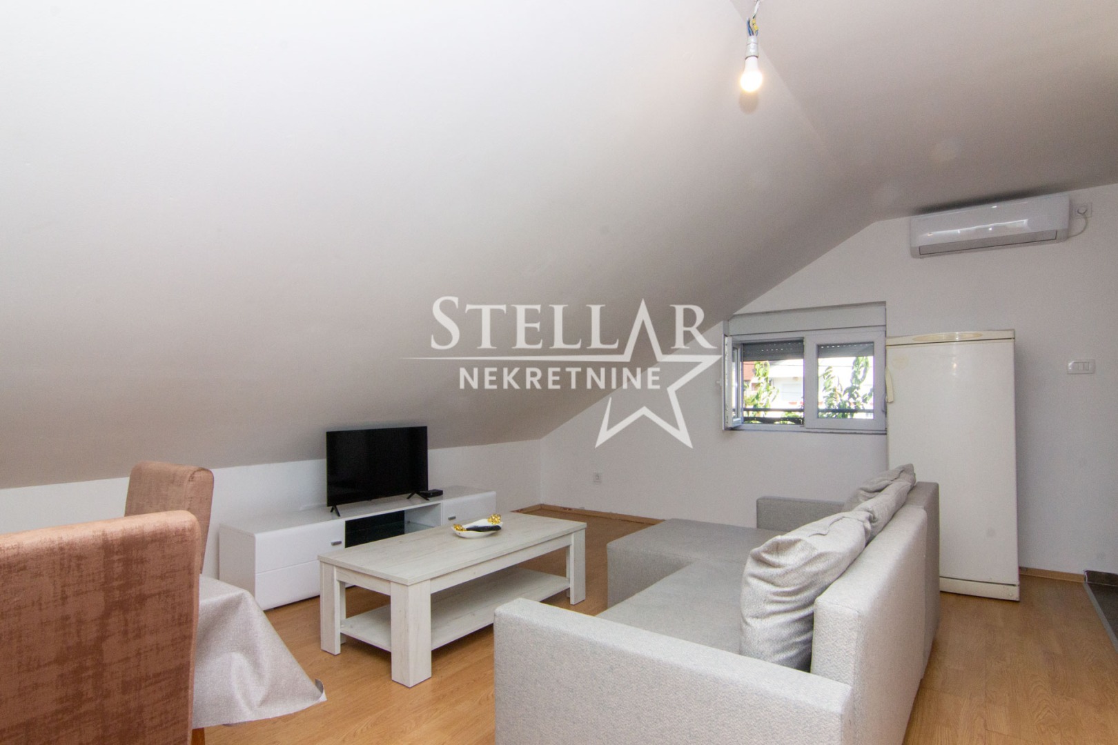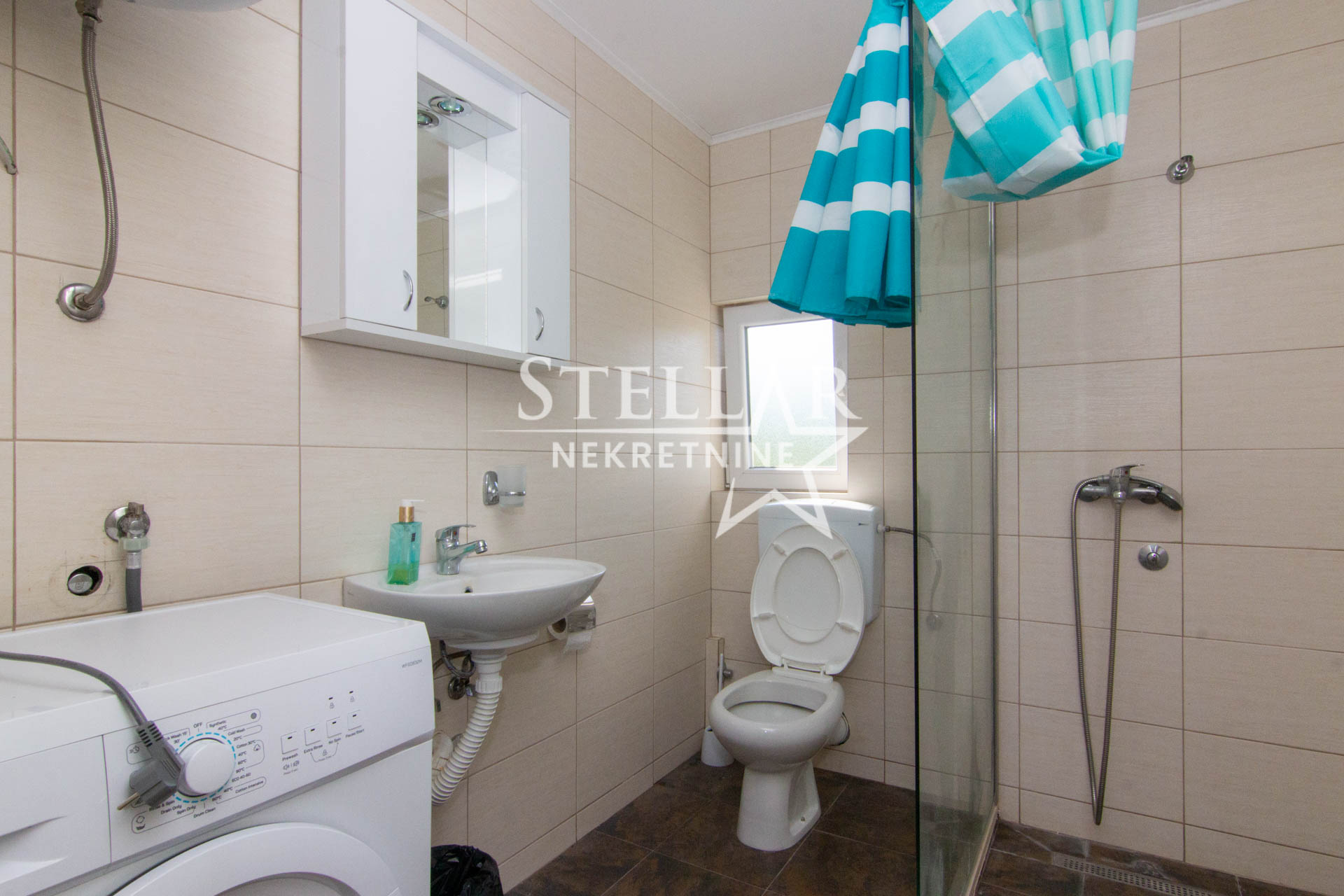 A one-bedroom apartment of 45m2 is for rent, located on the first floor of a family house. The apartment is south-facing and very sunny. The apartment includes cutlery and bedding, air conditioning is located in the living room. Additional equipment in the apartment includes a washing machine.