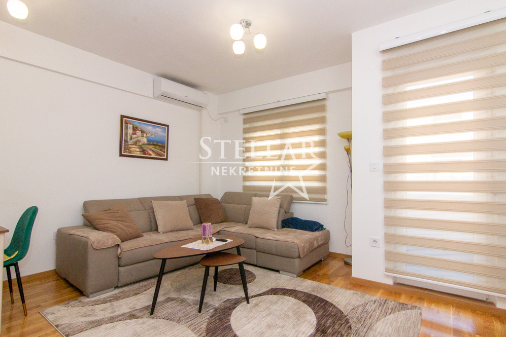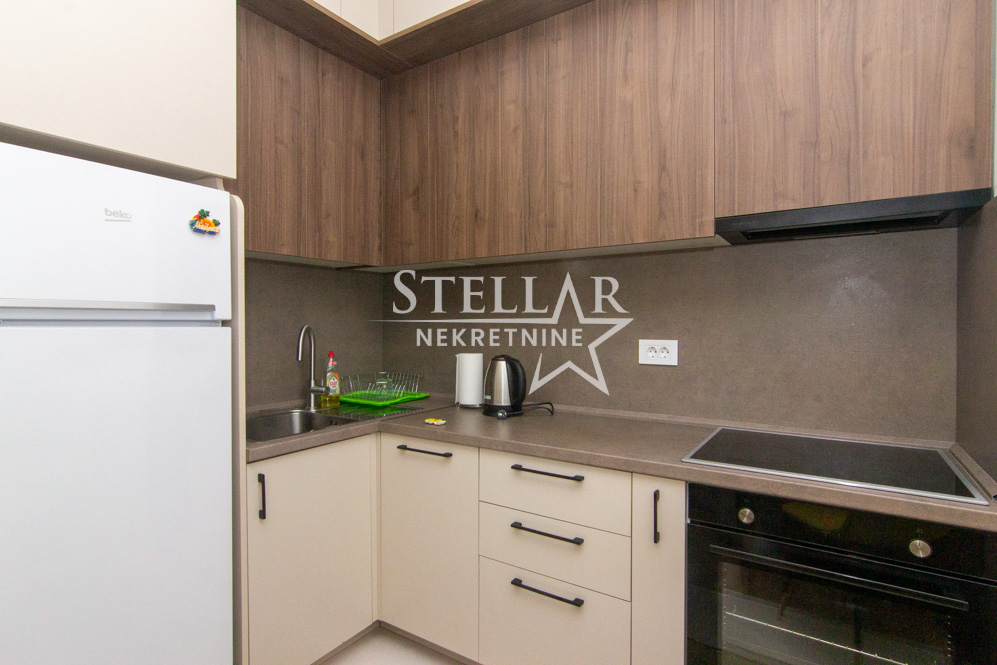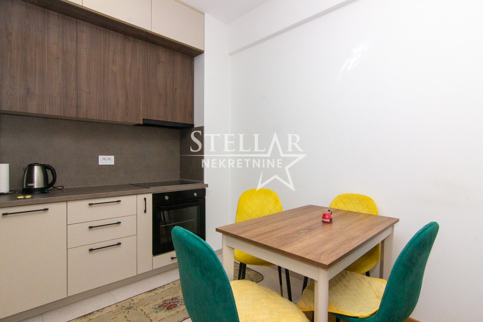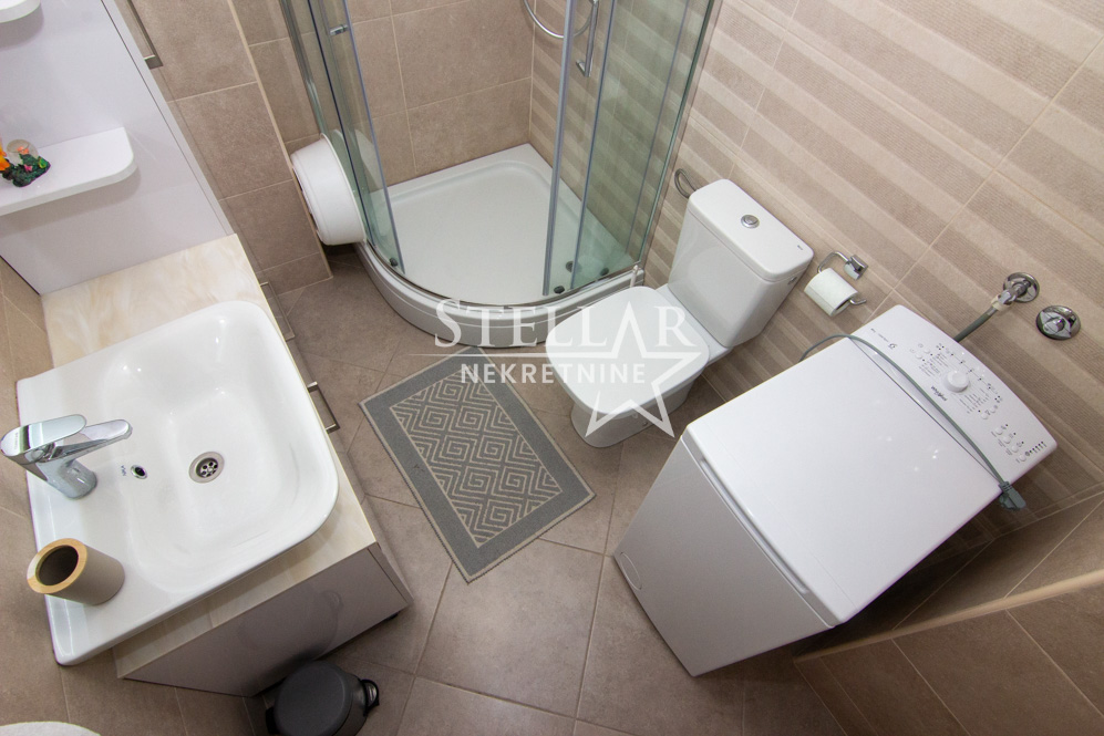 A fully furnished one-room apartment of 42m2 is for rent. The apartment is located on the fourth floor in a building with two elevators. The building was newly occupied in September last year. In terms of technology, the apartment has a dishwasher and a washing machine, as well as an air conditioner in the living room.