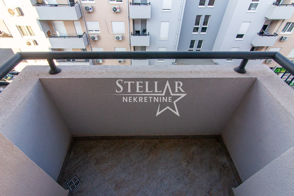 The apartment is located near Multicom and has a garage where one parking space is available.