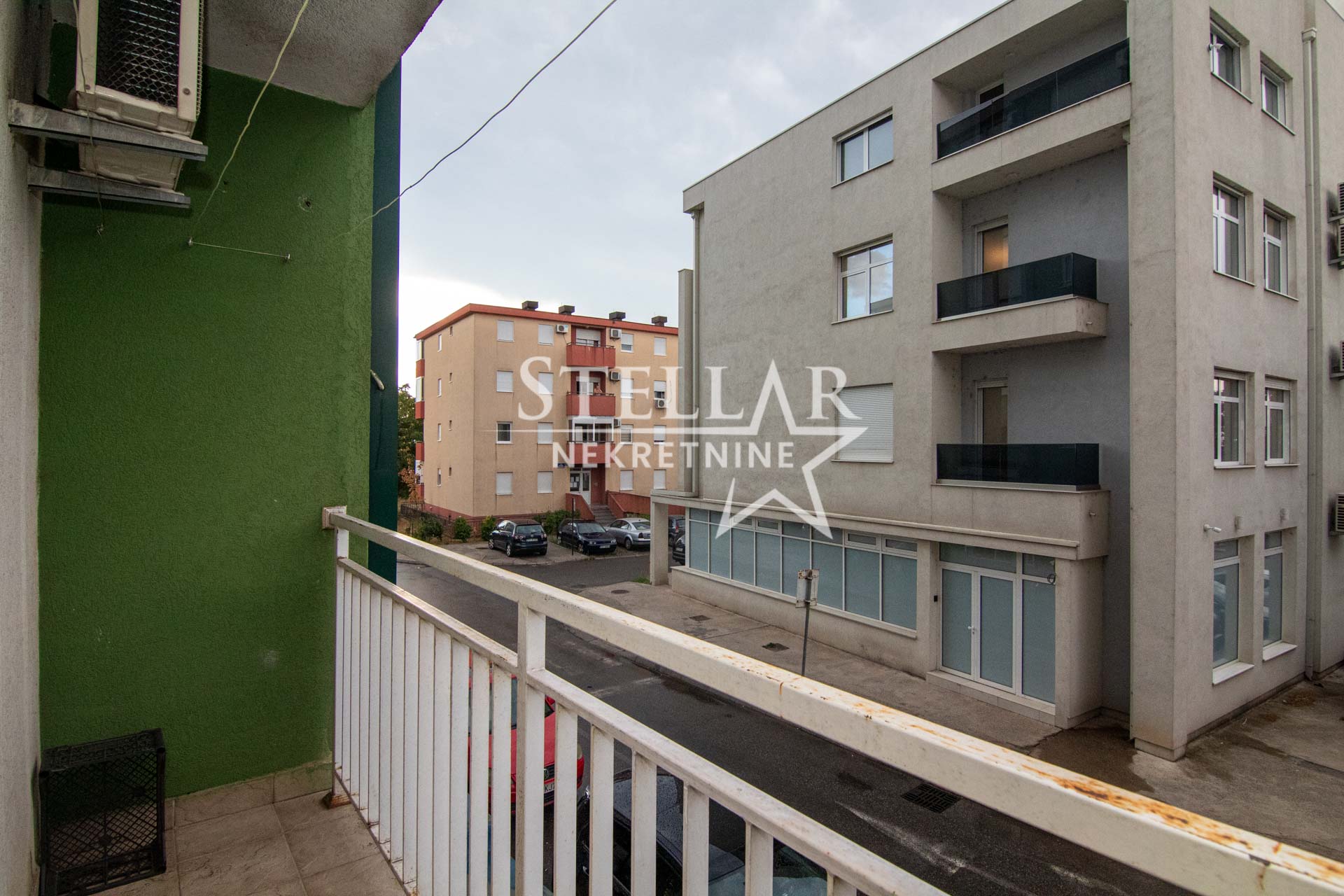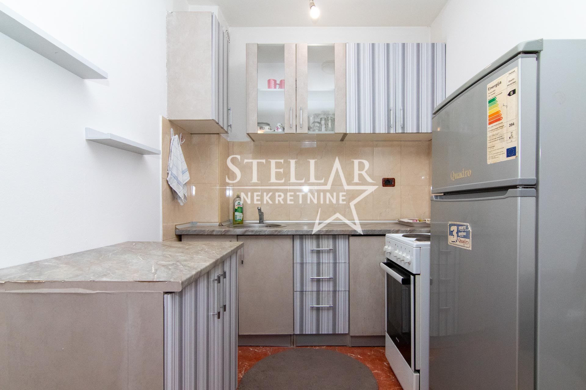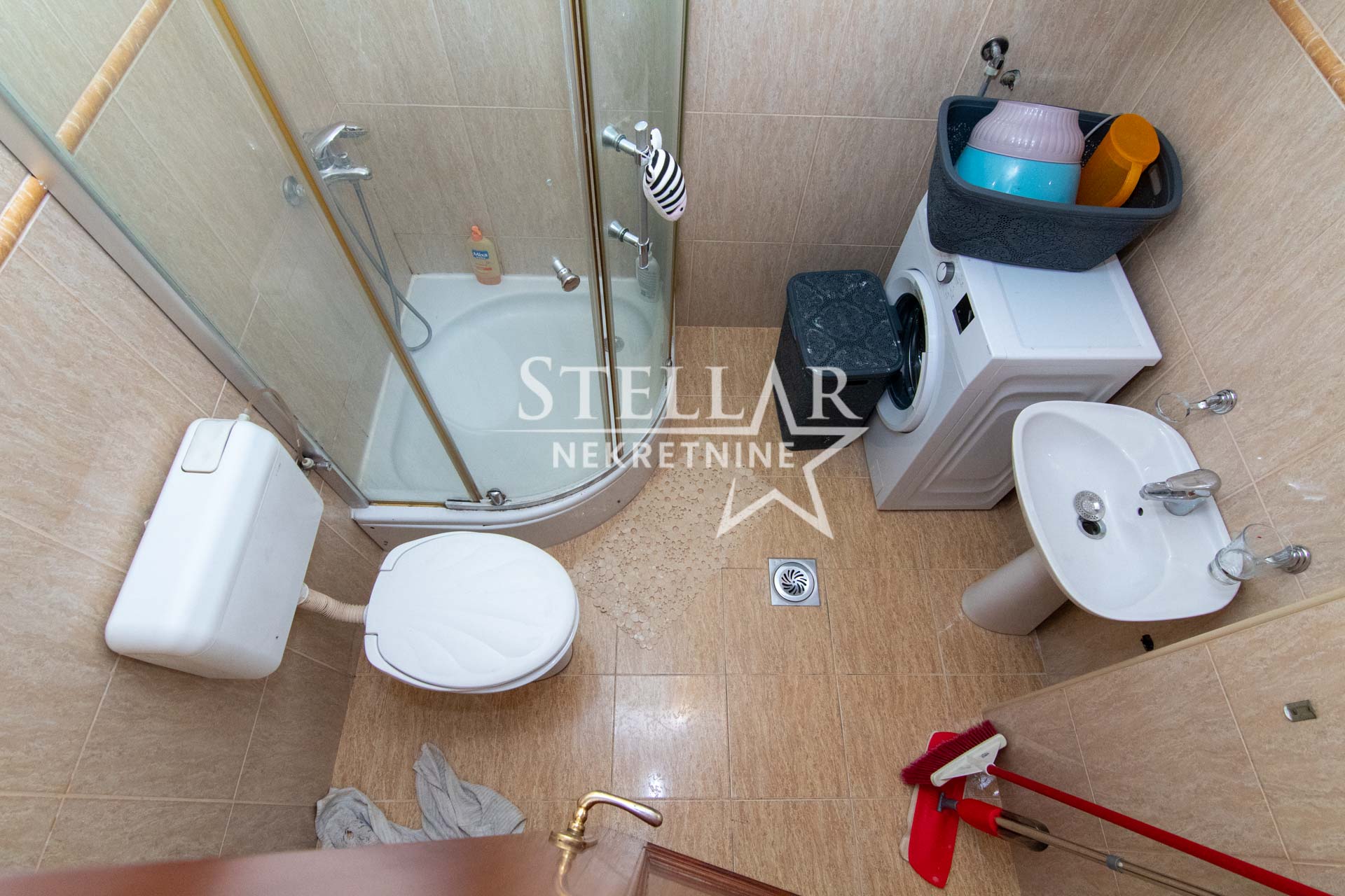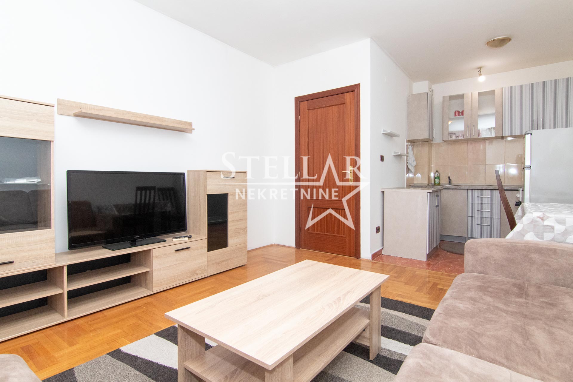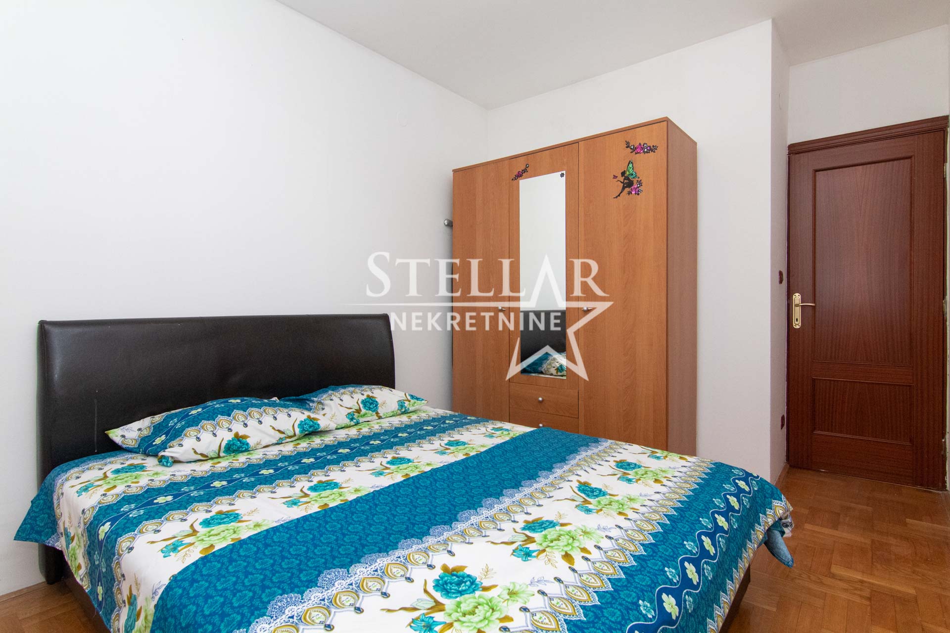 A nicely furnished one-room apartment for rent on the 1st floor of a residential building in Zabjelo, built in 2013. The apartment is extremely warm despite the northwest orientation. The living room has an exit to the balcony. The apartment is equipped with all things necessary for life. The bedroom has a double bed and a large wardrobe. The bathroom has a washing machine and a shower cabin. The living room has an air conditioner. The building has an elevator and there is a large public parking lot in front of the building. Nearby are shops, restaurants, schools, kindergartens, supermarkets, bakeries, bus stops, and toll-free pumps.