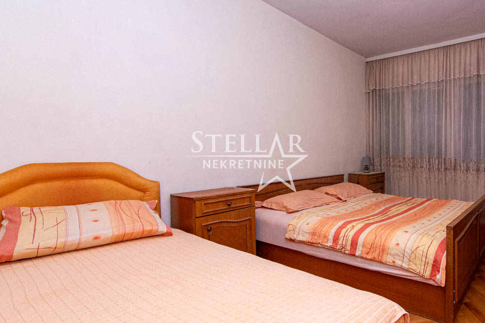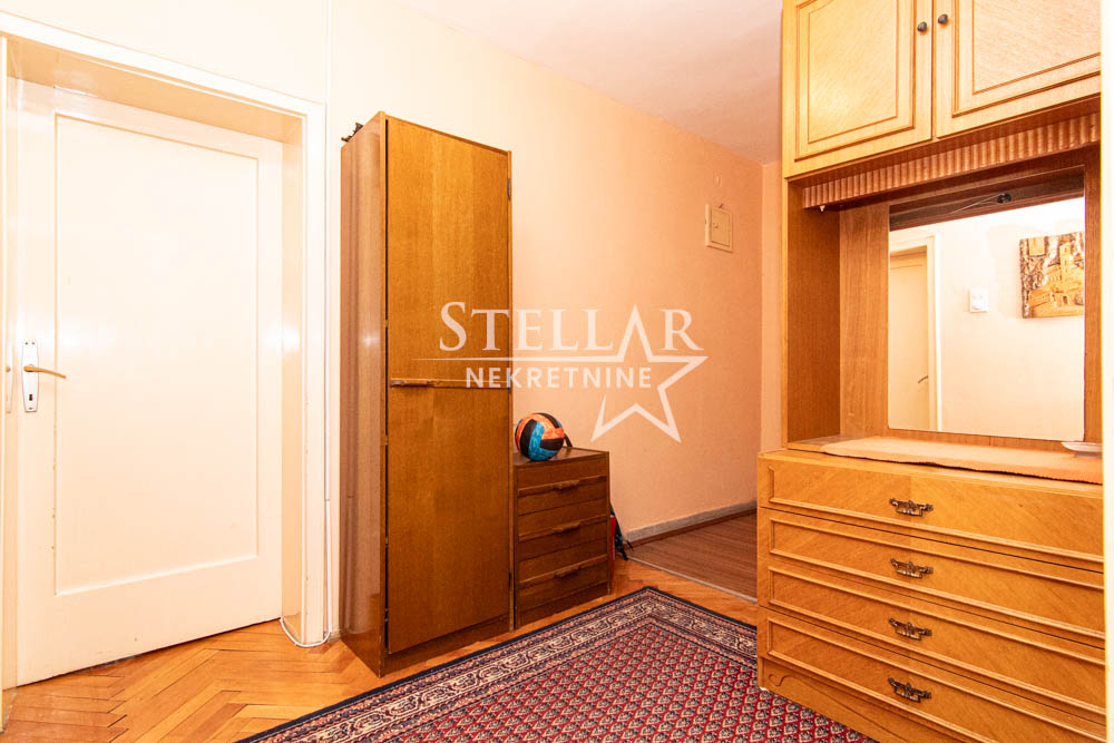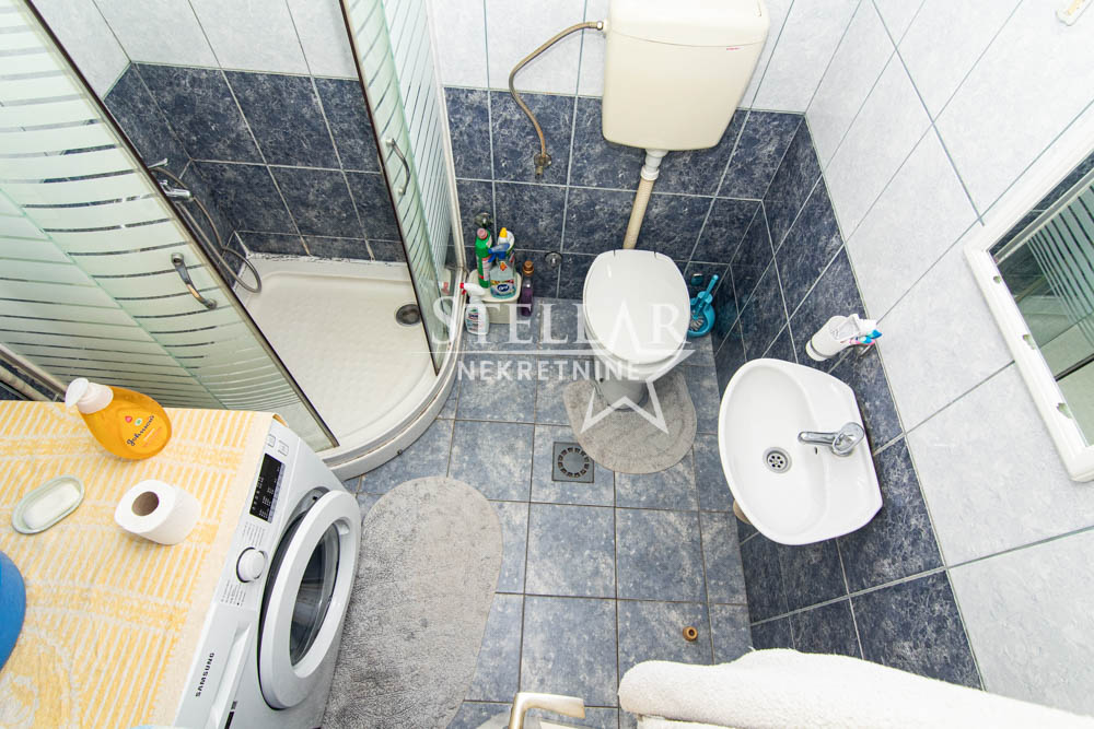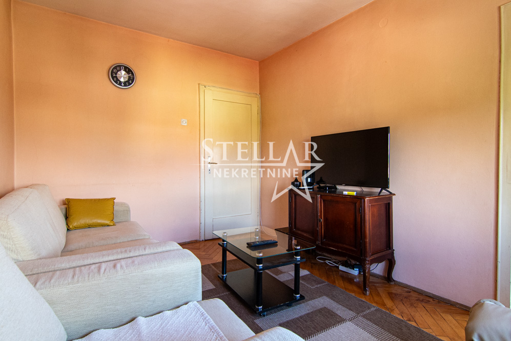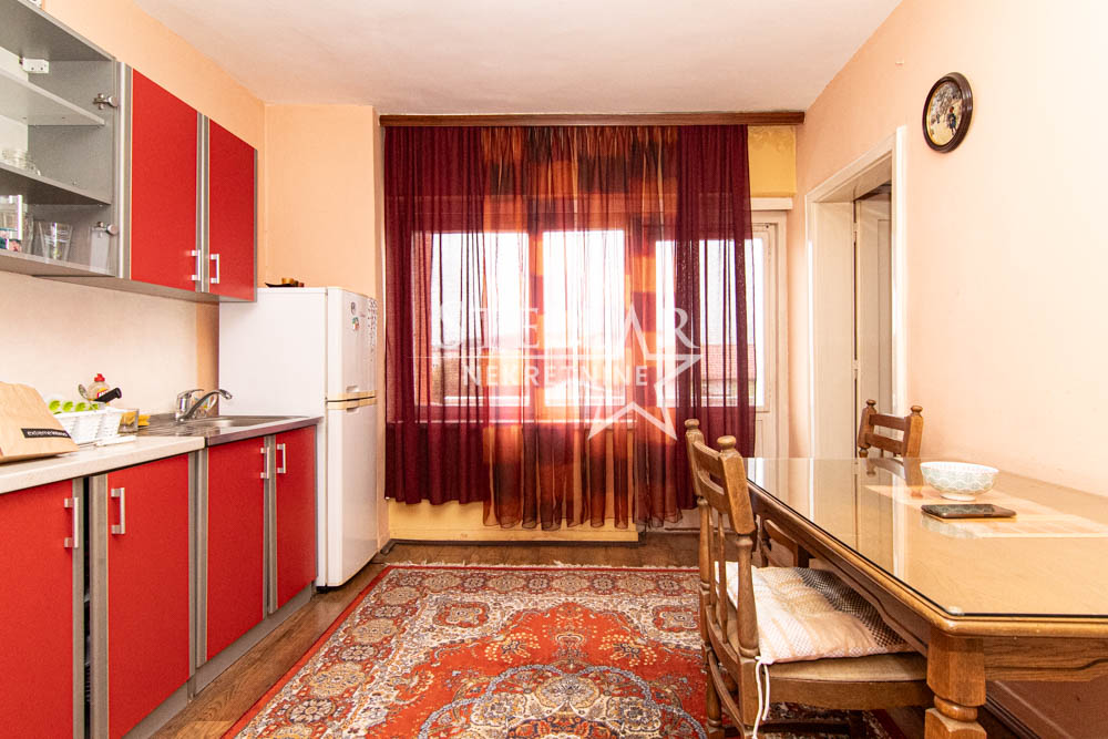 For rent is a furnished one-bedroom apartment of 48m2 on the second floor of an older building on Oktobarske revolucije Street in Podgorica. The apartment has a spacious kitchen with a dining room that opens onto a north-facing balcony. The bedroom has two beds – a double bed and a single bed, as well as a four-door wardrobe. The bedroom opens onto a second balcony, facing south.