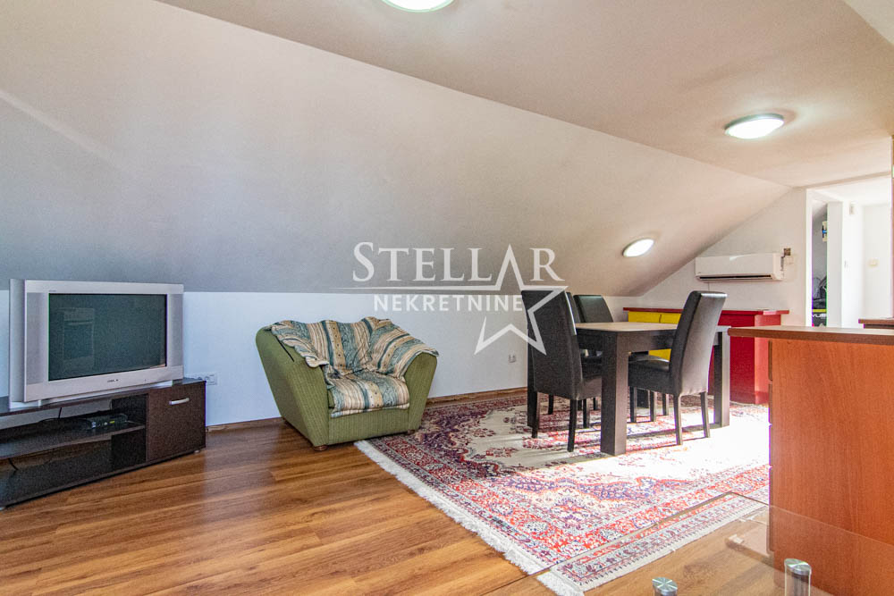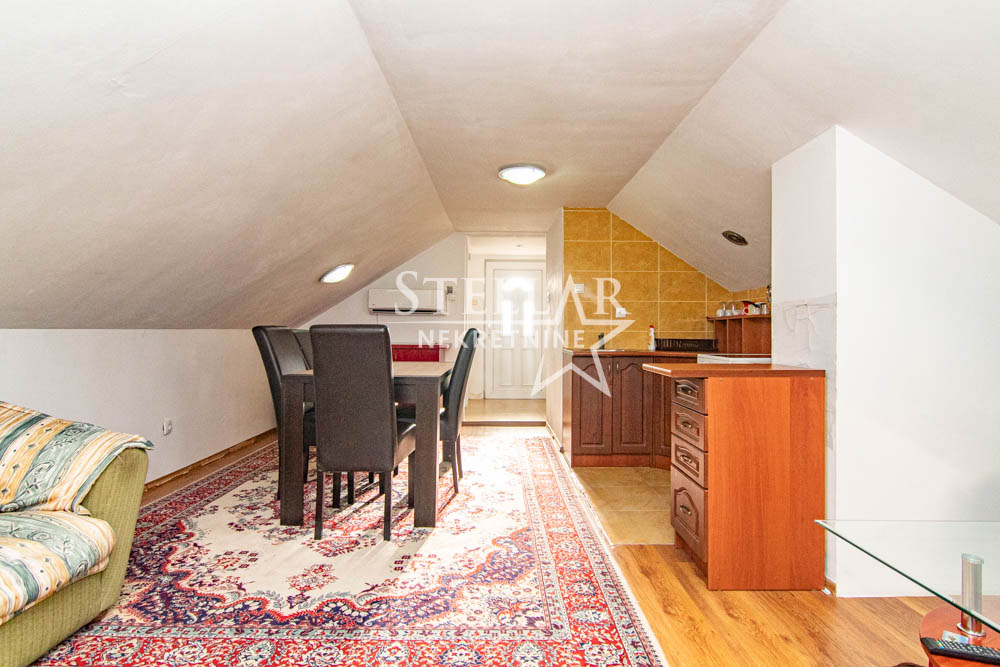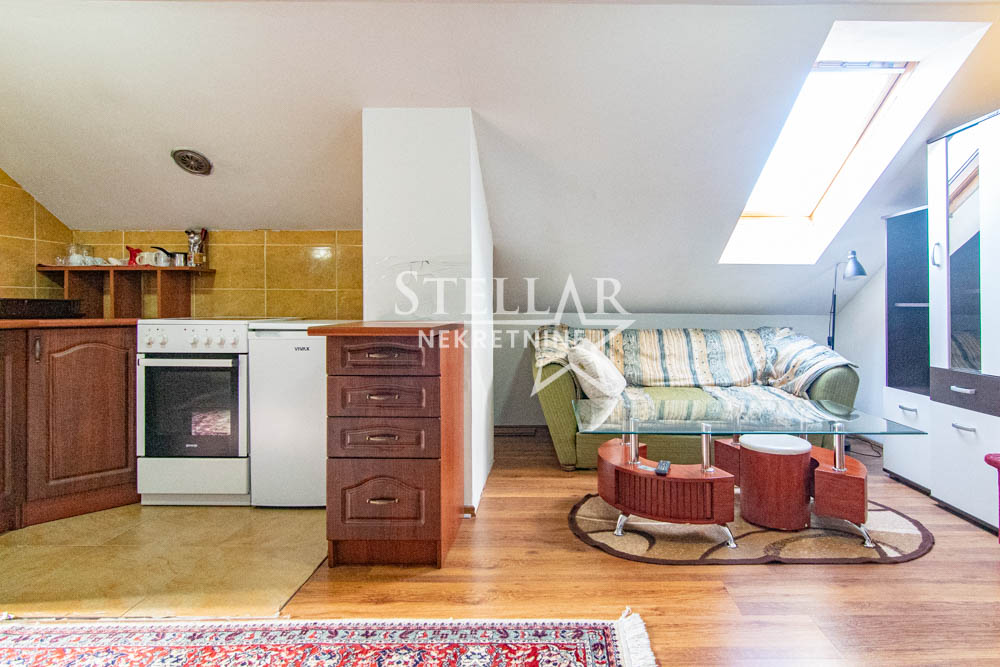 Furnished one-bedroom apartment for rent on the second floor (attic) of a house in Gornja Gorica, just a few minutes walk from New City. The apartment has sloping walls, but is comfortable and convenient for living.