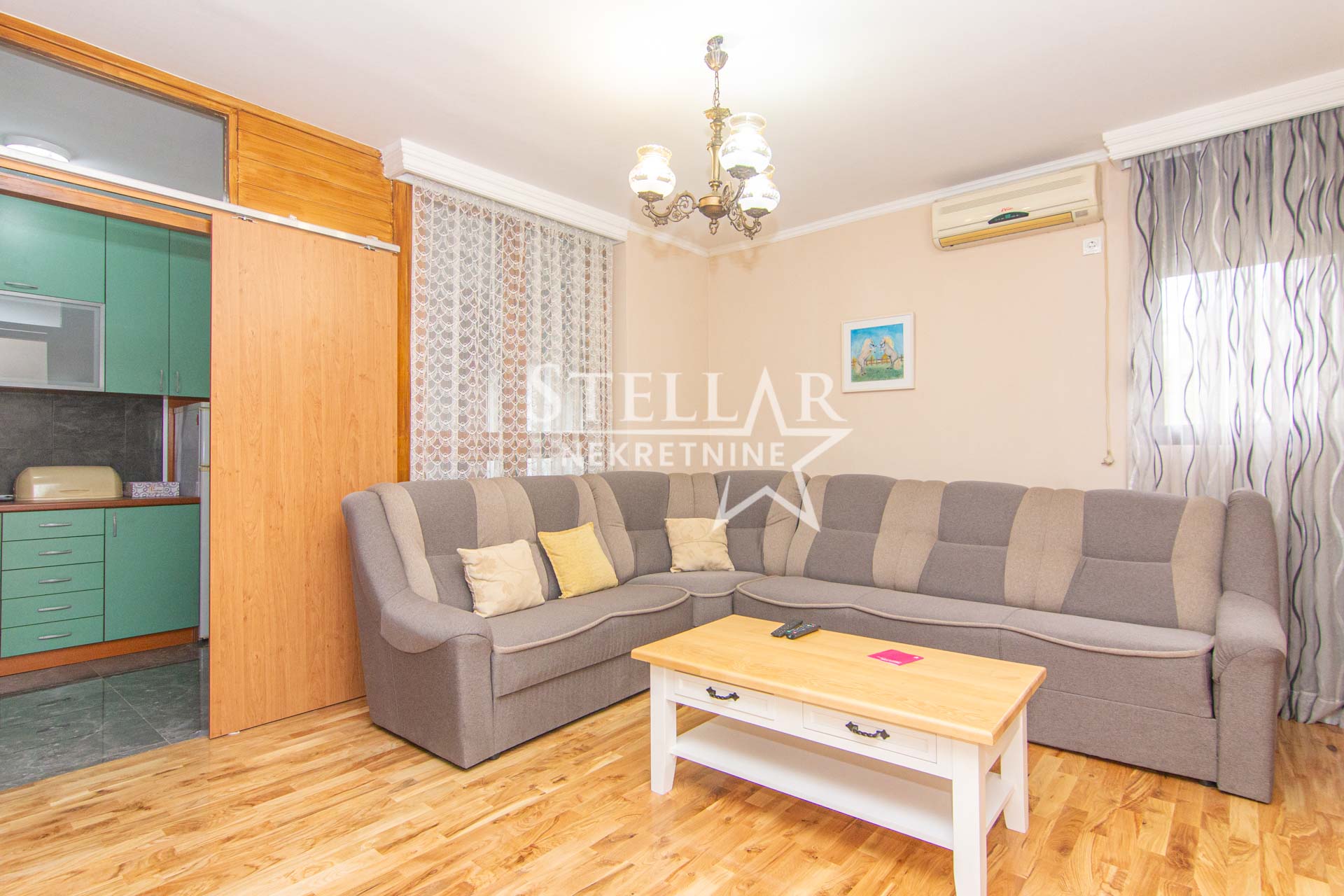 Fully furnished one-room apartment 50m2 for rent. The apartment is located on the first floor in a building with 4 elevators. The apartment has been completely renovated. It has a southern orientation, which makes it very sunny. There is an air conditioner in the living room, and among other equipment, the apartment has a washing machine. Complete equipment and bed linen are provided in the apartment. Not pet-friendly.