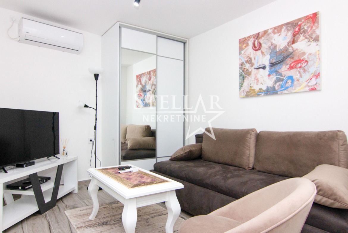 A 30m2 studio apartment is for rent in a house in the Centar neighborhood. The studio is located on the ground floor. It is fully furnished with new furniture, cutlery and towels. The apartment is east-facing. It has air conditioning, and other appliances include a washing machine and a refrigerator.