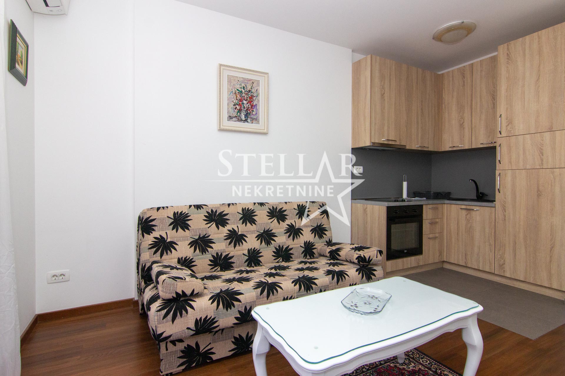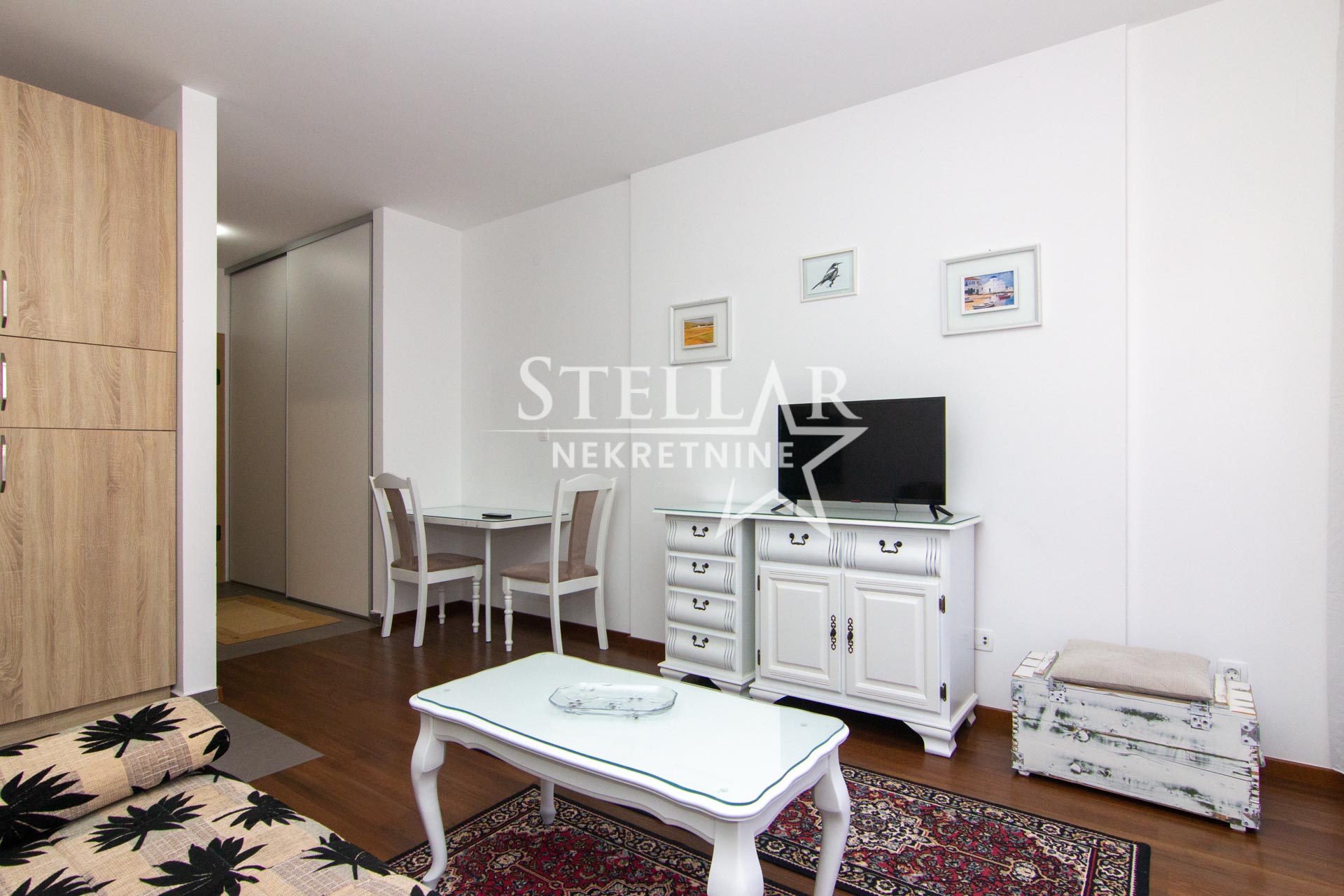 Studio apartment for rent in the Master Quarter neighborhood. The apartment is located on the sixth floor in a building with two elevators. It is fully equipped with cutlery. The apartment is east-oriented. It has air conditioning and other appliances include a washing machine.