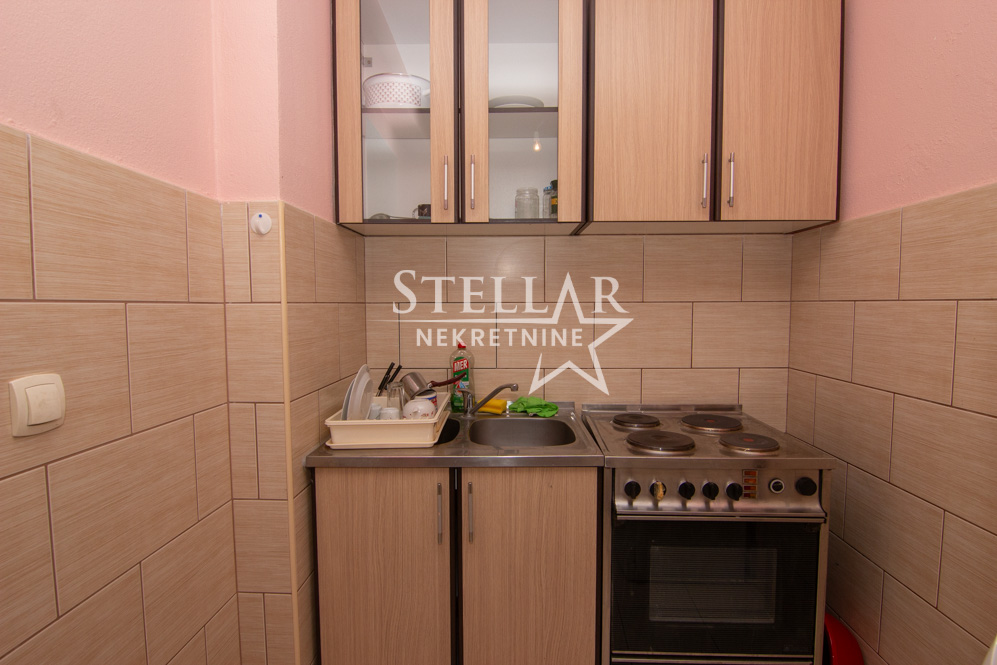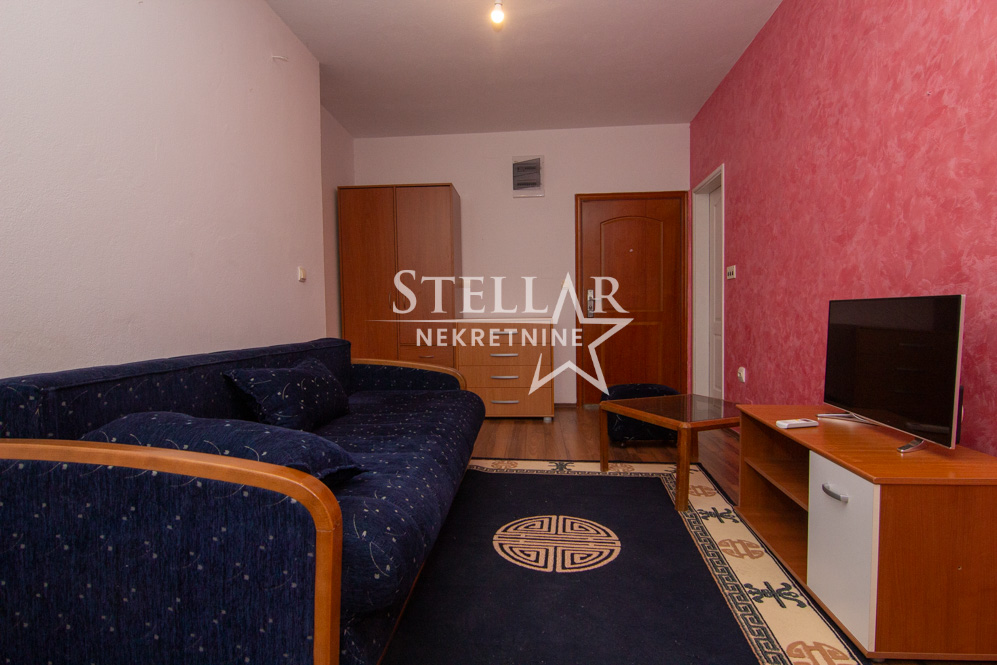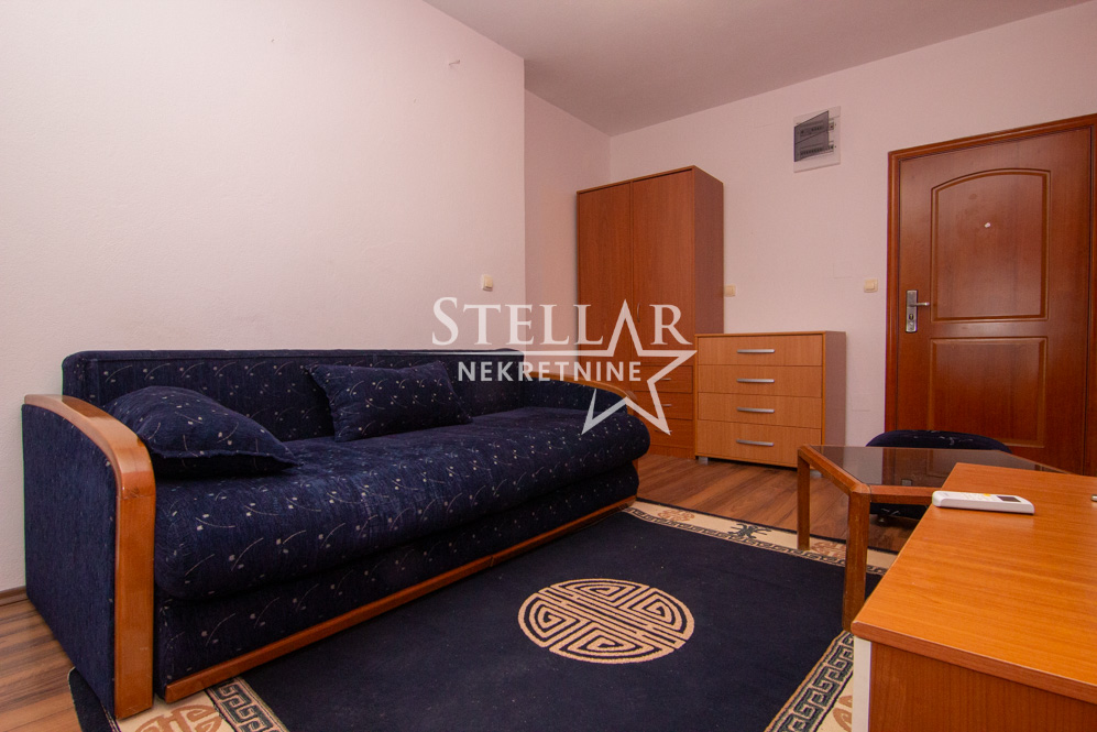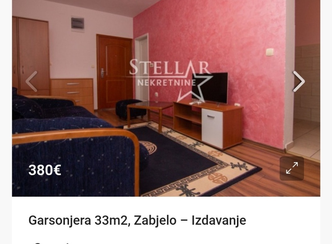 Furnished studio apartment 33m2 for rent in Zabjelo. The studio is located on the first floor in a building without an elevator. Not pet-friendly. There is an air conditioner in the living room. The bathroom has a shower cabin and a washing machine.