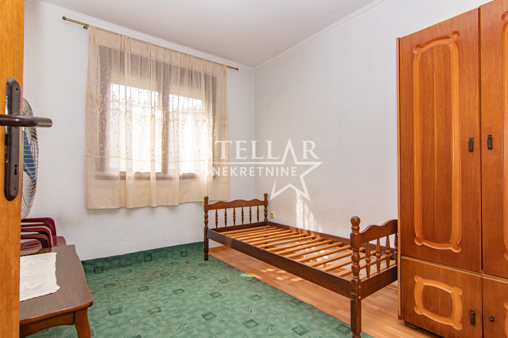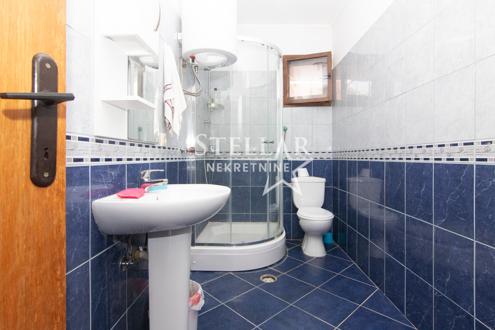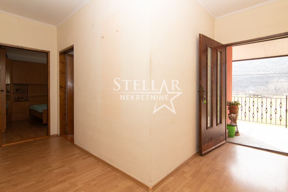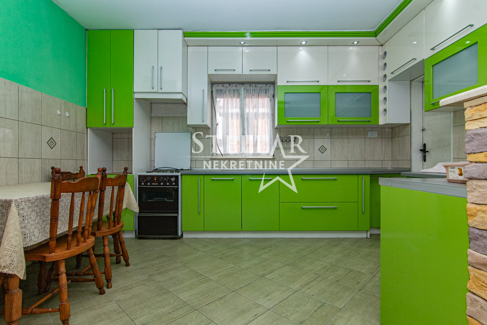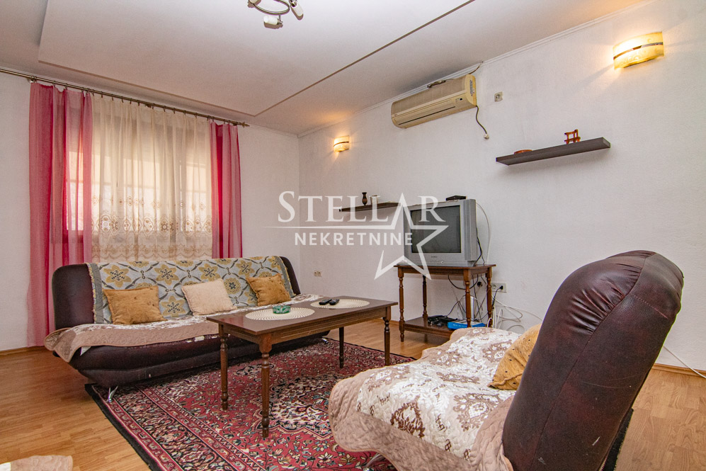 A three-bedroom apartment is for rent in Orašje, Municipality of Danilovgrad. The apartment is located on the first floor of a house, which is on two levels. The rooms in the photos are partially furnished, but the apartment is rented fully furnished. Some older appliances in the apartment can be replaced with newer ones, such as the TV. The apartment has two terraces, one is west-facing and connected to the bedrooms and kitchen, and the other is in front of the entrance to the apartment.