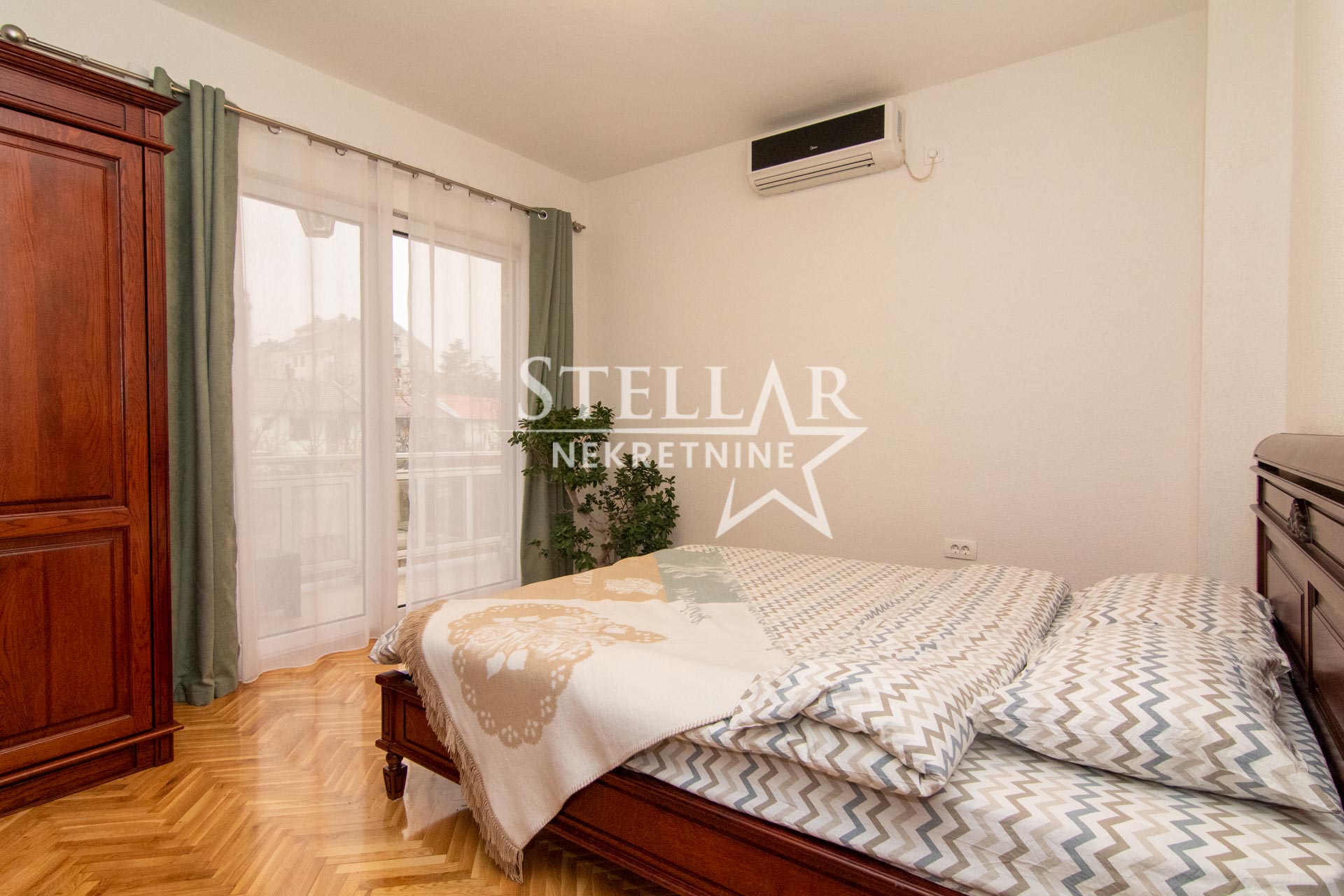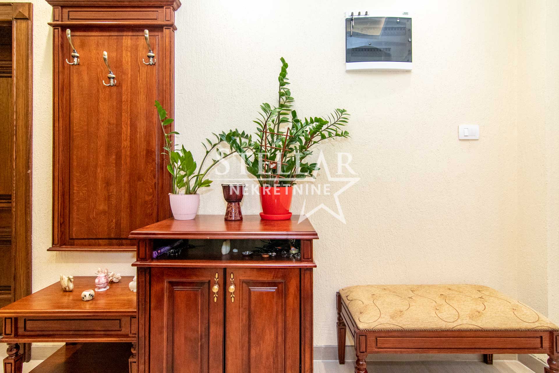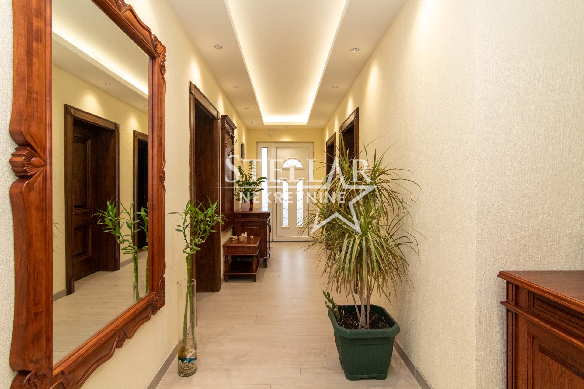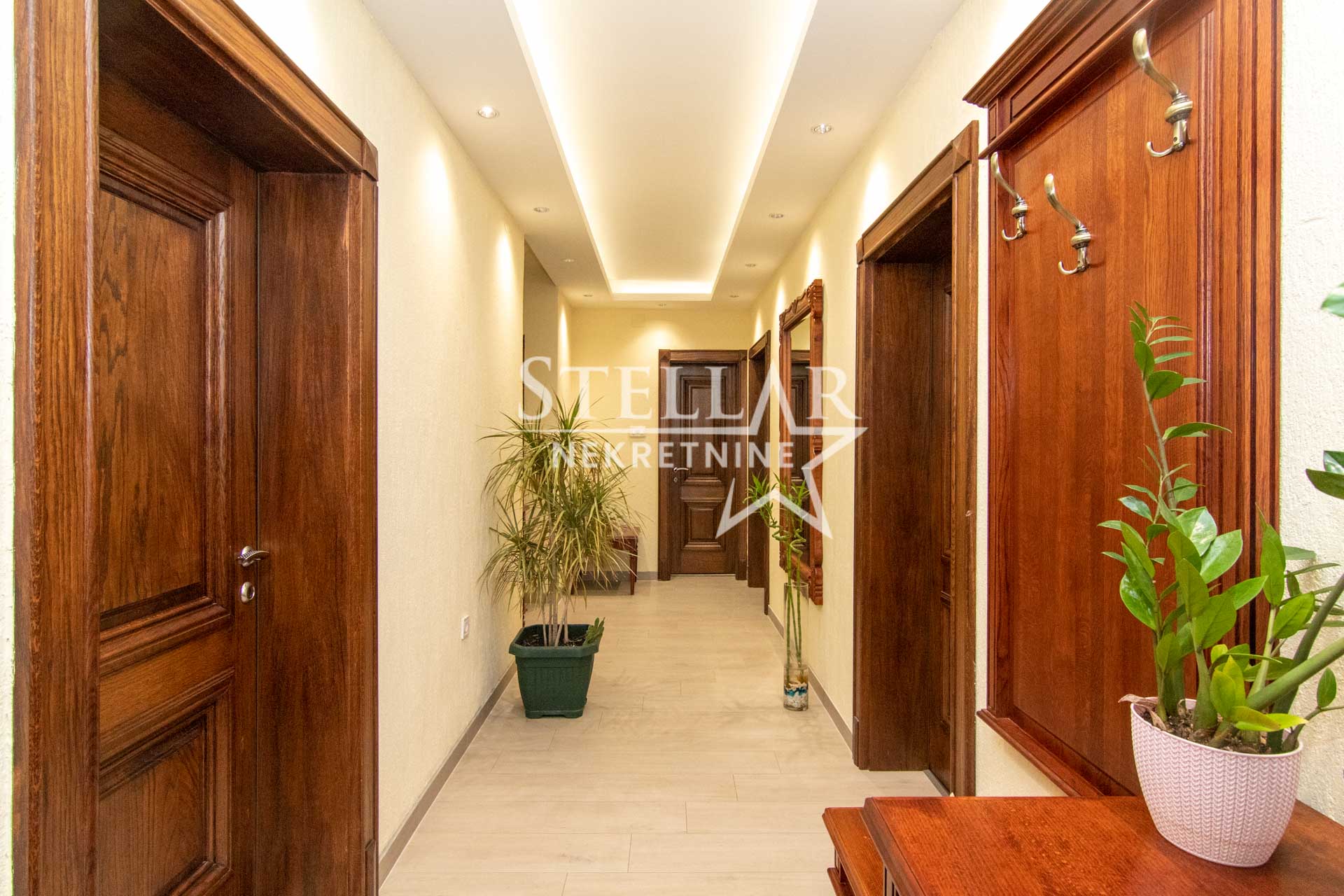 Luxuriously furnished three-bedroom apartment for sale on the 1st floor of a small residential building (3 floors in total). The apartment has an area of 128m2, including covered balconies on all 4 sides of the apartment. The balconies are accessed from: hallway, living room, dining room, larger bedroom. Each room has daylight.