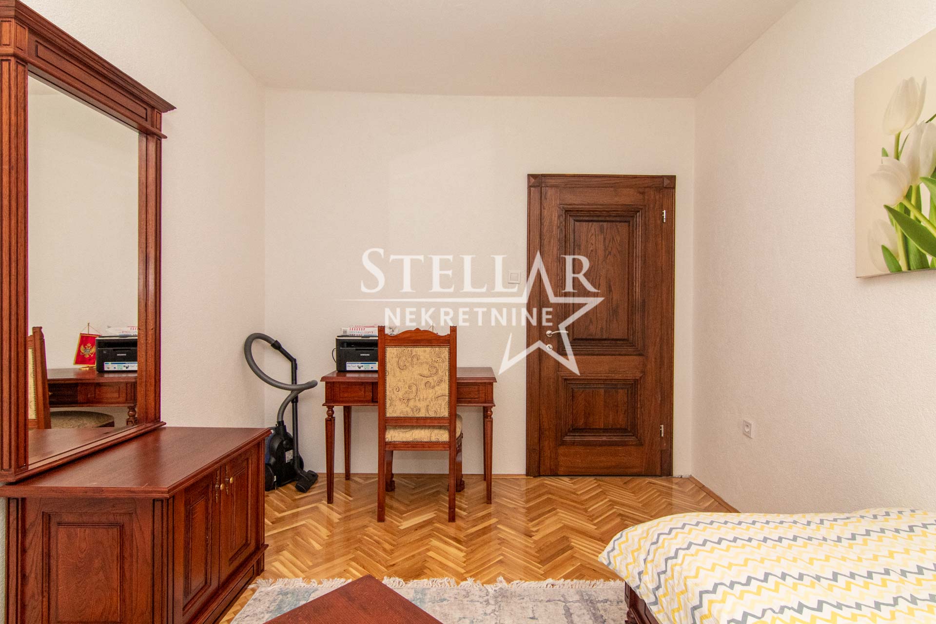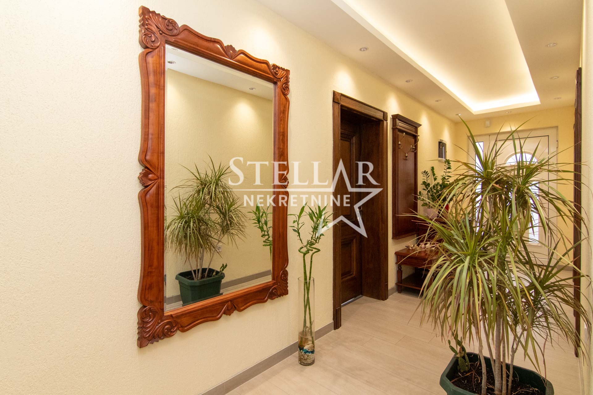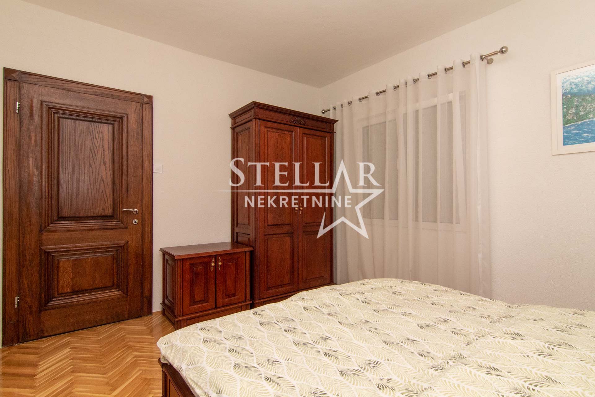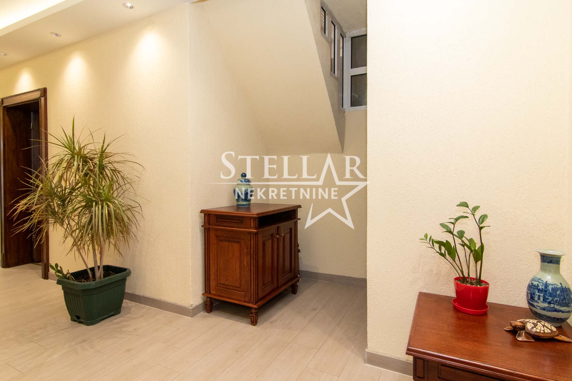 Luxuriously furnished three-bedroom apartment for sale on the 1st floor of a small residential building (3 floors in total). The apartment has an area of 128m2, including covered balconies on all 4 sides of the apartment. The balconies are accessed from: hallway, living room, dining room, larger bedroom. Each room has daylight.