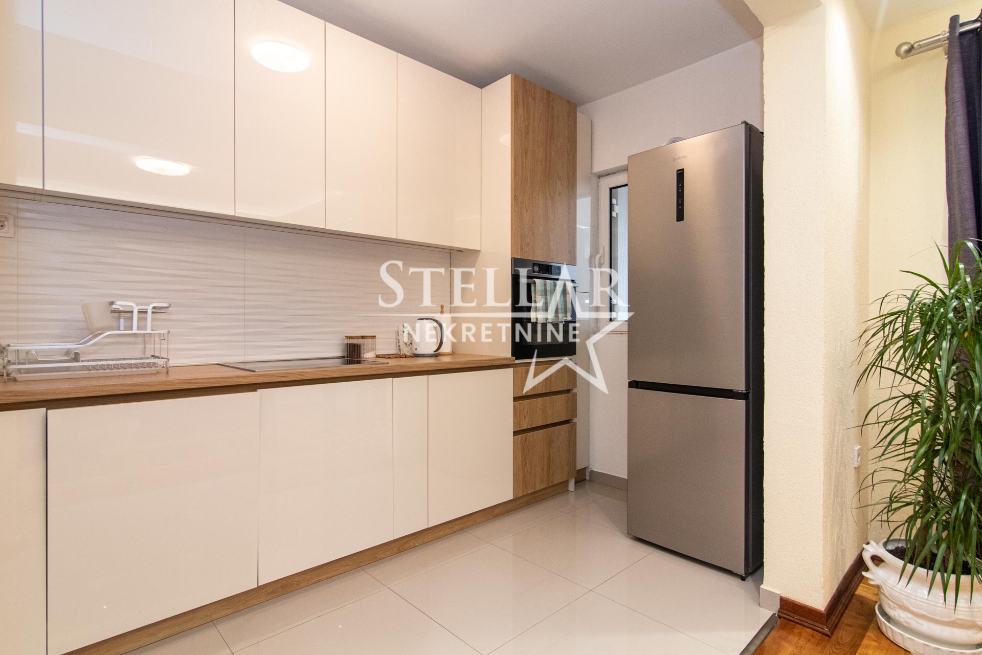 The building was completed in 1994, and the apartment was completely renovated in 2024. The floors, interior joinery, and ceilings were done. The living room and dining room have inlay floors, and the bedrooms have oak parquet. The doors are made of solid oak. The furniture is also made of solid wood. The kitchen is made of MDF, and the bathroom is ceramic. The floor in the hallway is also ceramic. The exterior joinery is aluminum with aluminum shutters.