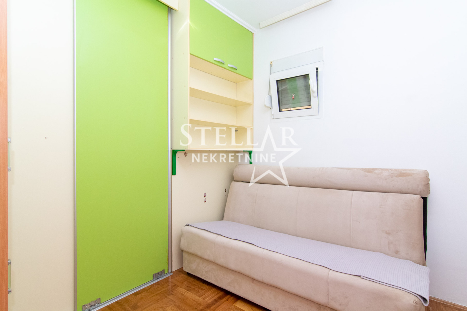There are washing and drying machines in the bathroom. There are closets and shoe racks in the hallway. In the living room there is an air conditioner, as well as another sofa bed. A TV would be provided if the tenants wanted it. The apartment is cool in summer and warm in winter, because it is located on the low ground floor. There are no traces of moisture anywhere in the apartment. Each room has daylight and ventilation.
