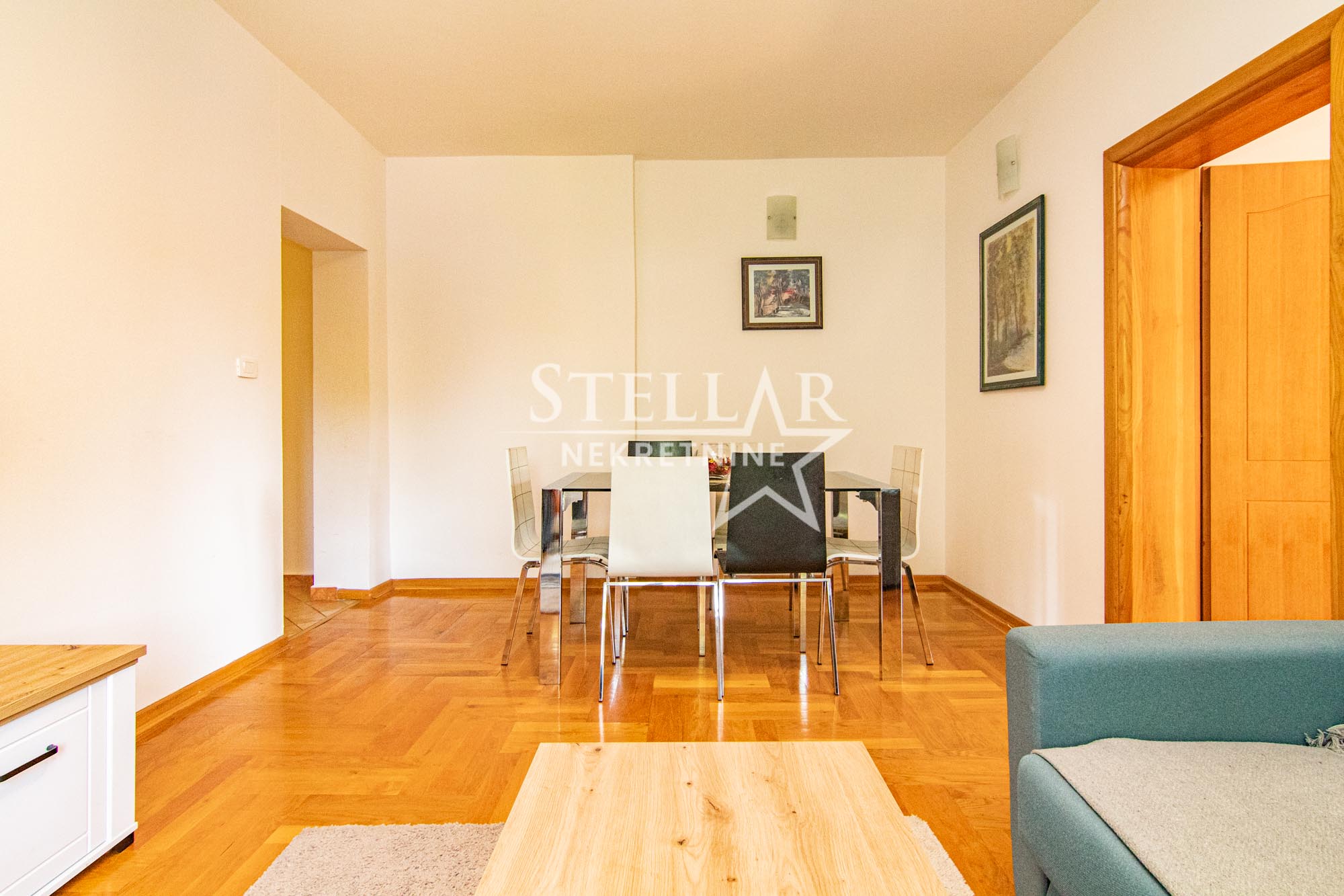 Enjoy urban life from the comfort of this two-bedroom apartment in the heart of the city. Located on the third floor of an old building, this elegantly decorated home offers a harmony between traditional charm and modern comfort. With a total of 60m2 of space, the apartment includes a spacious living room, kitchen and dining room, creating a space ideal for comfortable everyday life.