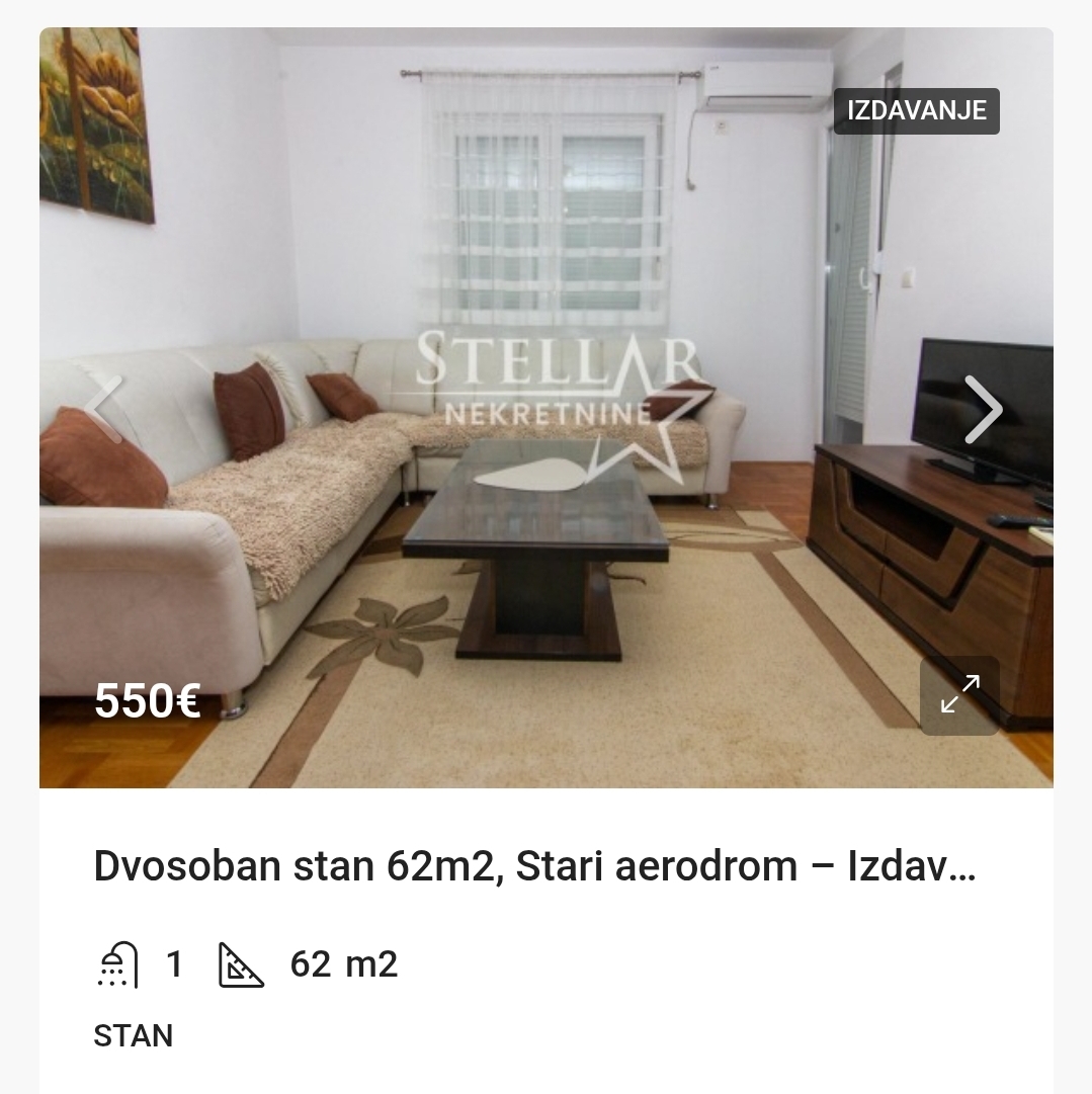 Two-room apartment 62m2, Stari aerodrome – For rent