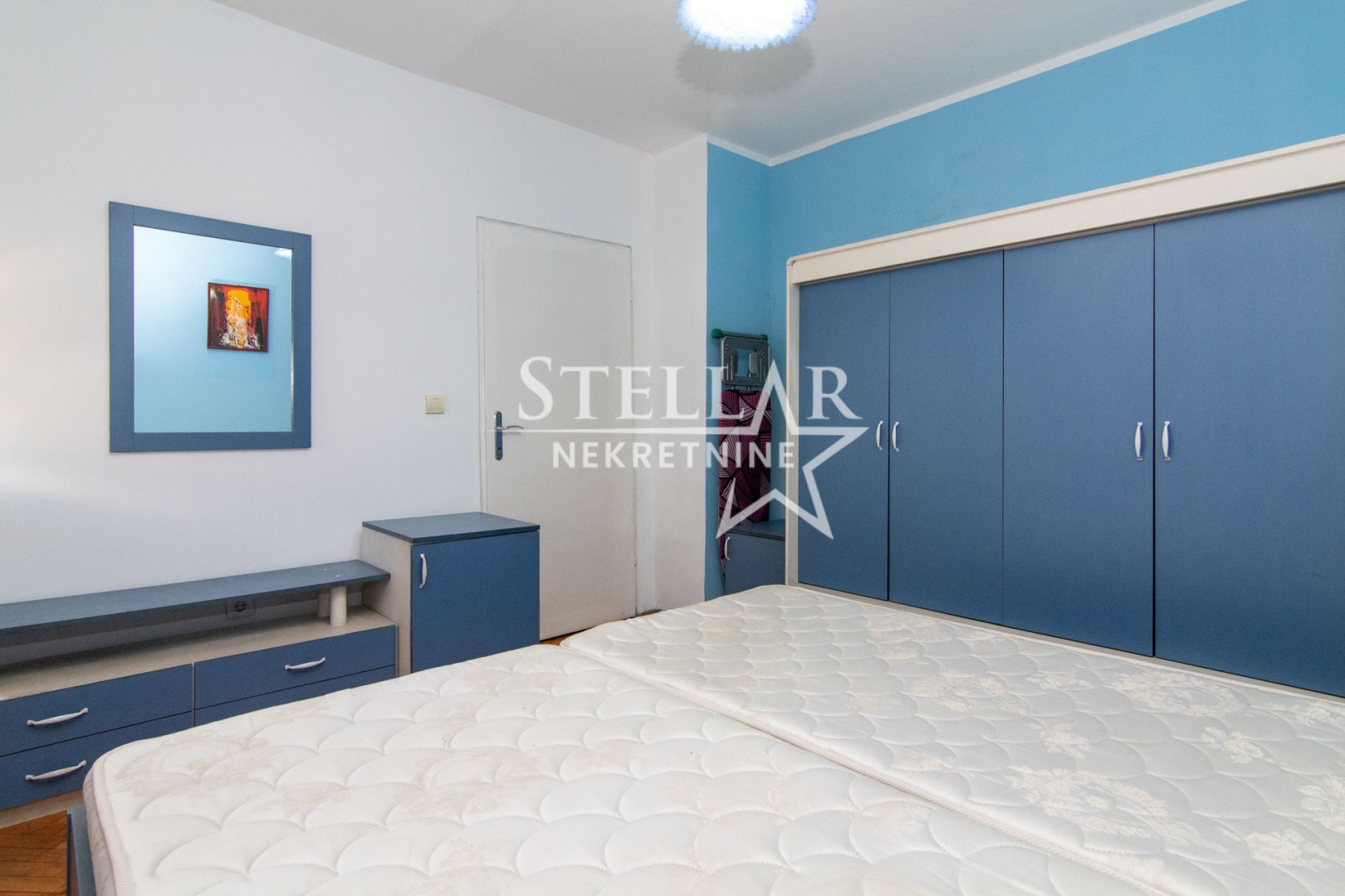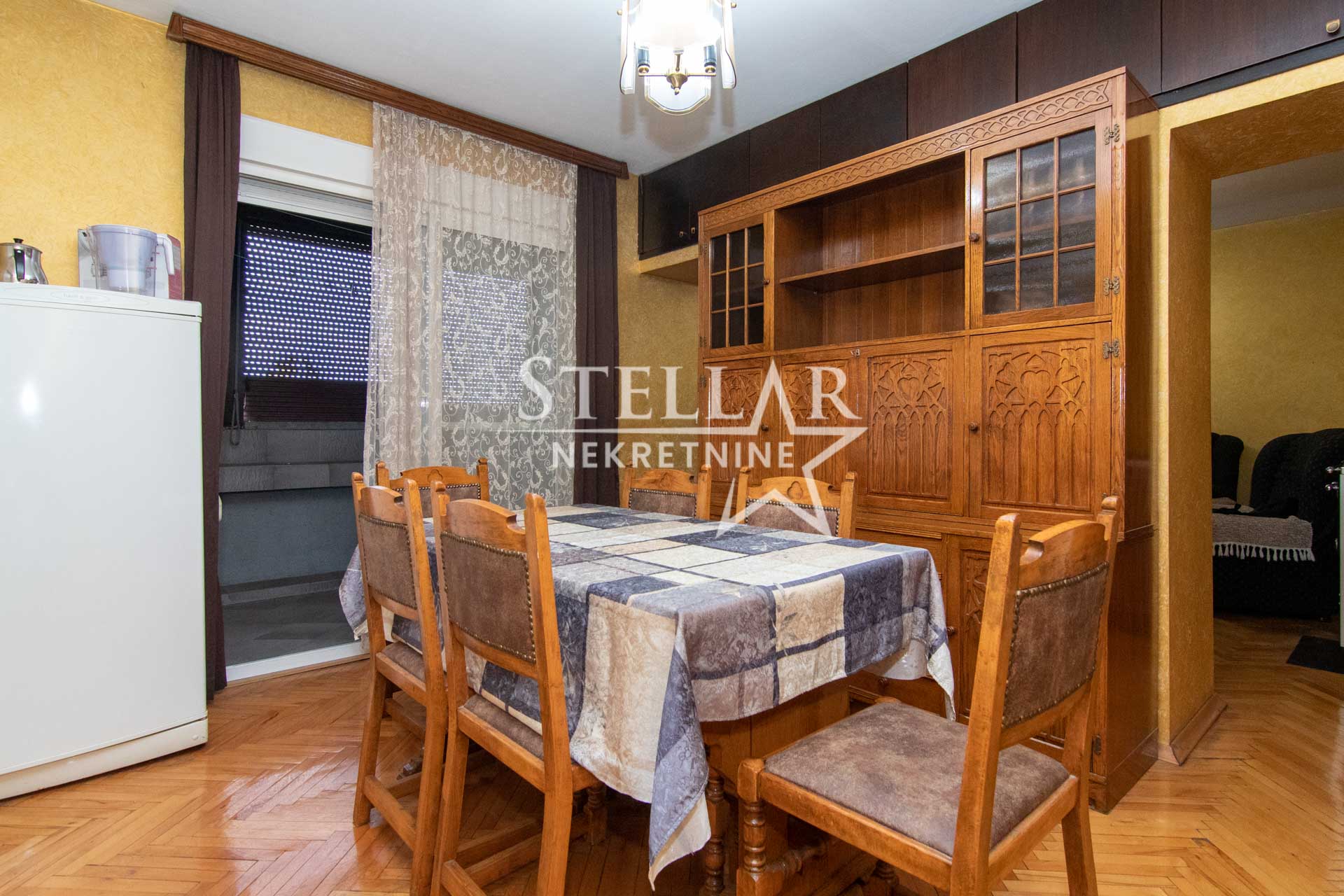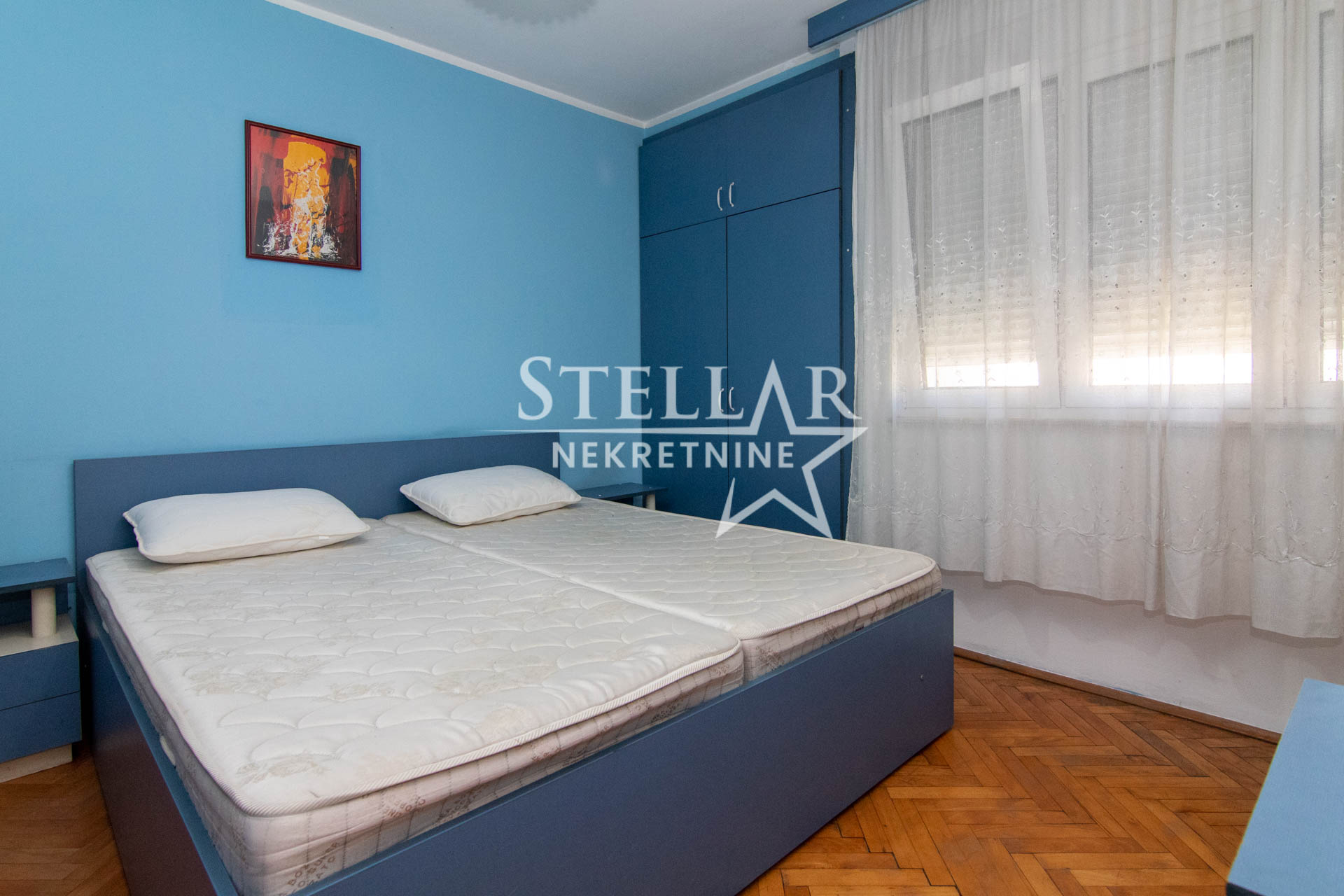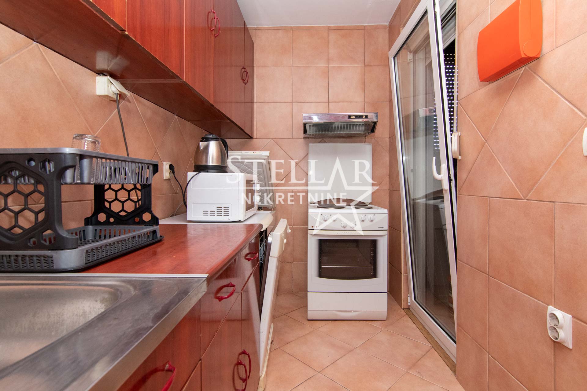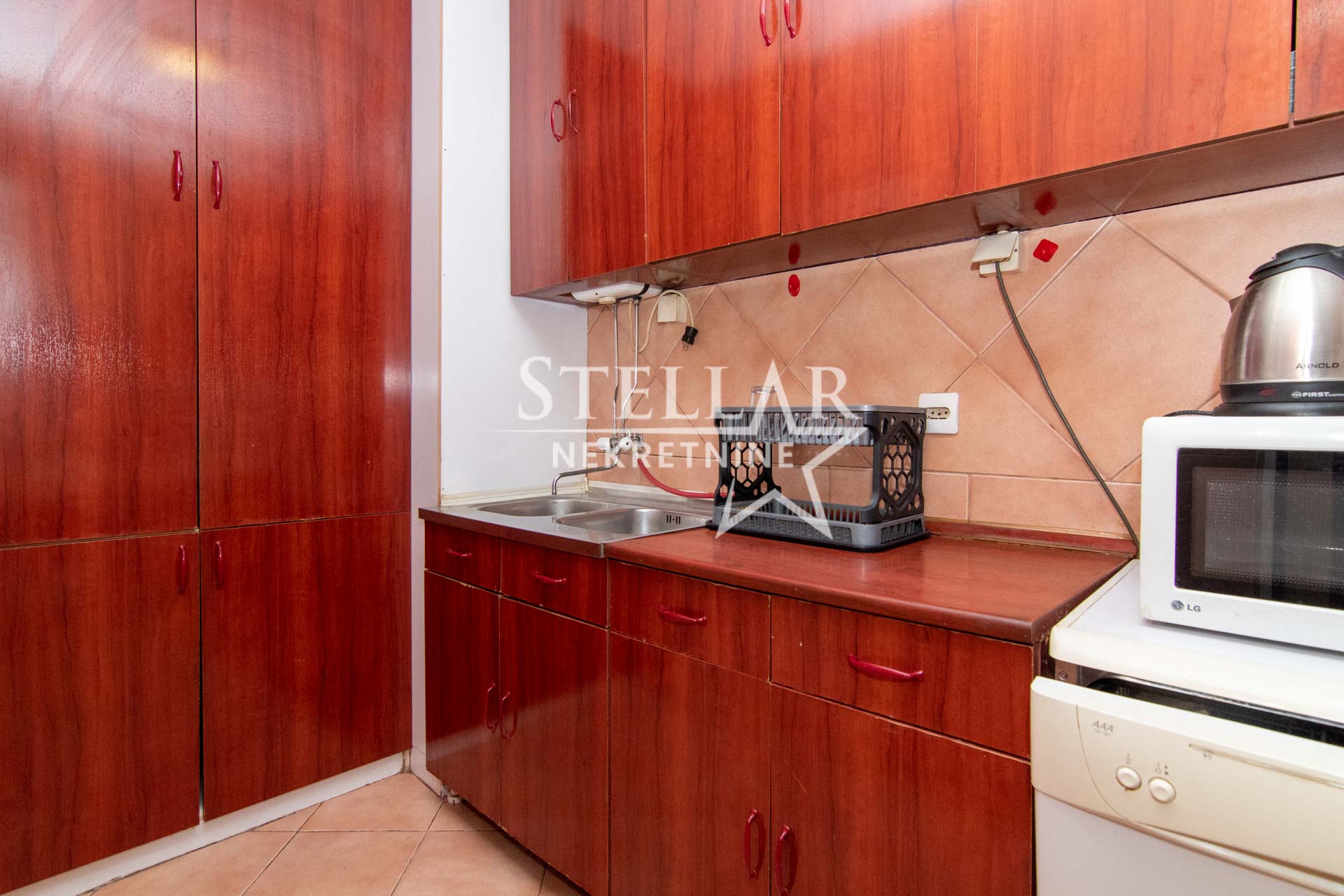 In the kitchen there is a freezer, a dishwasher, and a refrigerator is placed in the dining room. The building does not have an elevator and there is a large public parking lot in front of the building. The building is in Radosava Burića Street, near Vuk Karadžić Primary School.