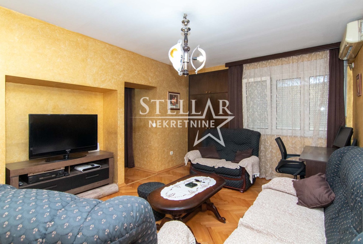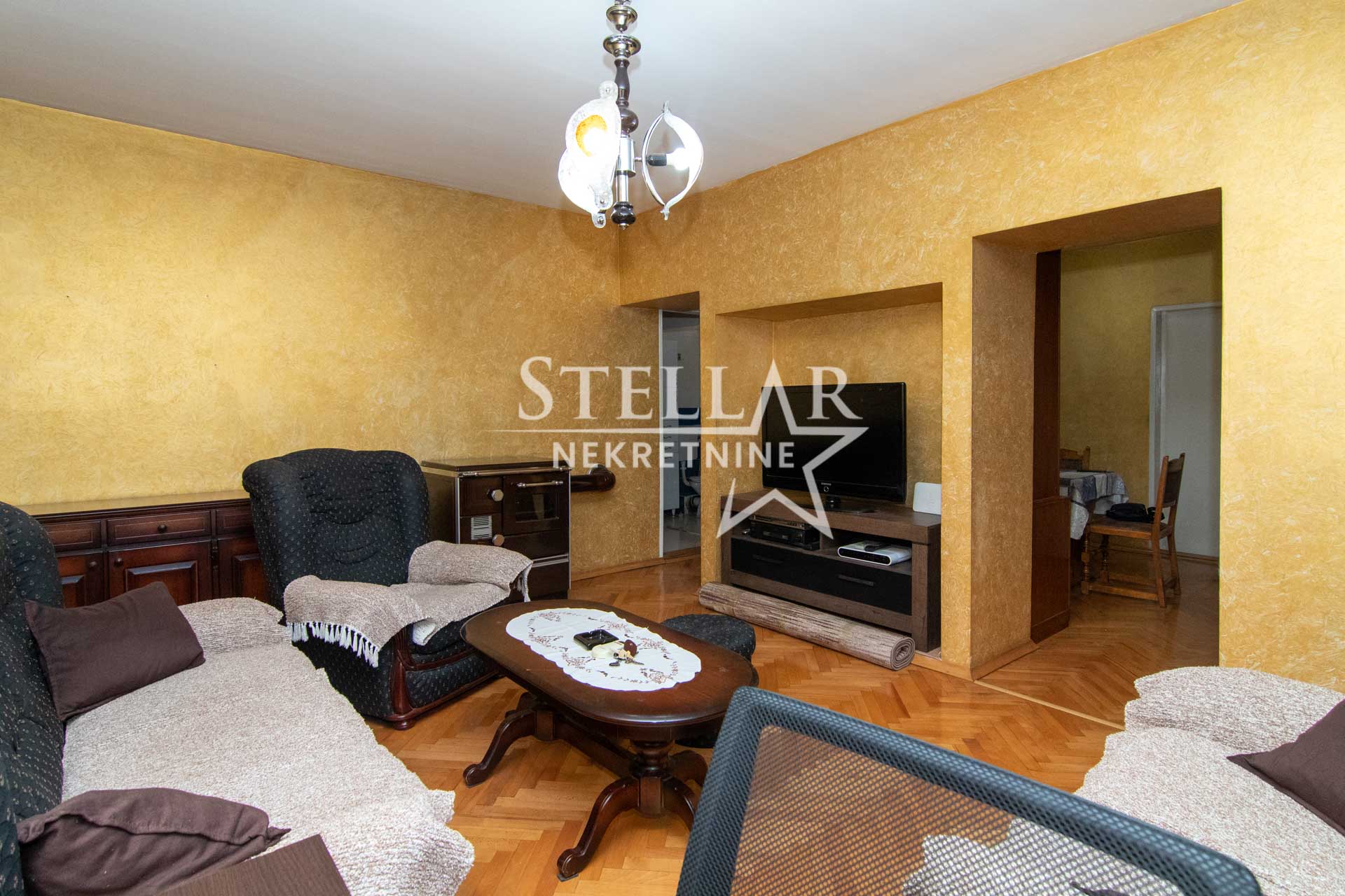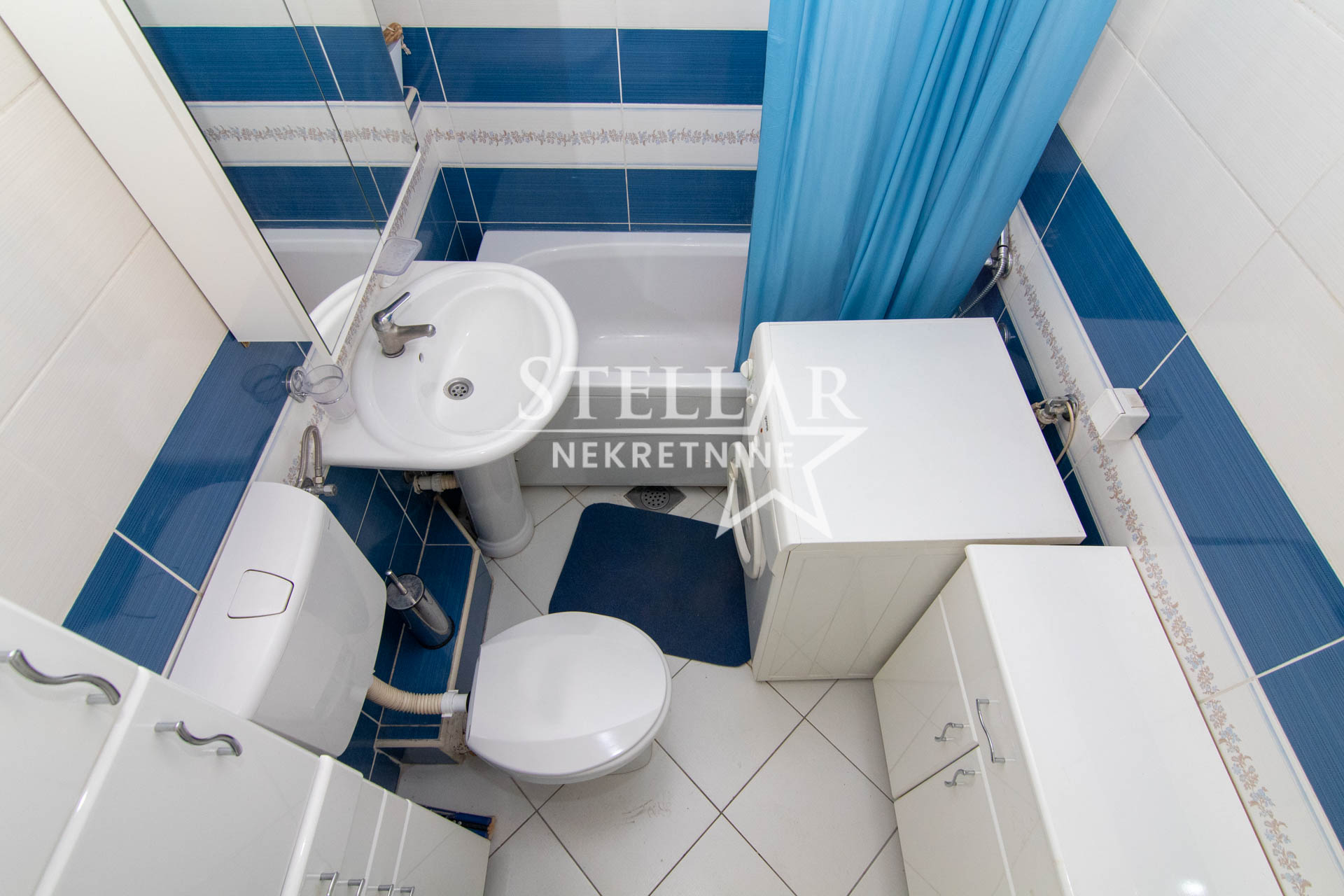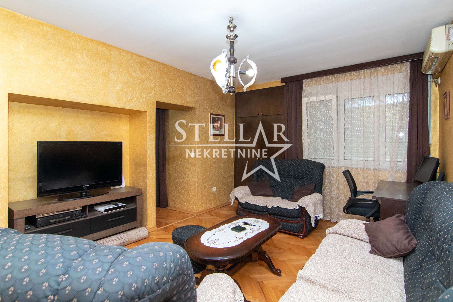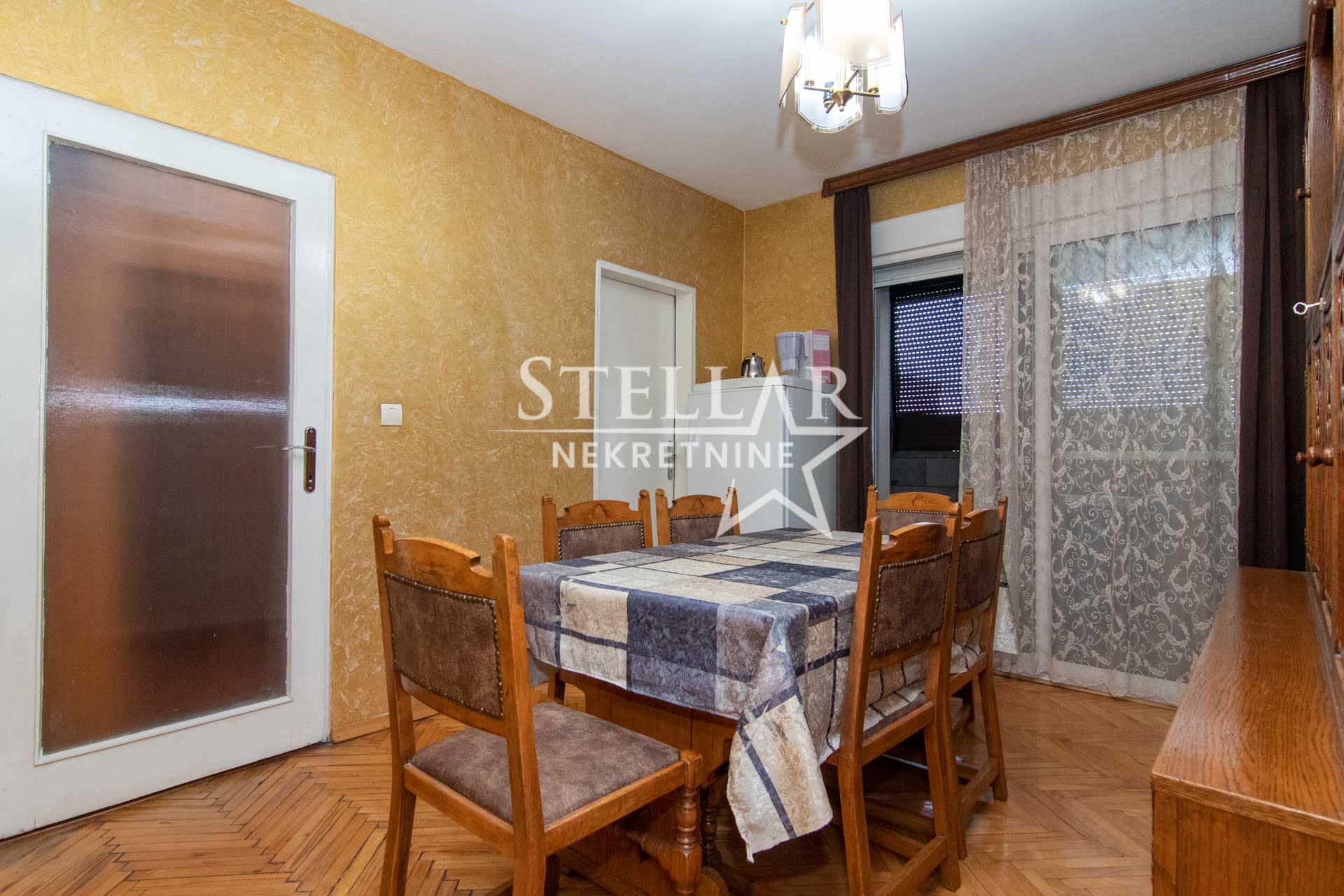 In the kitchen there is a freezer, a dishwasher, and a refrigerator is placed in the dining room. The building does not have an elevator and there is a large public parking lot in front of the building. The building is in Radosava Burića Street, near Vuk Karadžić Primary School.