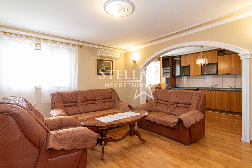 A beautifully furnished two-bedroom apartment is for rent on the ground floor of a private house in Masline. The apartment is 90m2 in size with large, spacious rooms, a hallway, a kitchen, and each room has natural light and ventilation, including the bathroom. Heating and cooling are electric, and the apartment has one air conditioner and one storage heater. The apartment also has a dishwasher, as well as washing and drying machines.