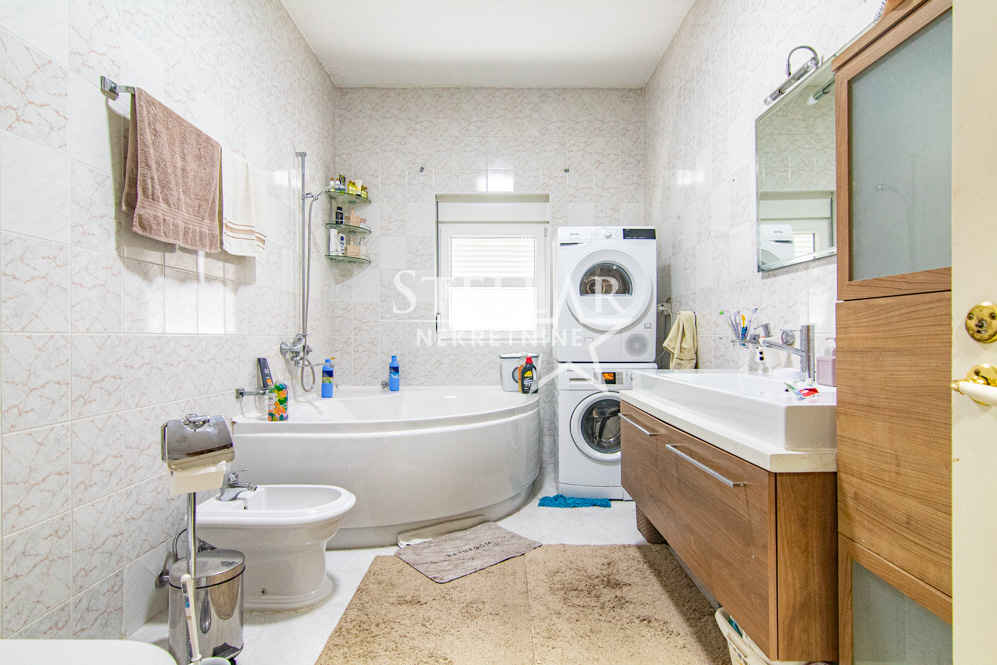 U prizemlju se nalaze dva kupatila – jedno sa kadom, drugo sa prostranom walk-in tuš kabinom. U većem kupatilu smještene su i mašine za pranje i sušenje veša. Gornji sprat nudi prostrani hol, tri multifunkcionalne sobe koje mogu služiti kao kancelarije ili spavaće sobe, dva toaleta i dodatnu kuhinju.
