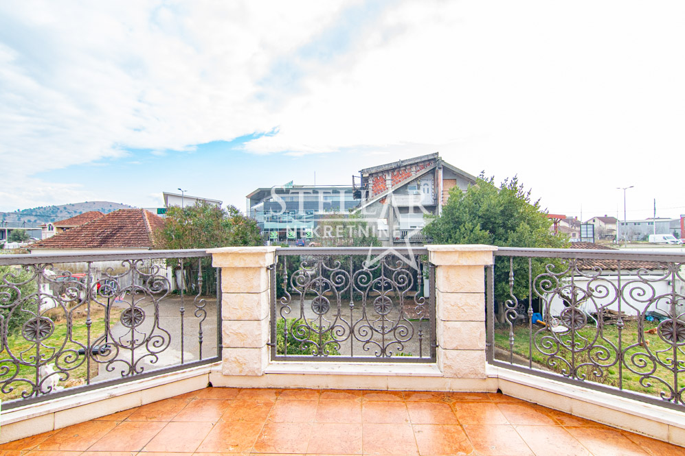 Izdaje se lijepo opremljena kuća u Donjoj Gorici, idealna za udoban porodični život ili poslovne svrhe. Kuća se prostire na dvije etaže i povezana je unutrašnjim i spoljašnjim stepenicama, pri čemu je gornji sprat registrovan kao poslovni prostor.