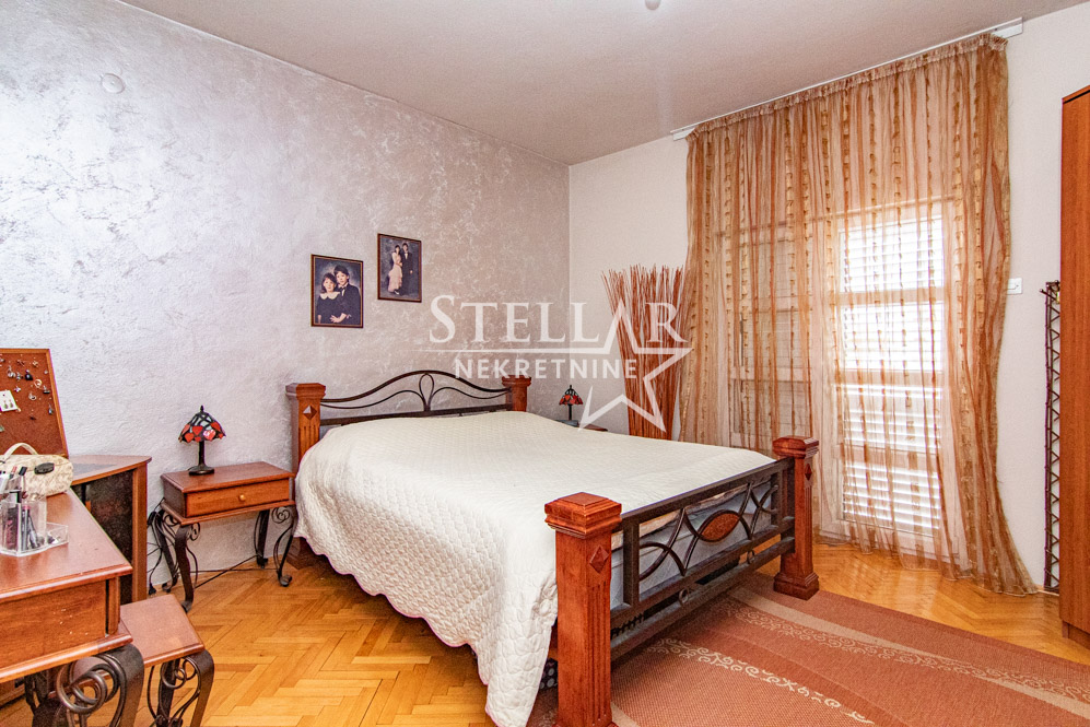 Dvorište je prostrano površine 1800m2, ograđeno i pruža potpunu privatnost. Iza kuće se nalazi bazen sa ljetnjikovcem i roštiljem, savršenim za uživanje na otvorenom. Ispred kuće je natkriveni parking. Postoji mogućnost parcijalnog iznajmljivanja kuće, odnosno jednog ili drugog sprata, u zavisnosti od preferencija klijenta.