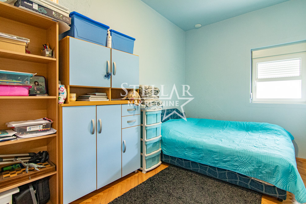 Sa površinom većom od 400m², ova nekretnina nudi vrhunsku opremljenost i sve što je neophodno za komforan boravak. Sistem grijanja je centralni i omogućava korišćenje struje, drva i peleta, dok su 7 klima uređaja raspoređena u ključnim prostorijama: jedna u ulaznom hodniku, jedna u trpezariji, dvije u dnevnom boravku, jedna u hodniku spavaćeg dijela, i dvije na spratu. Potpuno opremljena kuhinja sadrži frižider, mašinu za suđe i zamrzivač. Iza kuhinje je i prostorija koja služi kao ostava.