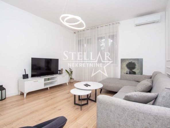 Na ulazu je veliki ulazni hol. Iz hola se ulazi u dnevni boravak, trpezariju i na kraju kuhinju koja ima dvoje vrata. U kuhinju se može ući kroz trpezariju ili hol. U dnevnoj sobi je nova ugaona garnitura, fotelja, TV od 65 inča i klima 24, inverter.