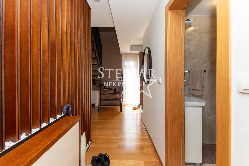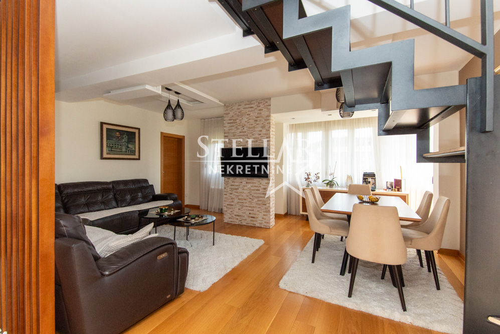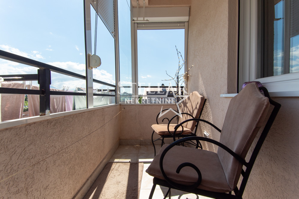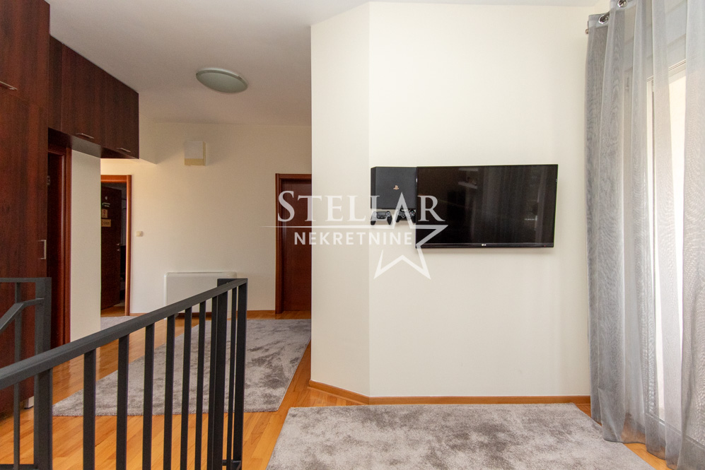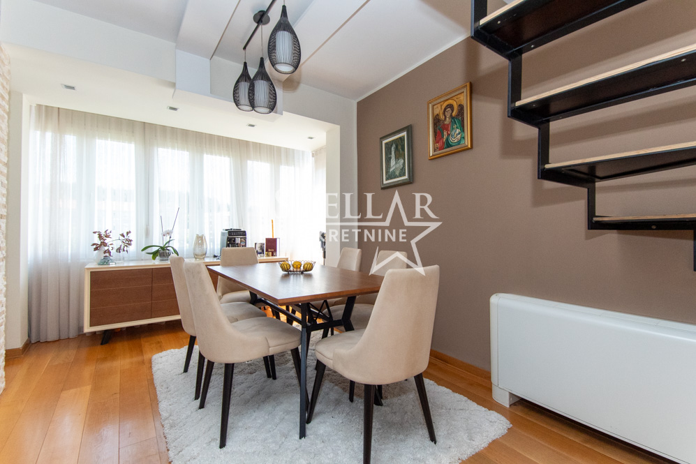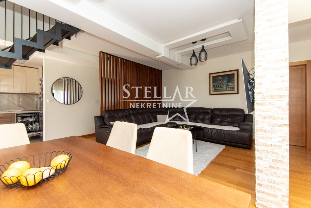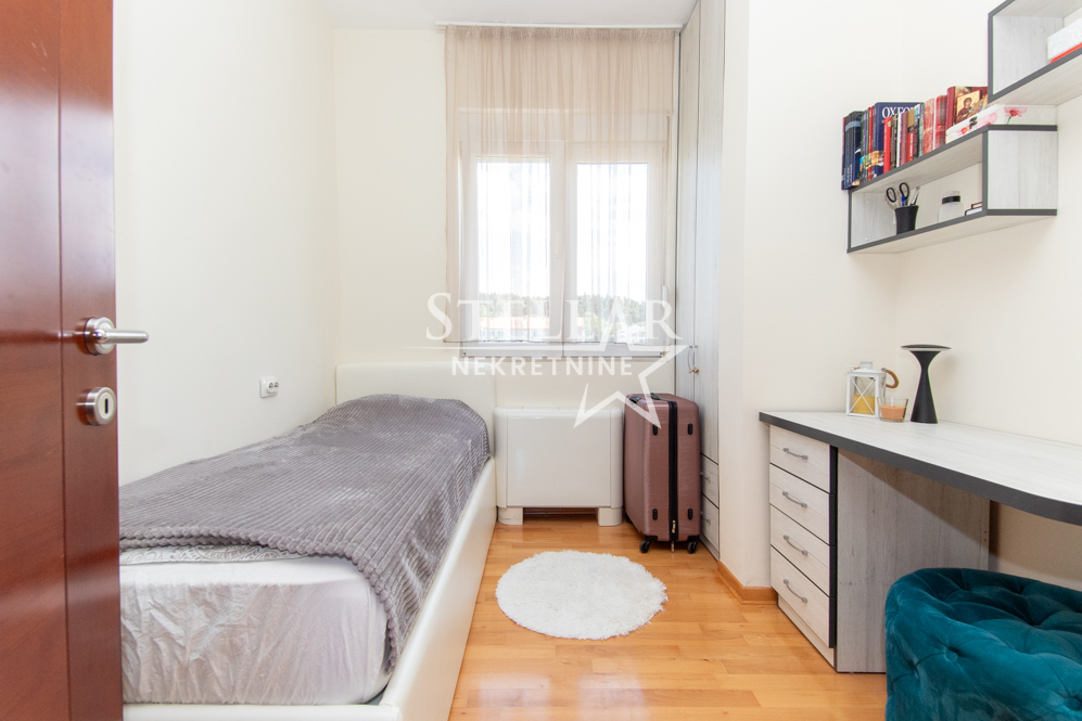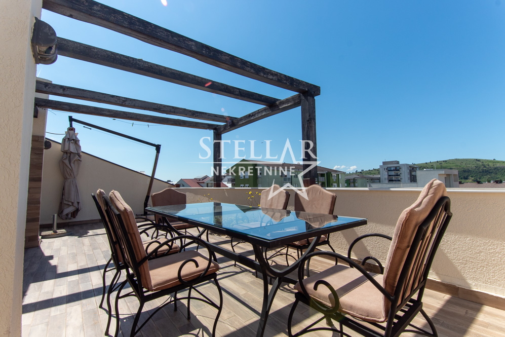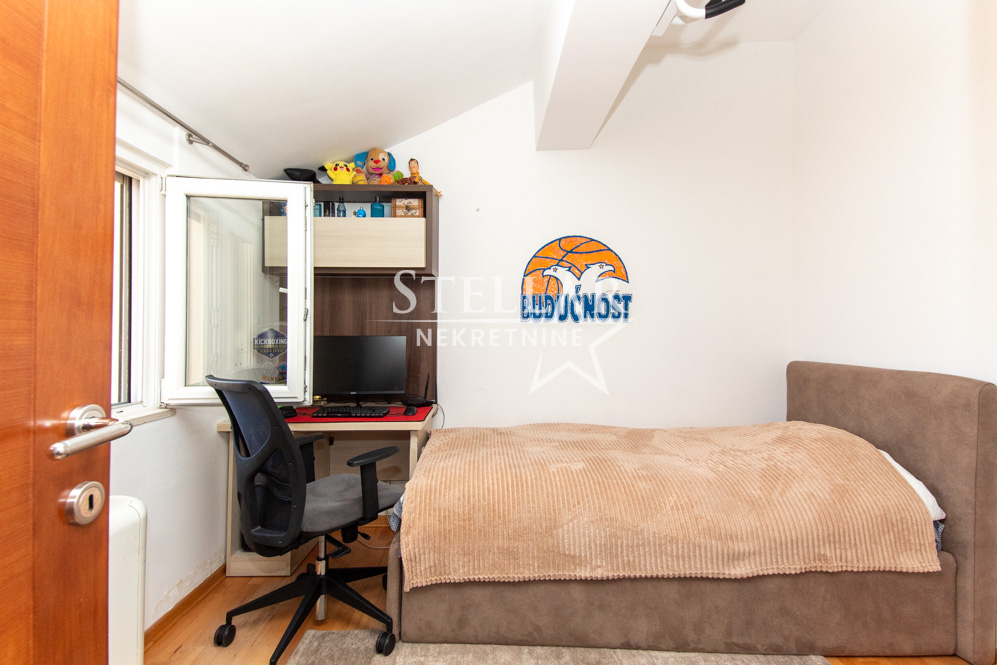 Prodaje se četvorosoban stan na Zabjelu. Stan se nalazi na 3. Spratu u zgradi bez lifta. Smješten je na dva nivoa povezana unutrašnjim stepenicama. Luksuzno je opremljen i takav se prodaje. Ima dva kupatila i vešeraj, ima dva balkona koja su različitih tipa, jedan prostran drugi pruža privatnost. Može se reći, sve u jednom paketu (stanu).