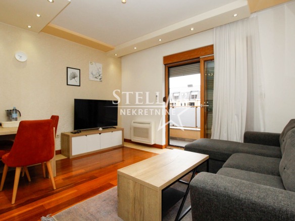 Strukturu stana čine dnevni boravak sa kuhinjom i trpezarijom, dvije spavaće sobe, kupatilo i balkon sjeverne orijentacije. Stan je u potpunosti namješten i spreman za useljenje.