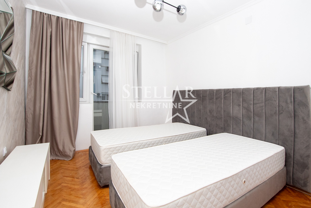 Izdaje se dvosoban stan u naselju Preko Morače. Površina stana je 70m2. Nalazi se na drugom spratu u zgradi bez lifta. Stan ima balkone sa dvije strane sa sjeverne i južne. Lijepo je opremljen, sve što je potrebno nalazi se u stanu.