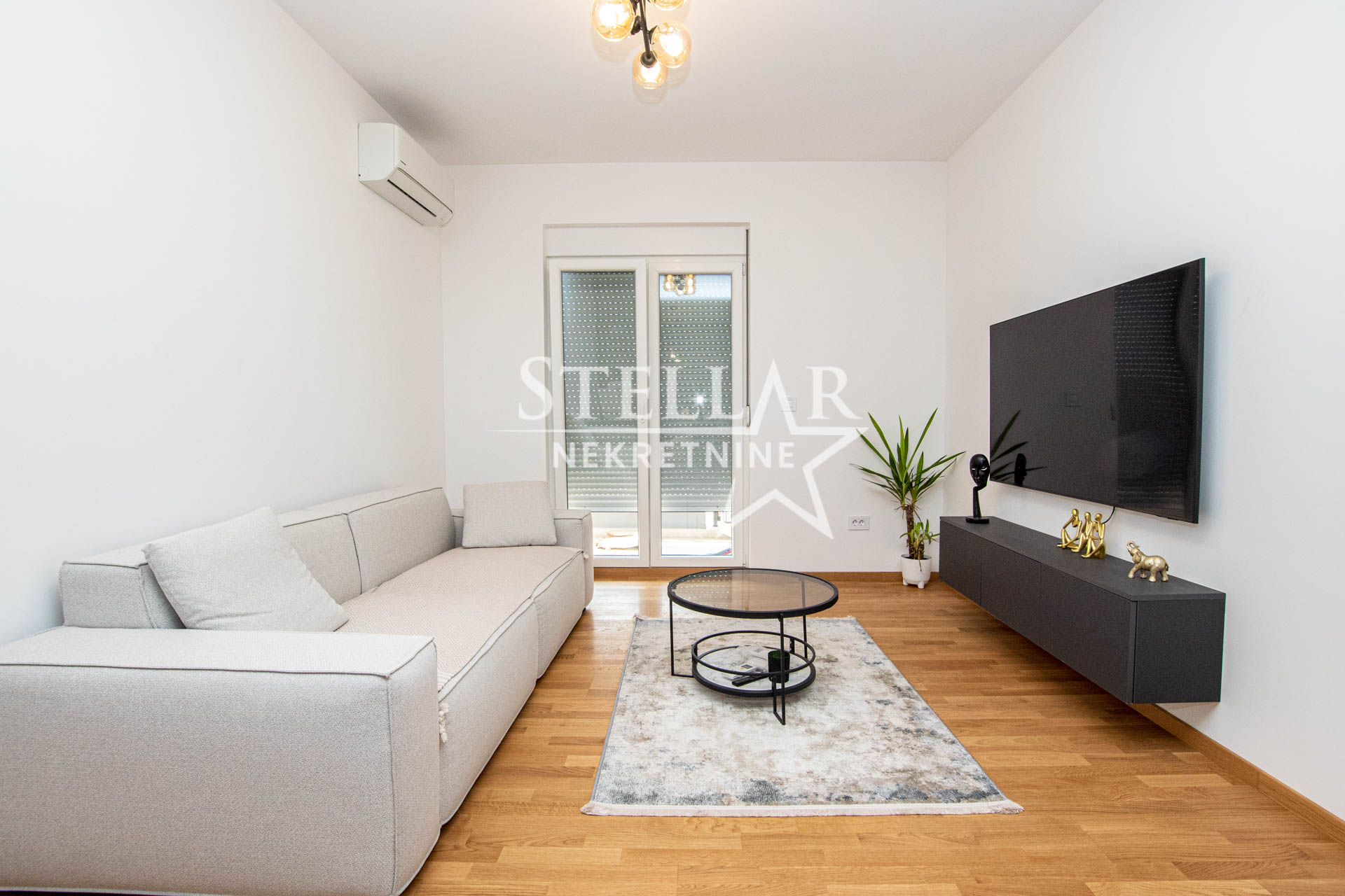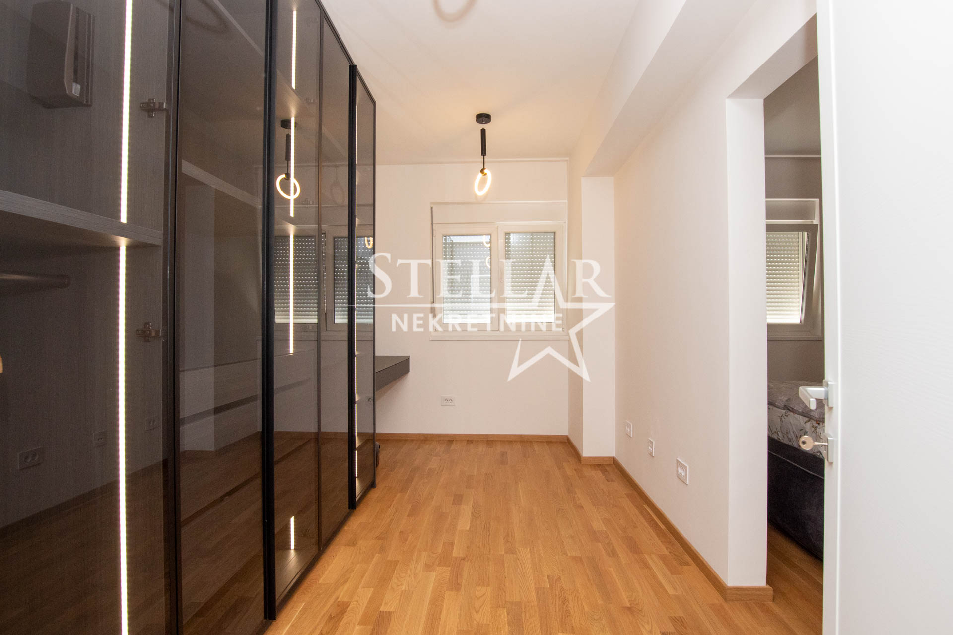 Izdaje se lijepo opremljen dvosoban stan na Starom aerodromu. Stan je na 4.spratu u novoj Bemax zgradi u ulici Josipa Broza Tita. Površina stana je 70m2, a balkon stana je južne orijentacije. Stan je u potpunosti opremjen, osim jedne spavaće sobe koja je zamišljena kao garderober. Sav namještaj i elementi u stanu su potpuno novi i veoma kvalitetni.