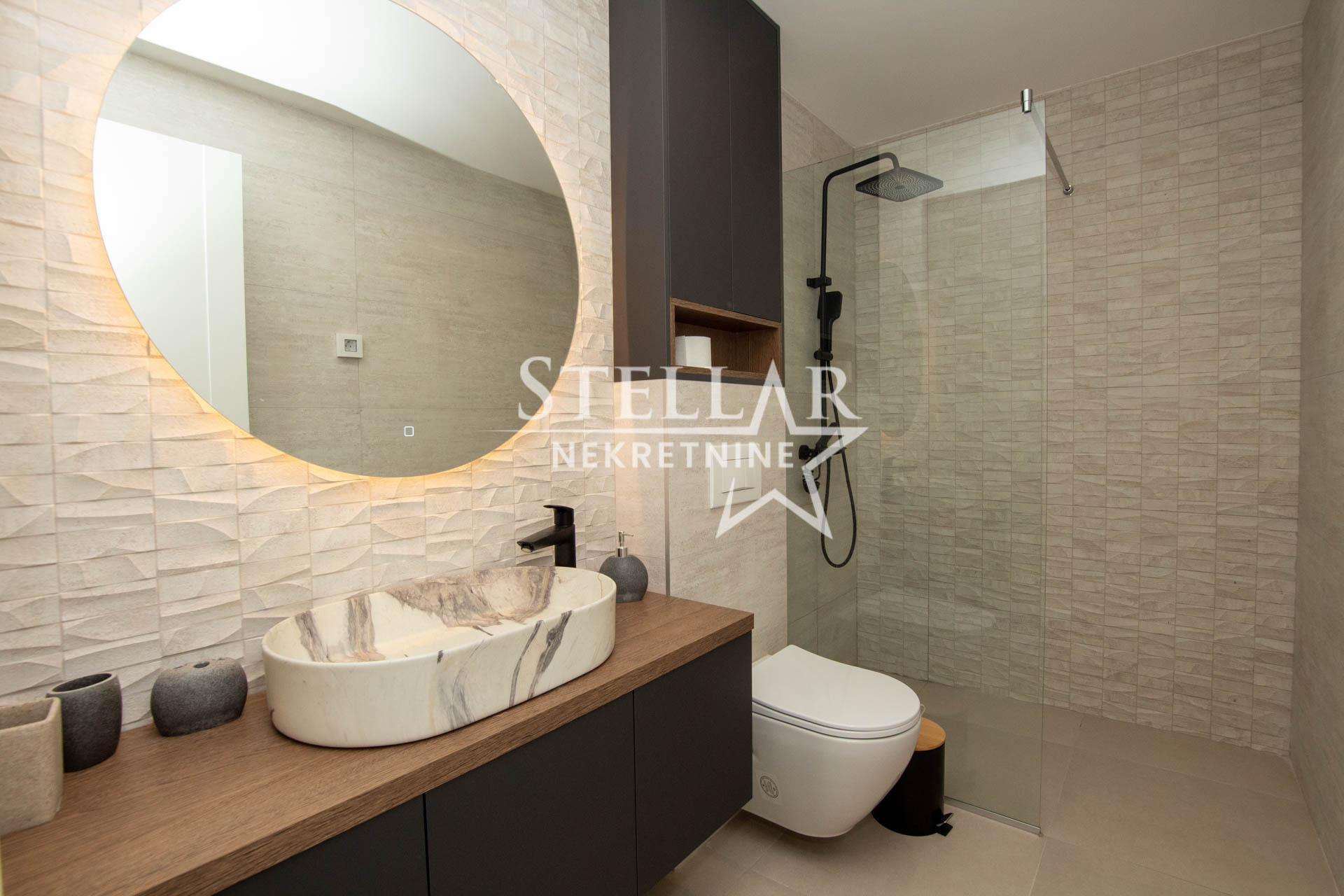 Stan ima po 1 klima uređaj u dnevnoj i spavaćoj sobi. Kuhinja ima mašinu za suđe, a osim lijepo sređenog kupatila, stan ima i toalet koji trenutno služi kao vešeraj.