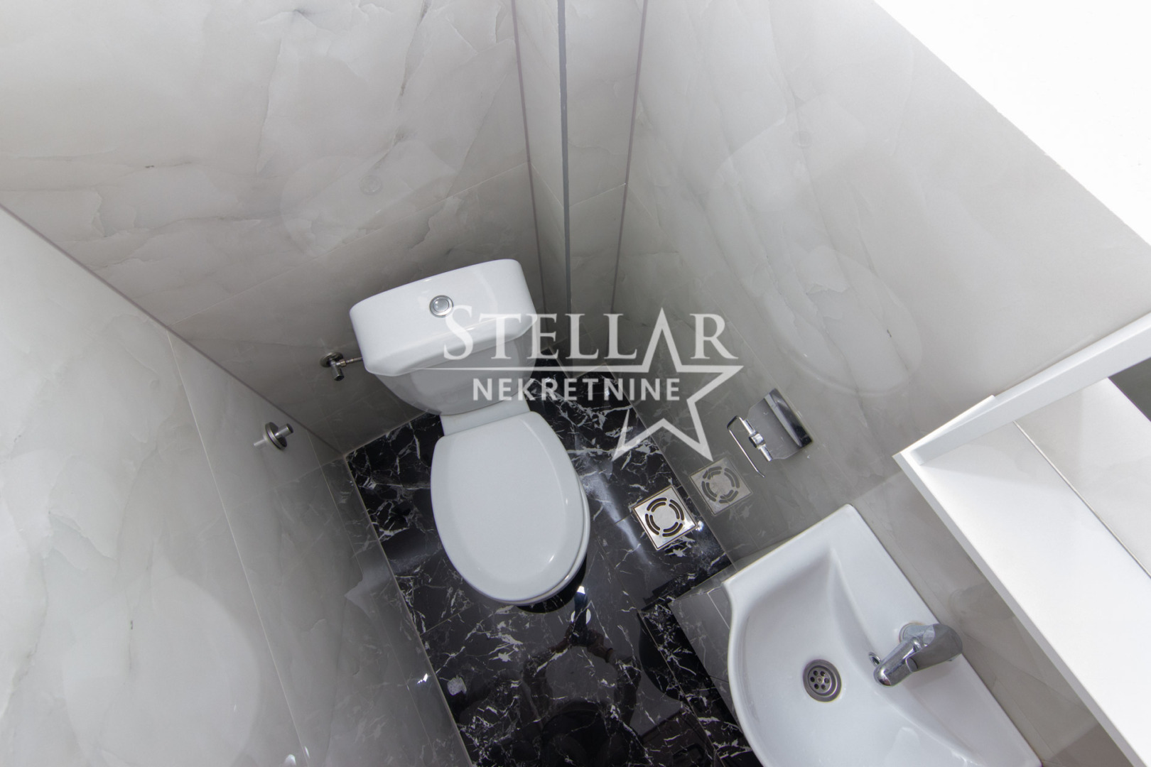 Stan se nalazi u mirnom djelu grada na odličnoj lokaciji. U blizini je Big Fashion tržnog centra, a tu su i ostale prodavnice, restorani, butici i teretane. Kuća nema mjesto za parking, ali preko puta nje ima dosta mjesta za isto.