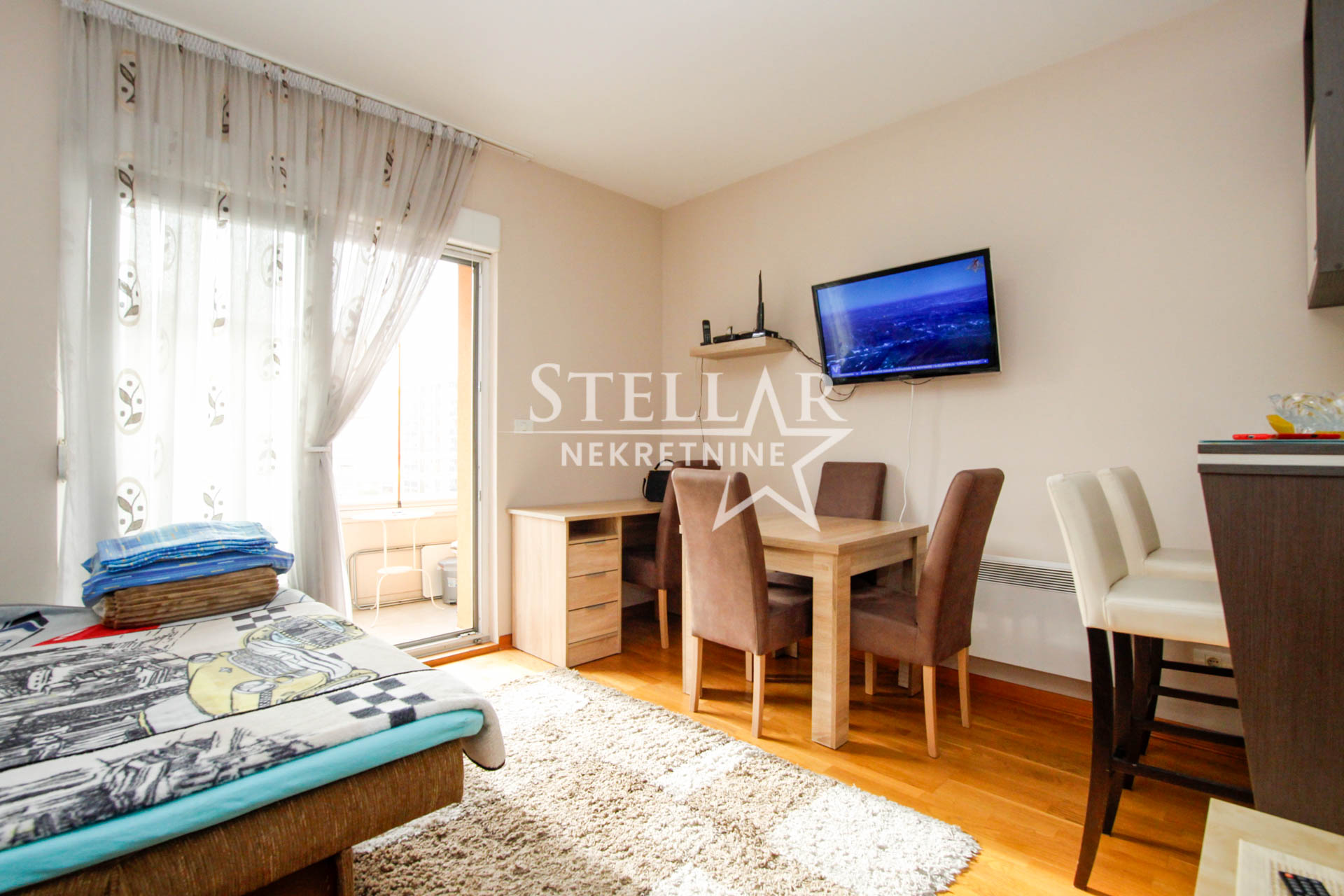 Stan se nalazi na četvrtom spratu stambene zgrade i ima površinu od 30 m2. U potpunosti je opremljen i sadrži sve što je potrebno za udoban svakodnevni život.