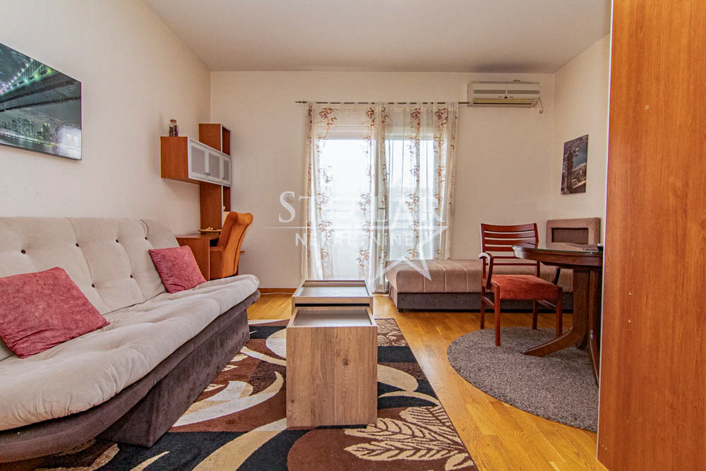 Izdaje se namještena garsonjera na petom spratu stambene zgrade u Siti kvartu.