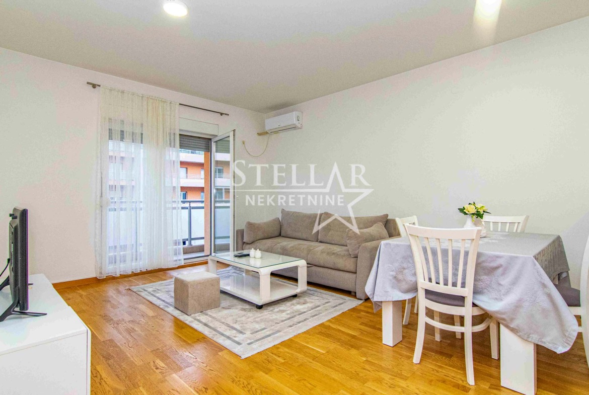 Izdaje se lijepo opremljen jednosoban stan na 3. spratu stambene zgrade u Siti kvartu. Stan je komforan i udoban. Dnevna i spavaća soba imaju izlaz na balkon južne orijentacije koji je dugačak 6 metara. U kupatilu je kada i veš mašina. Klima je inverter. Zgrada ima lift a ispred zgrade je javni parking.