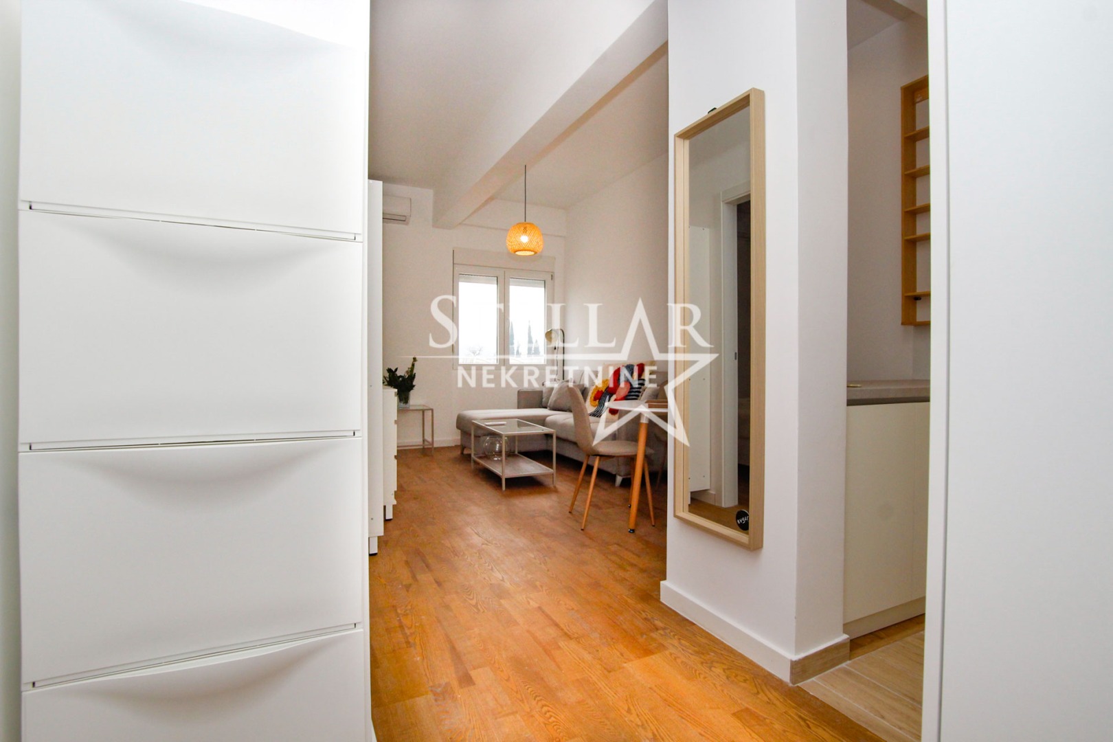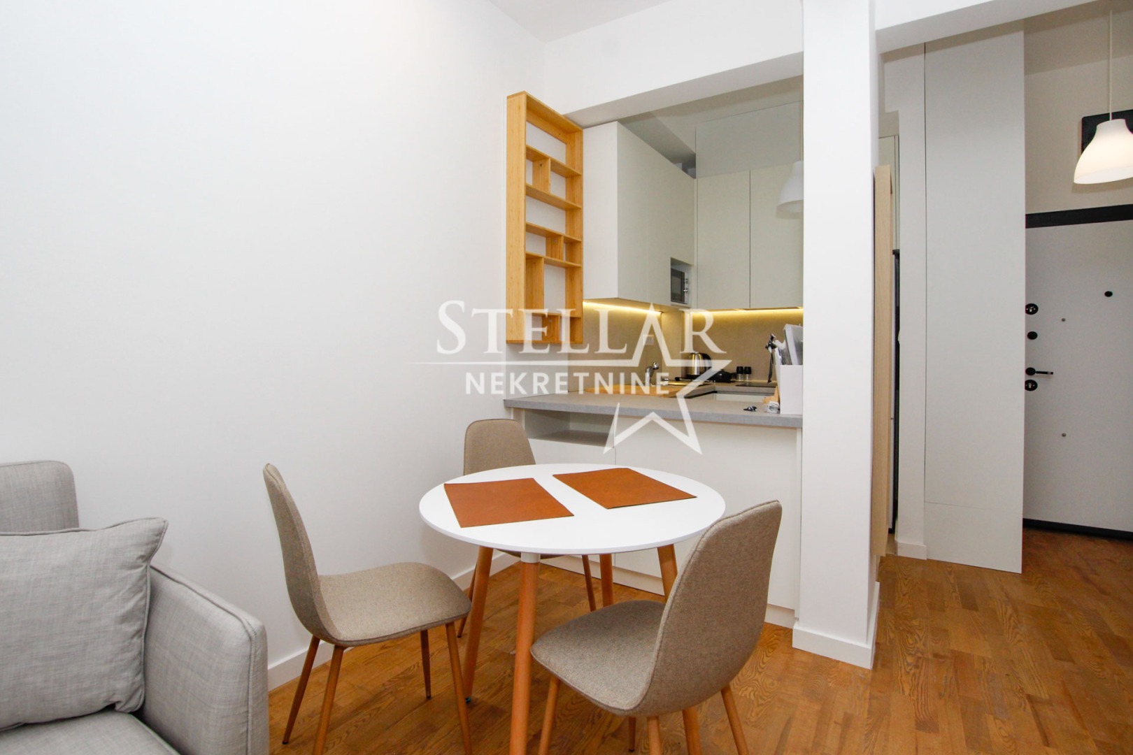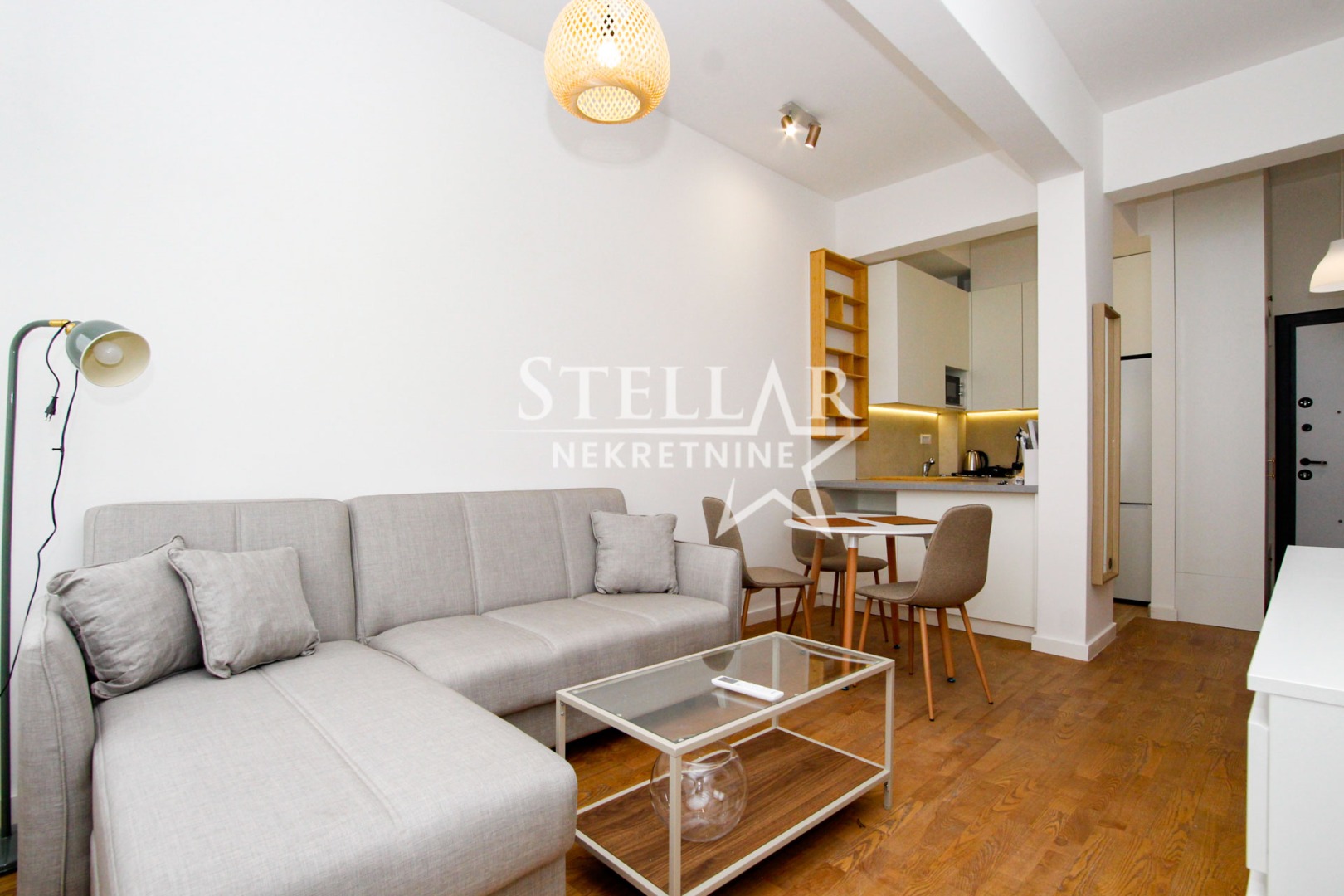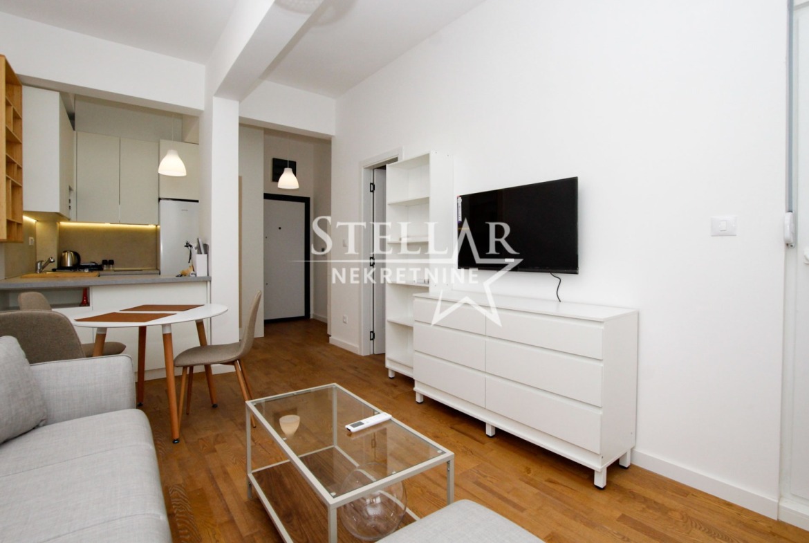 Struktura stana obuhvata dnevnu sobu sa kuhinjom i trpezarijom, jednu spavaću sobu i kupatilo. Stan se izdaje u potpunosti opremljen i spreman za prvo useljenje.