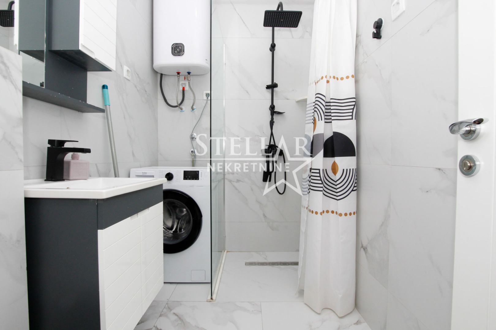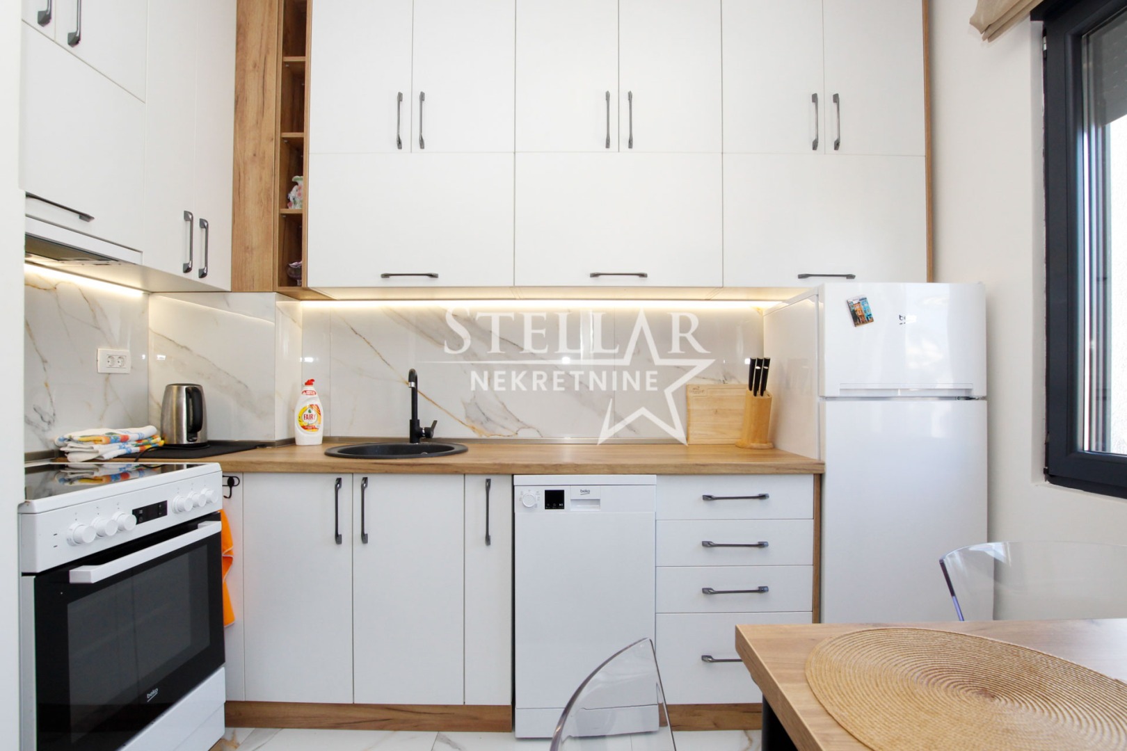 Strukturu stana čine dnevni boravak sa kuhinjom i trpezarijom, spavaća soba, kupatilo i balkon zapadne orijentacije. Stan sadrži sve što je potrebno za udoban svakodnevni život.