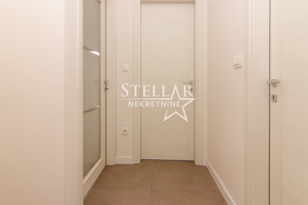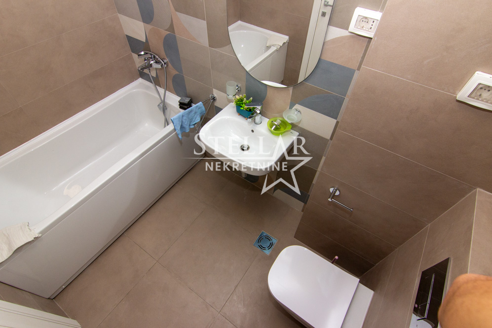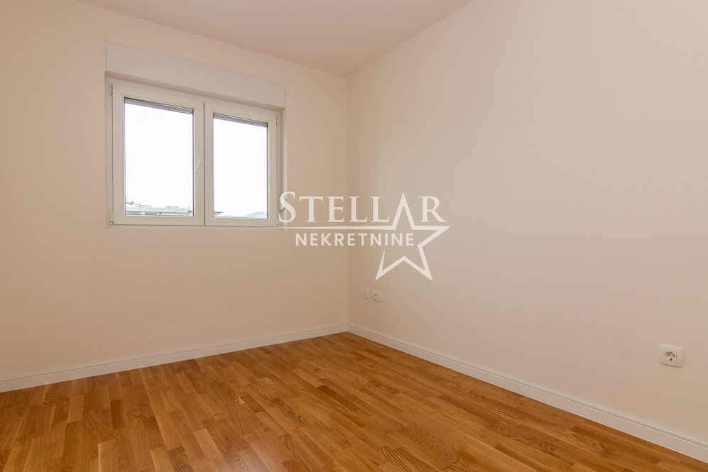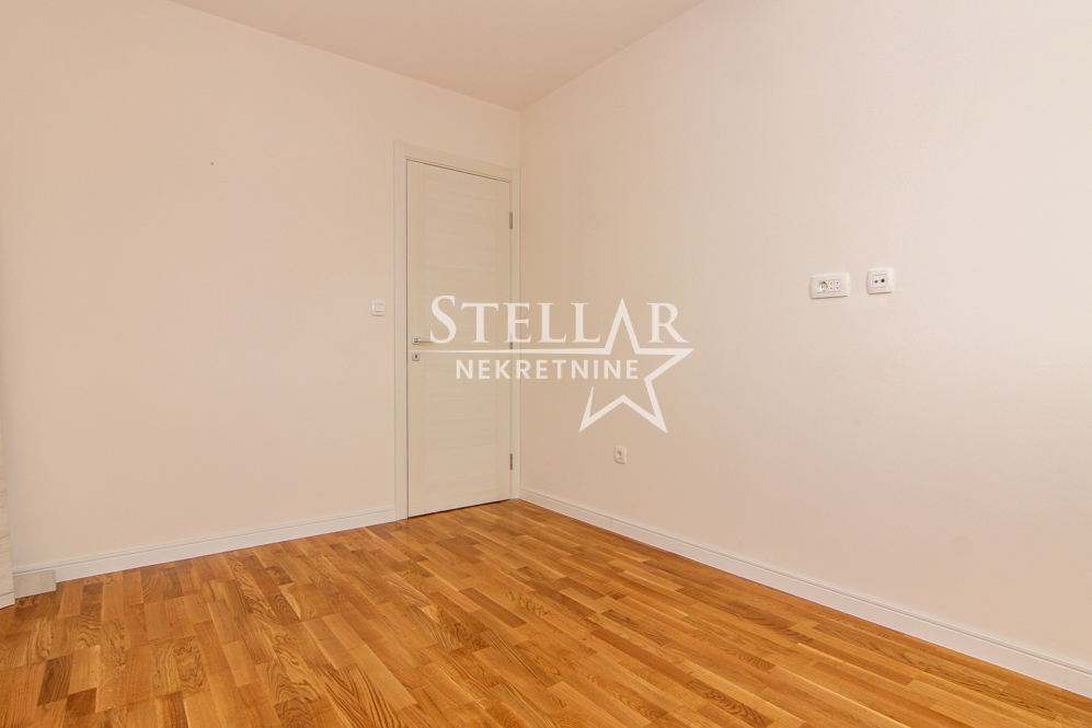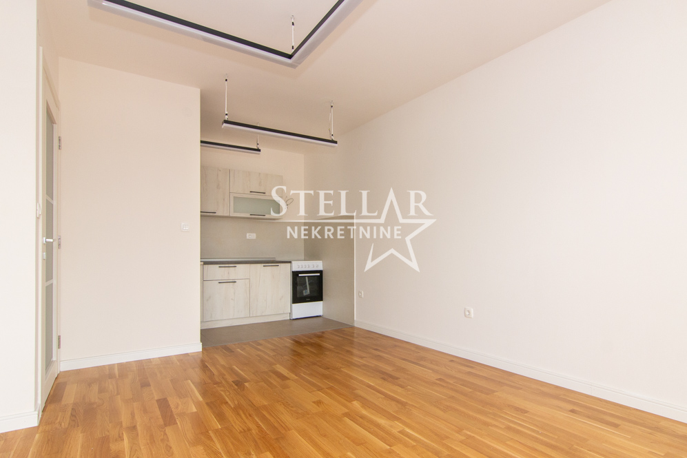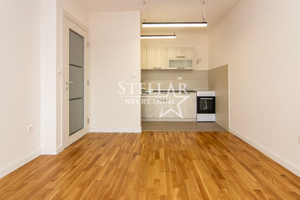 Izdaje se nov prazan jednosoban stan 40m2. Stan se nalazi na sedmom spratu u zgradi sa dva lifta. Orijentacija stana je jugo-zapadna, što mu omogućava da ima puno prirodne svijetlosti tokom cijelog dana. Dnevna soba je klimatizovana, u kupatilu se nalazi tuš kabina.