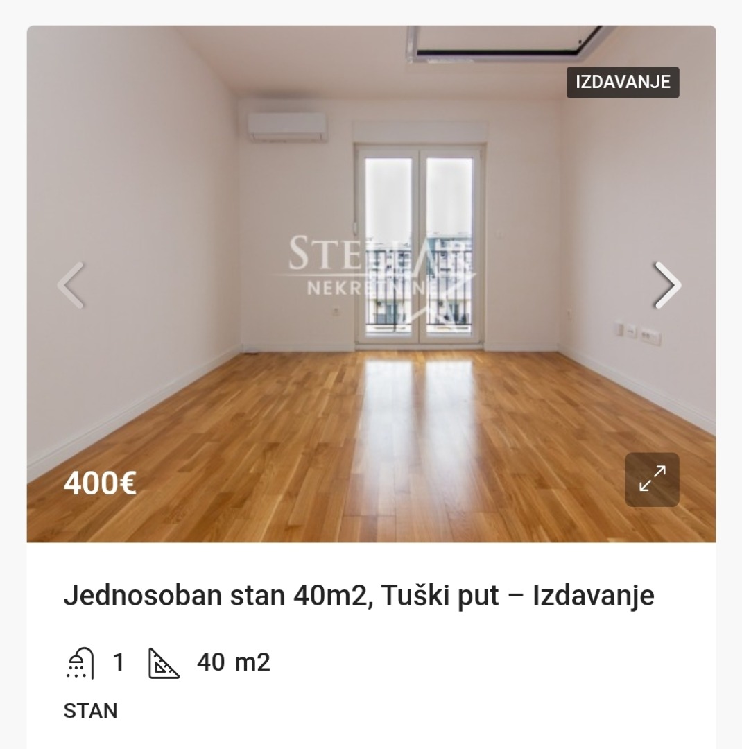 Jednosoban stan 40m2, Tuški put – Izdavanje