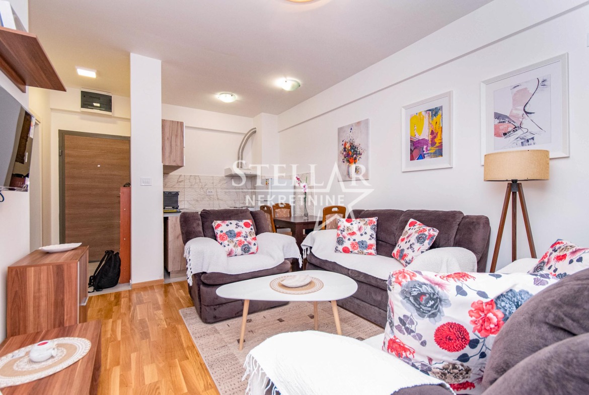Stan se nalazi na trećem spratu stambene zgrade i ima površinu od 40 m2. Zgrada je novije gradnje i nalazi se u novoizgrađenom i uređenom kvartu, sa prijatnim okruženjem za stanovanje.