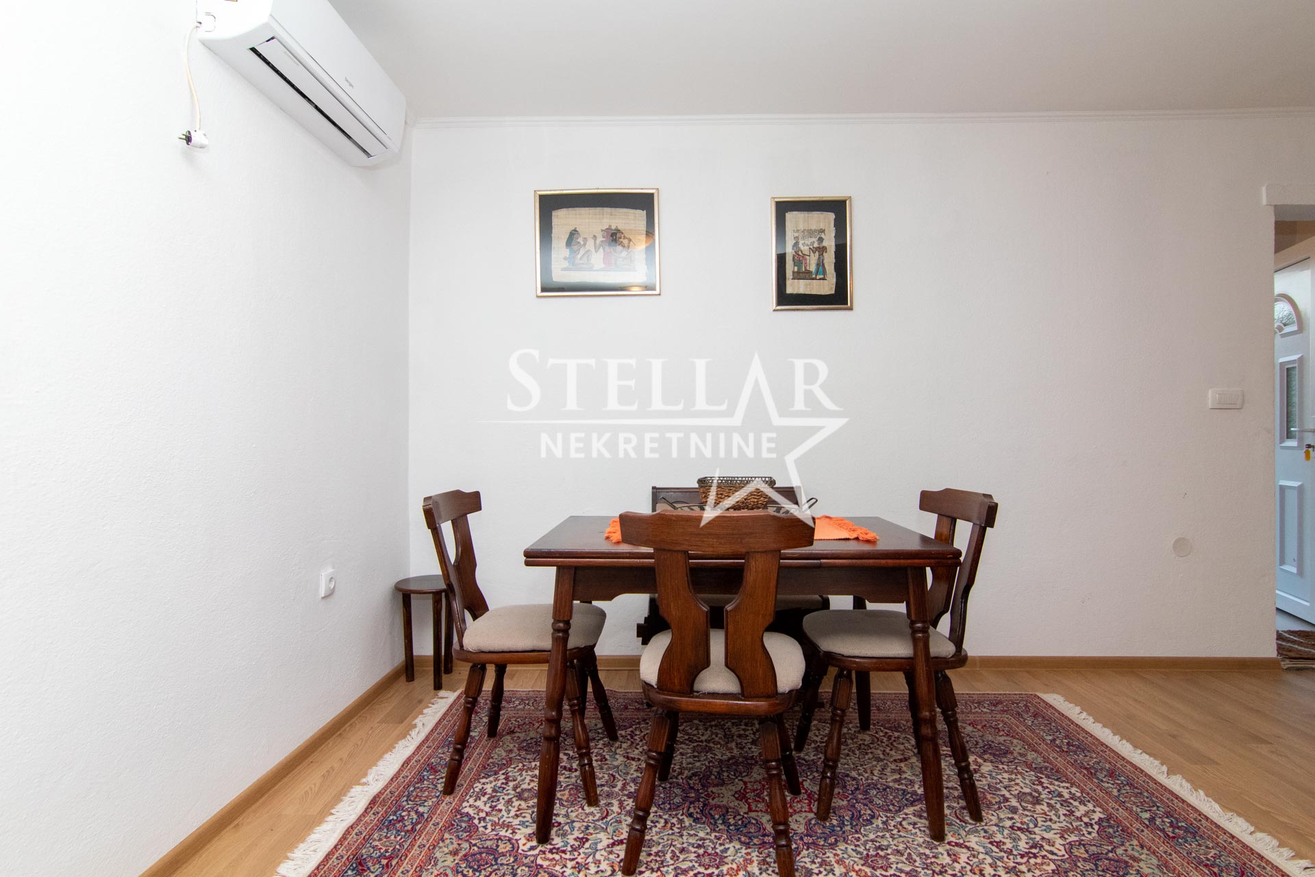 U spavaćoj sobi je francuski ležaj, u dnevnoj sobi je ugaona garnitura, TV, Bergen klima uređaj. U kuhinji je veliki frižider. Svaka prostorija je dobro osvijetljena dnevnom svjetlošću. U kupatilu je veš mašina i tuš kabina.