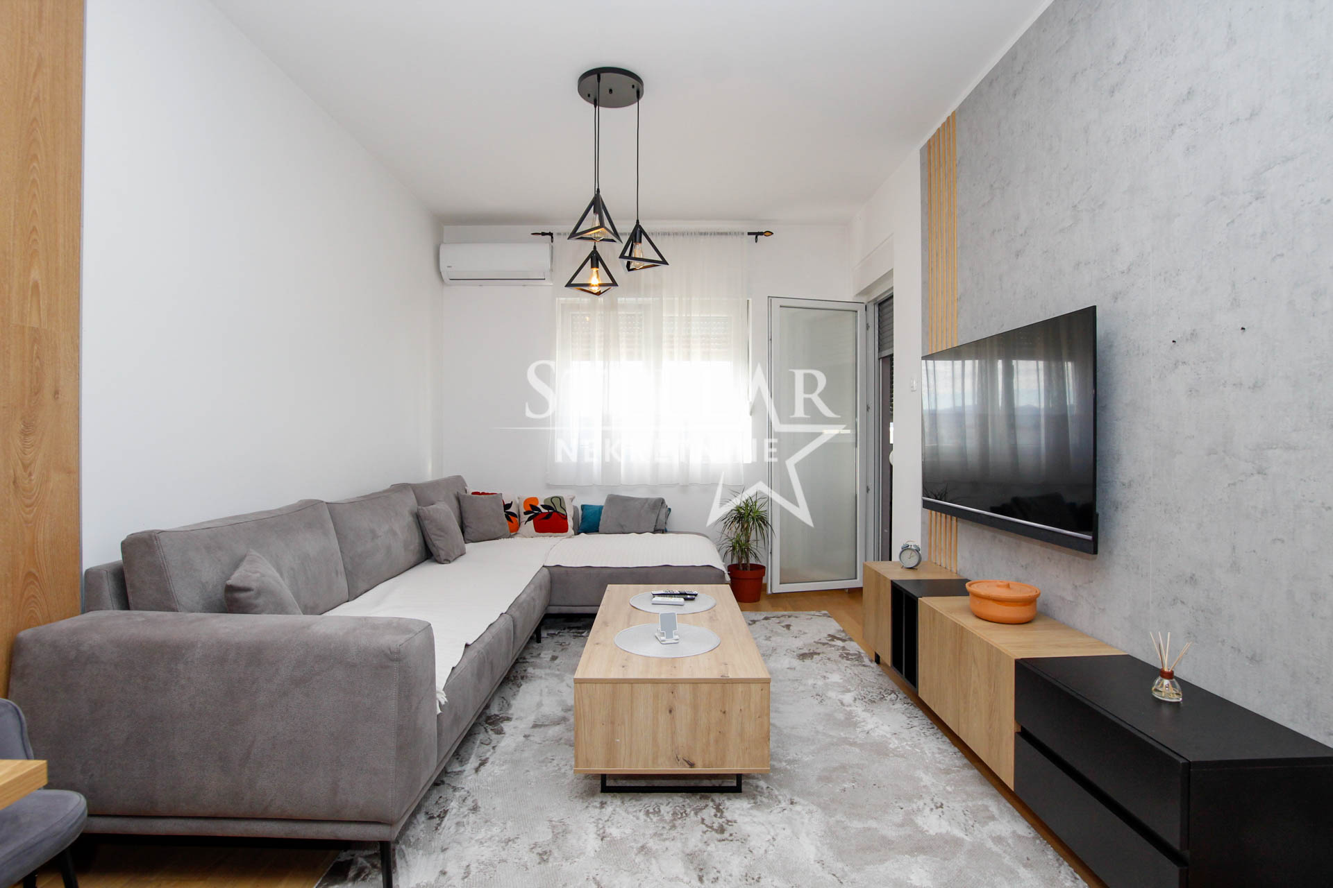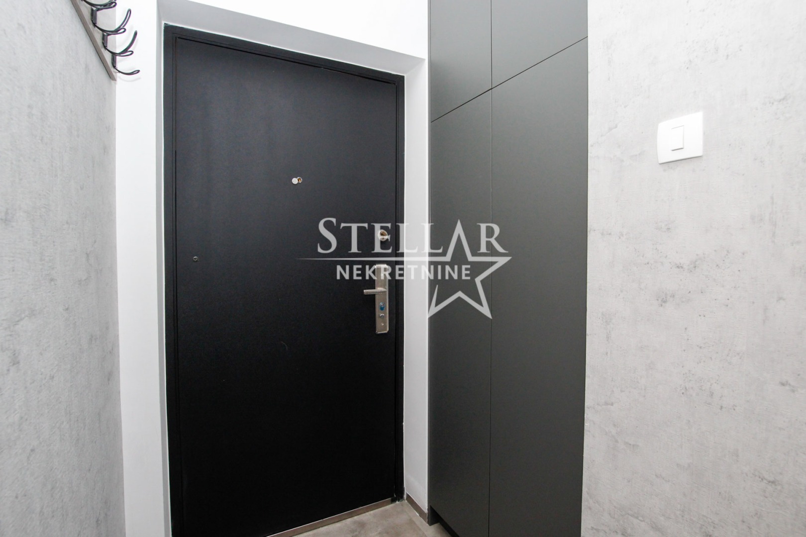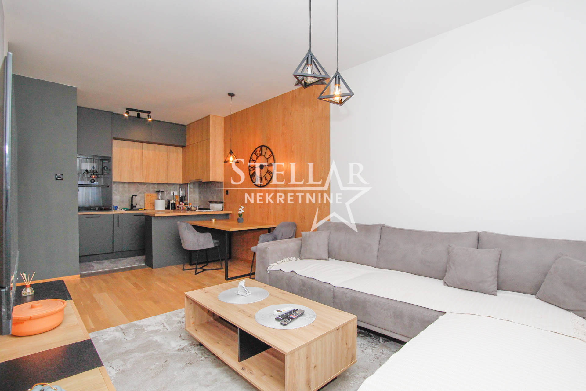 Stan je u potpunosti i veoma lijepo opremljen. Ima sve što je potrebno za svakodnevnicu. Na ulazi je manji hodnik sa ugradnim plakarom, dnevni boravak je u jedinstvu sa kuhinom i trpezarijom, a odvojena prostorija je spavaća soba sa američkim plakarom. Balkonu se može pristupiti iz sobe i dnevnog boravka.